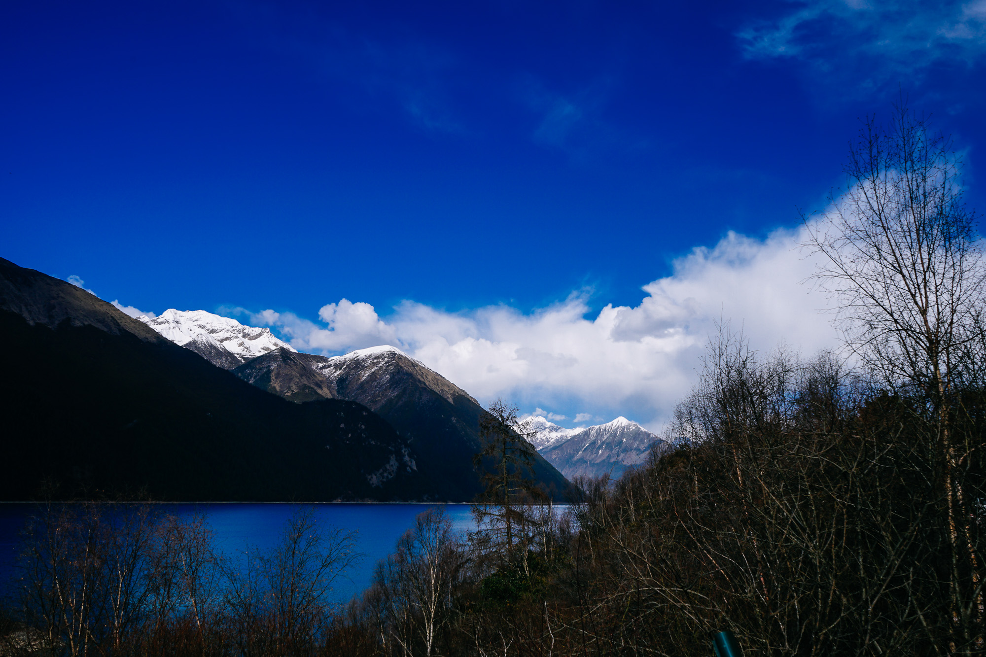 然乌湖的静 和蓝是远近闻名的,湖中极少看到枯枝杂物,湖周景色各不相同。