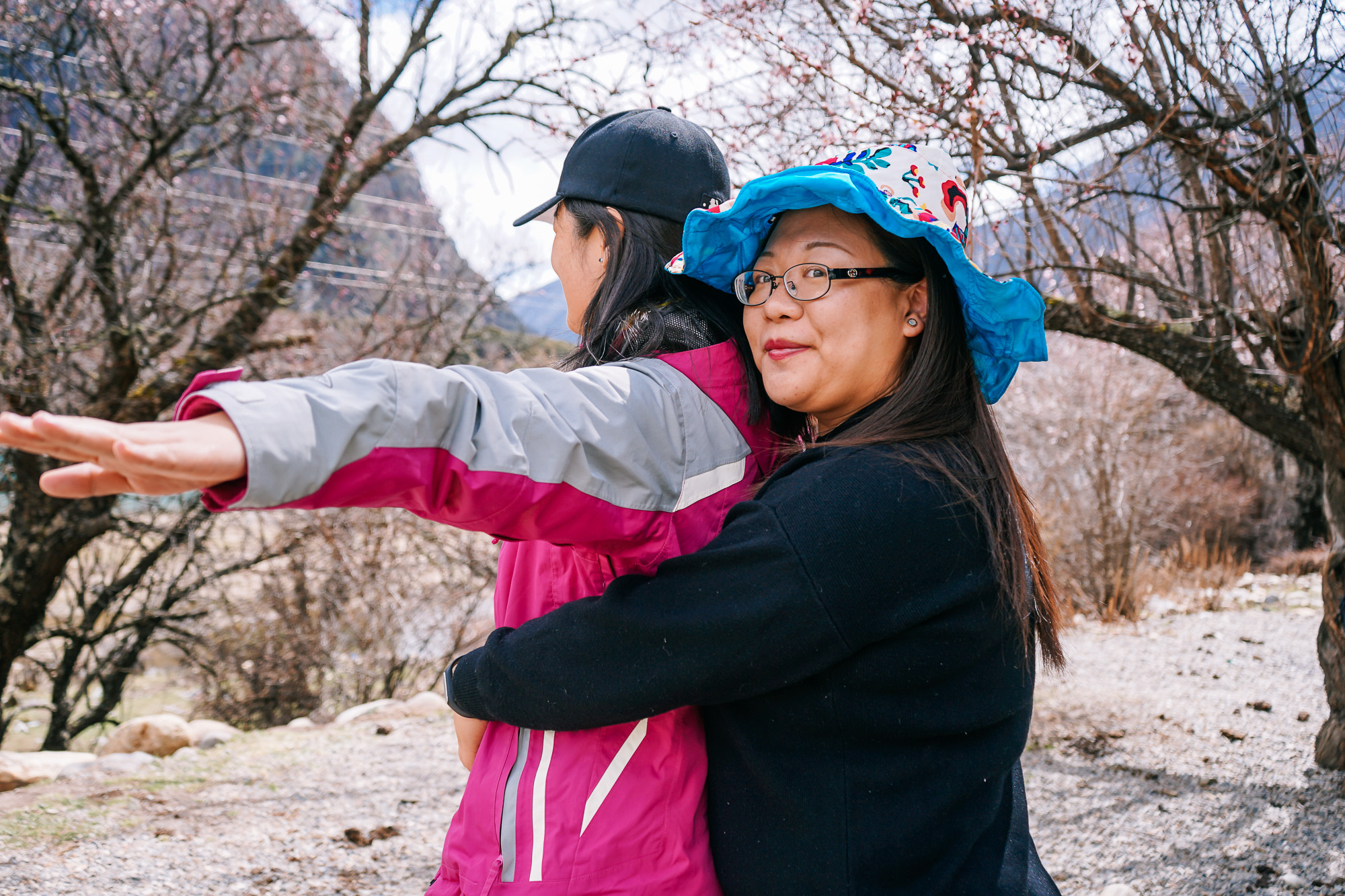四周都是盛开的野桃花,褪去了初放时嫩嫩的少女粉,我们去的时候颜色已经稍微有点淡了……