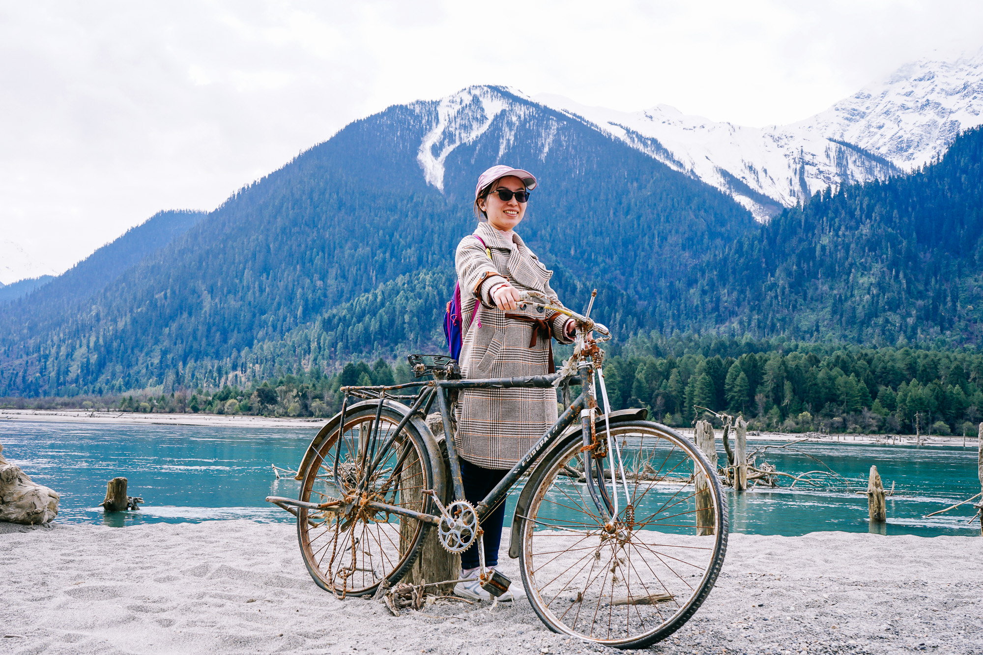 回程的路上,我们在河边捡到了一辆二八杠自行车……