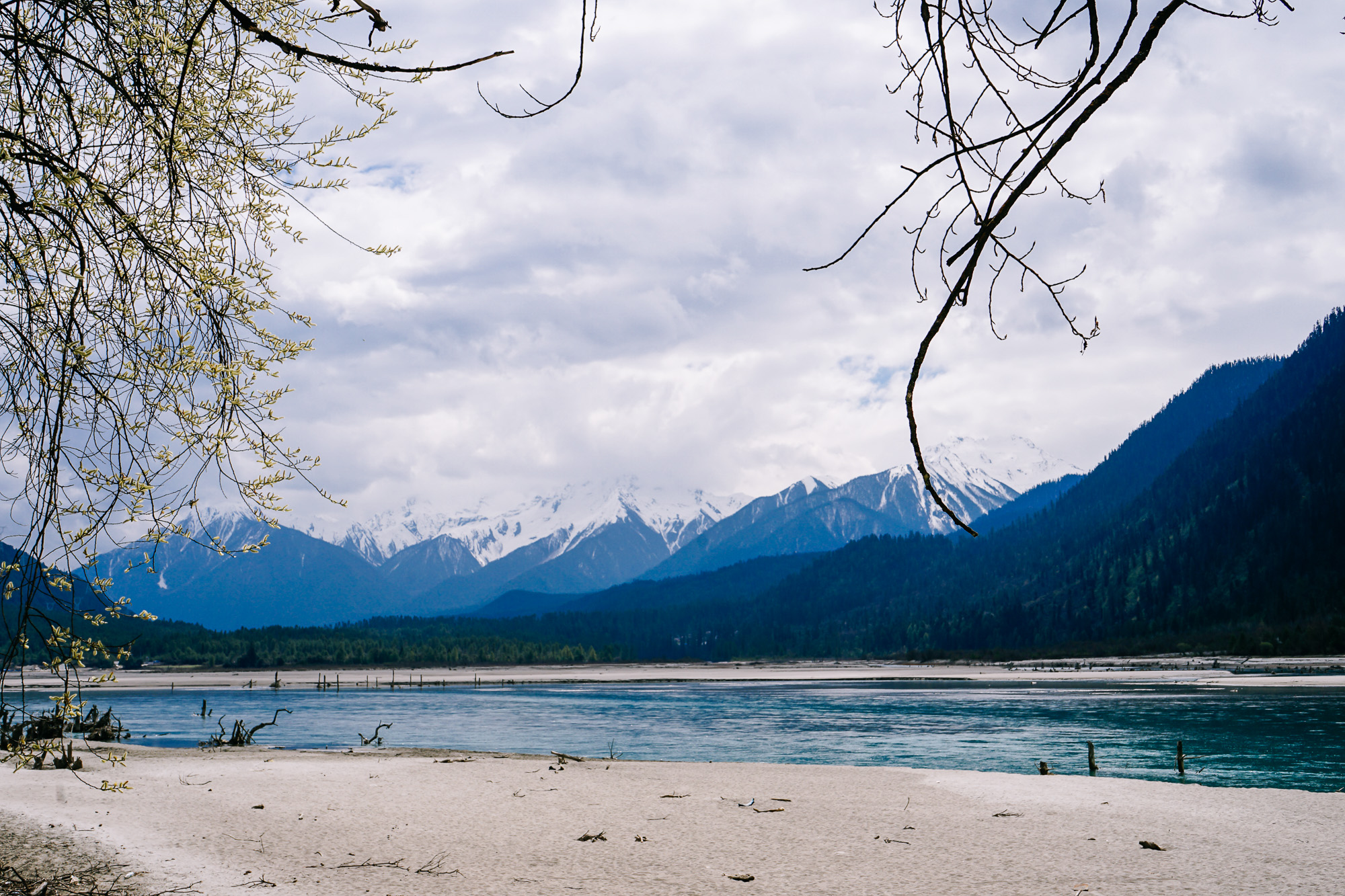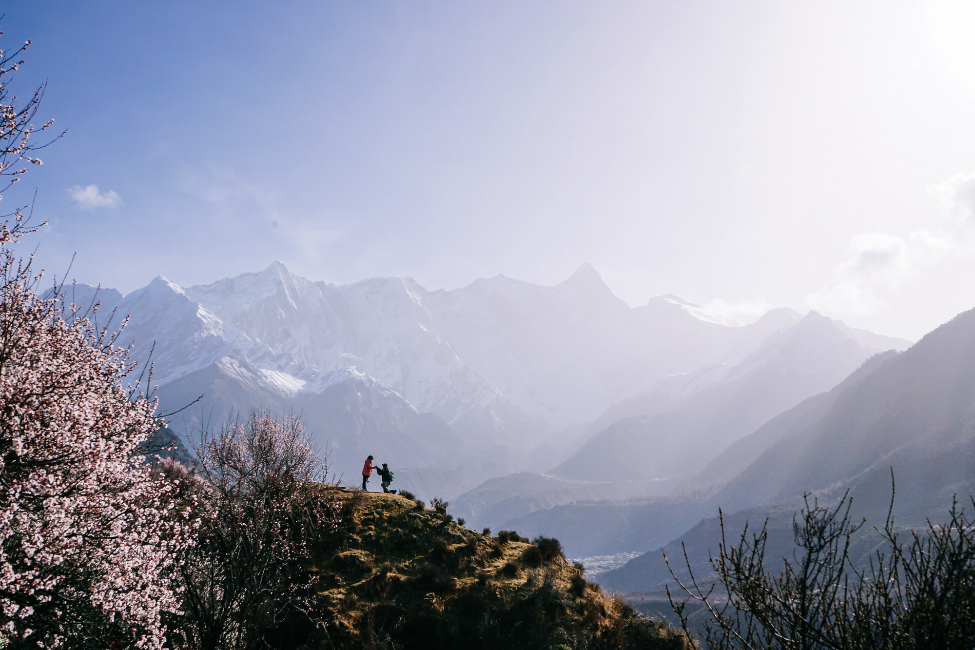 崖壁有点陡峭,但是有足够高的落差可以拍到整个河谷,以及远处的南迦巴瓦。