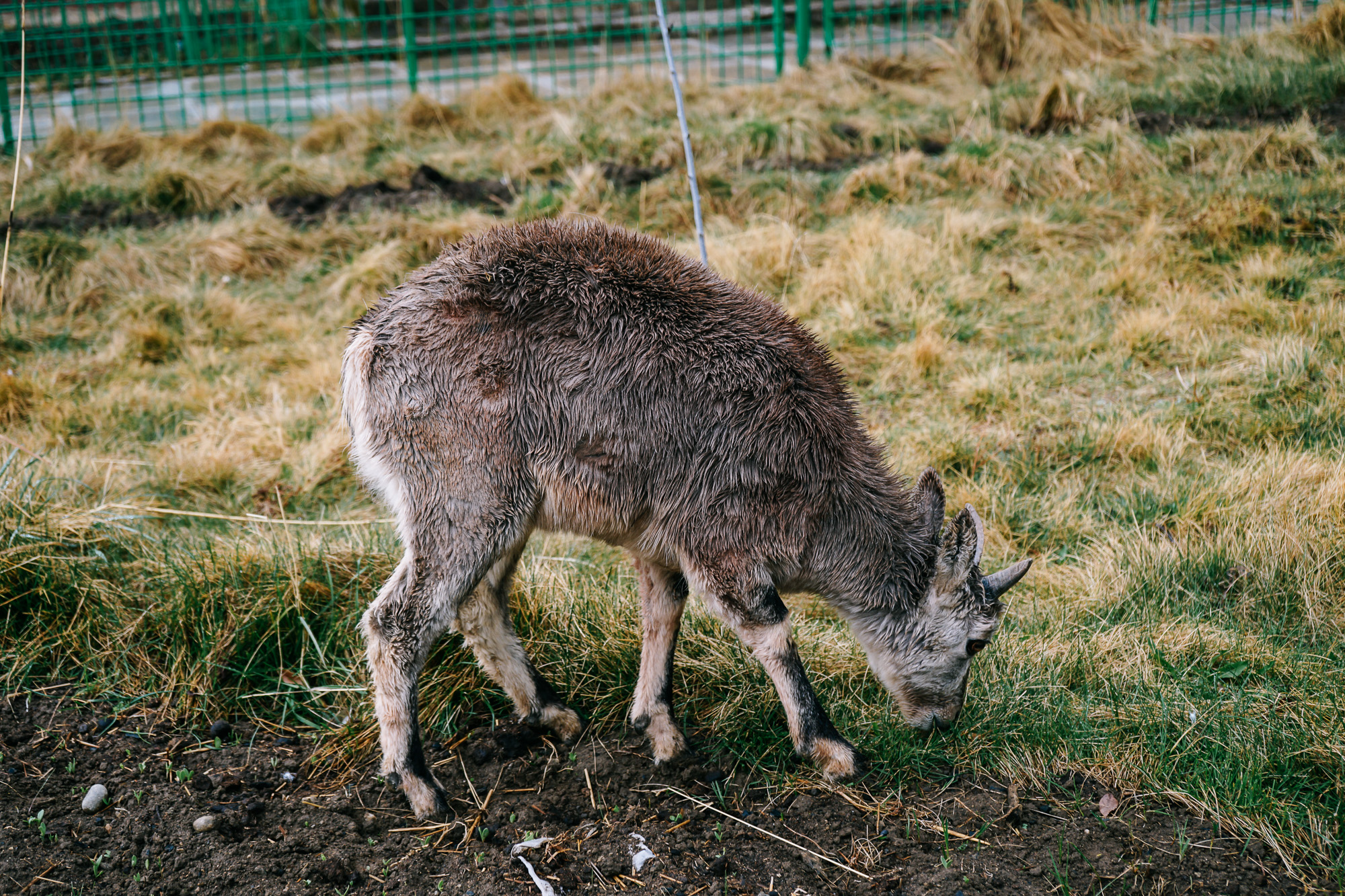 寺庙喇嘛从小"收养"的两只灰色盘羊,脖颈戴着小铃铛,在寺院草坝上觅食。