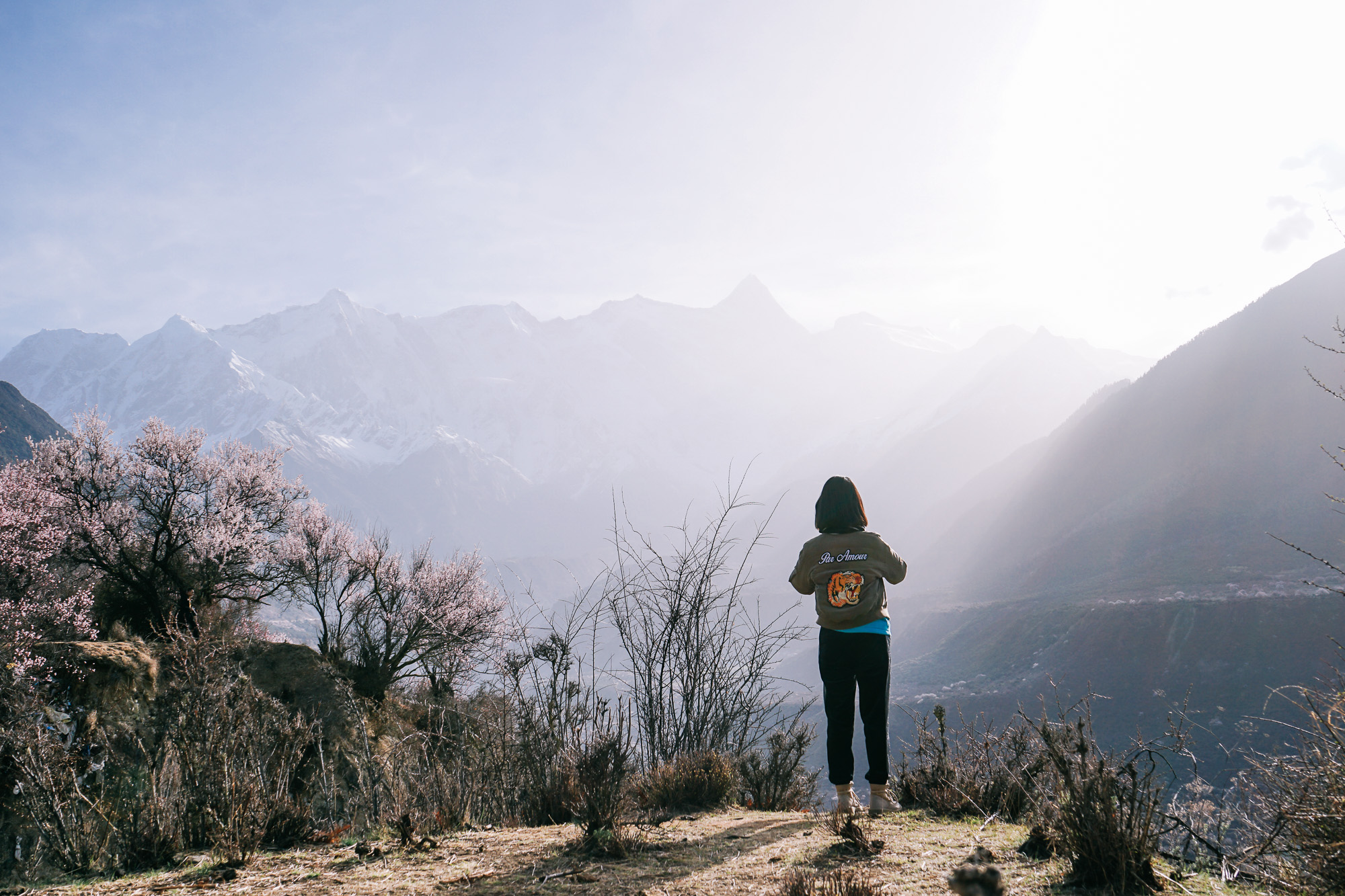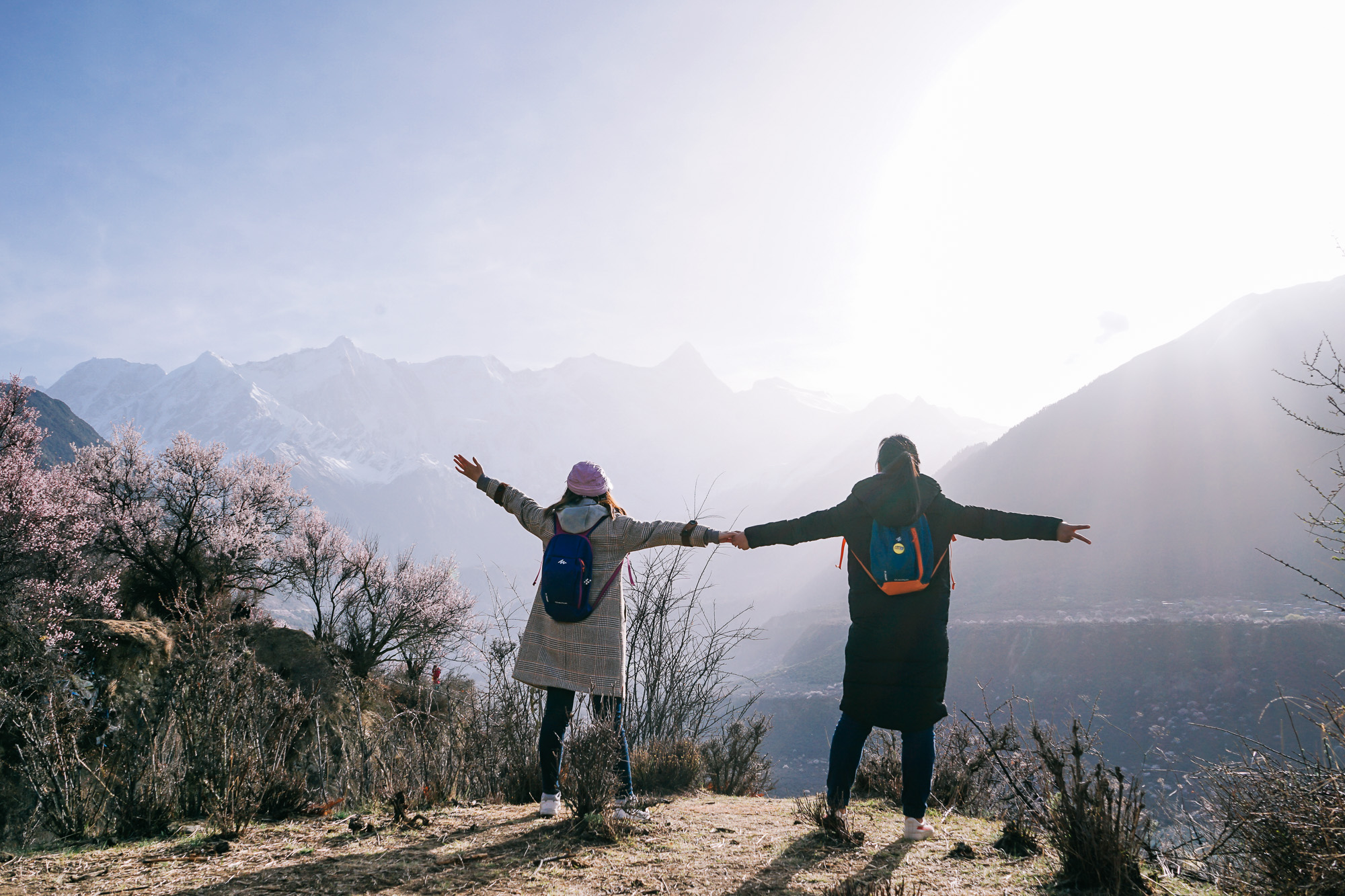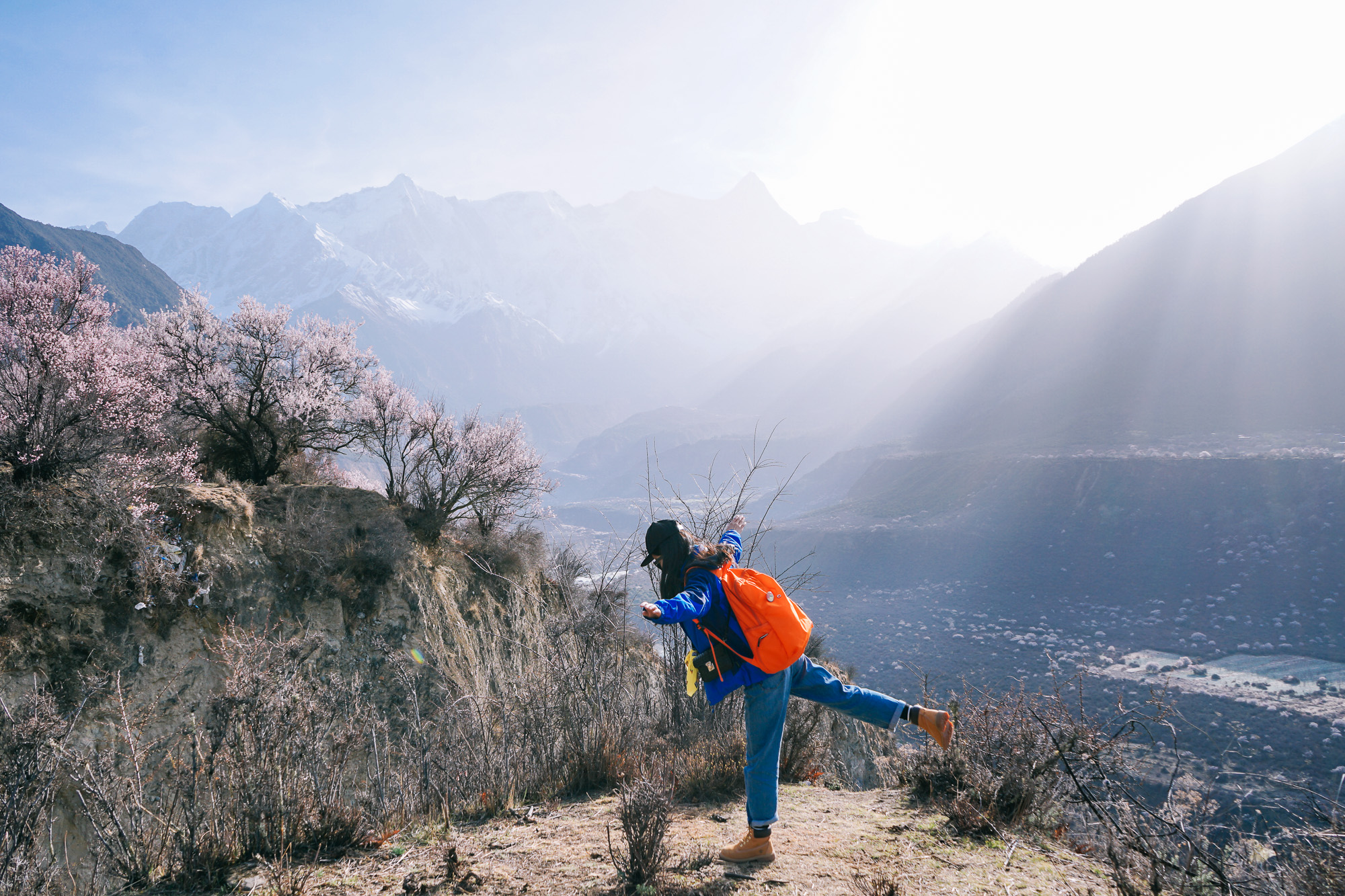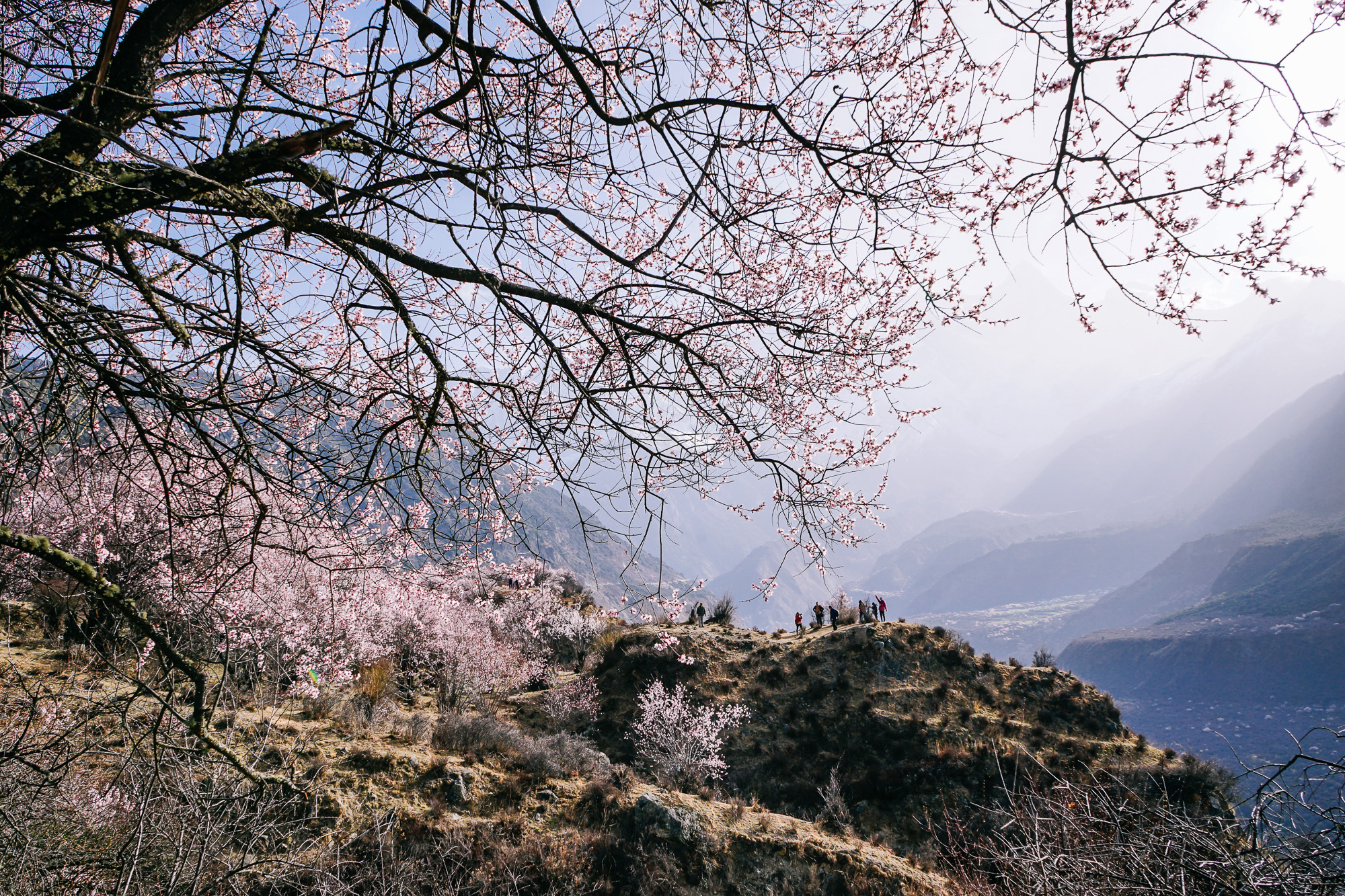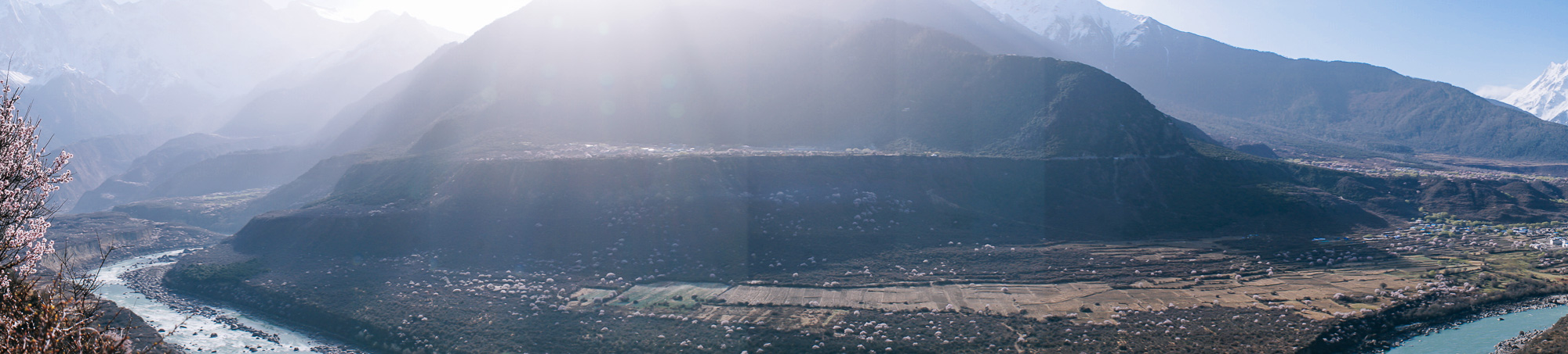 前一天在大峡谷的时候,看见峡谷对面有一个开满了桃花的村落,就是:索松村!