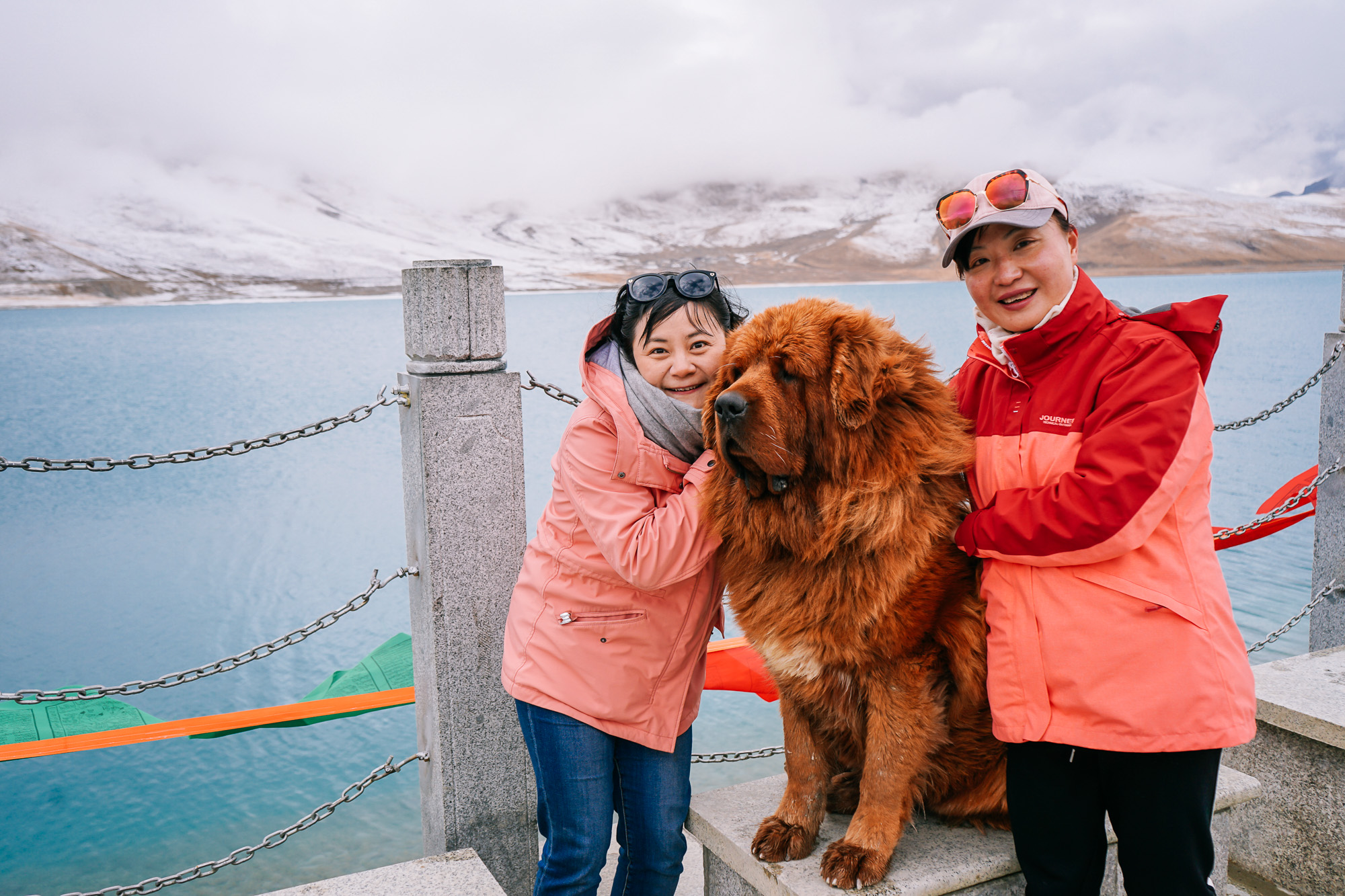 湖边观景台,有当地人带着自家的藏獒来给游人拍照。