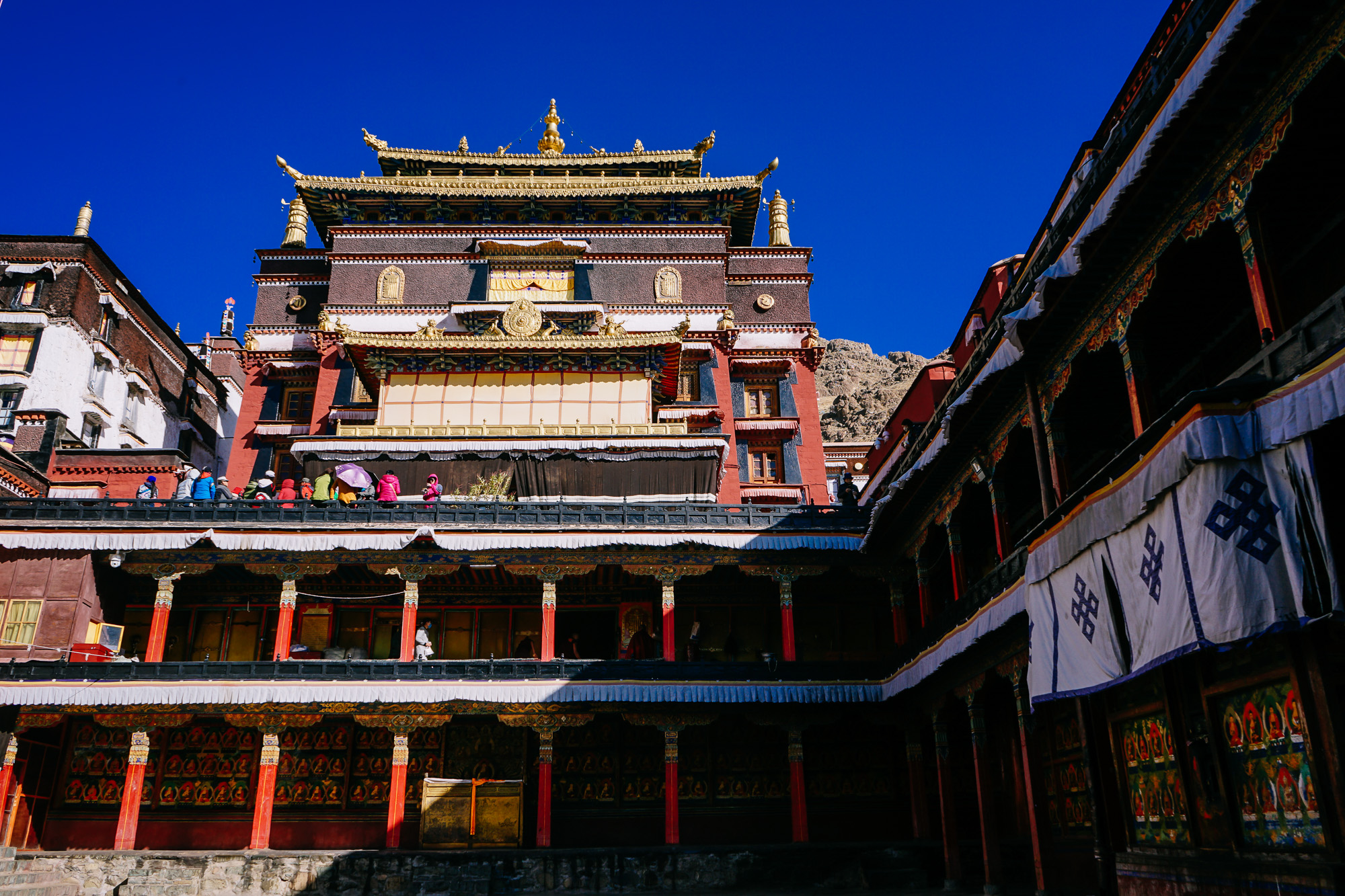 扎什伦布寺给人的感觉不像是寺庙,更像是一处巨大的建筑庄园,但是给人的感觉却不是冰冷和严肃,处处透露出的都是祥和和温暖。