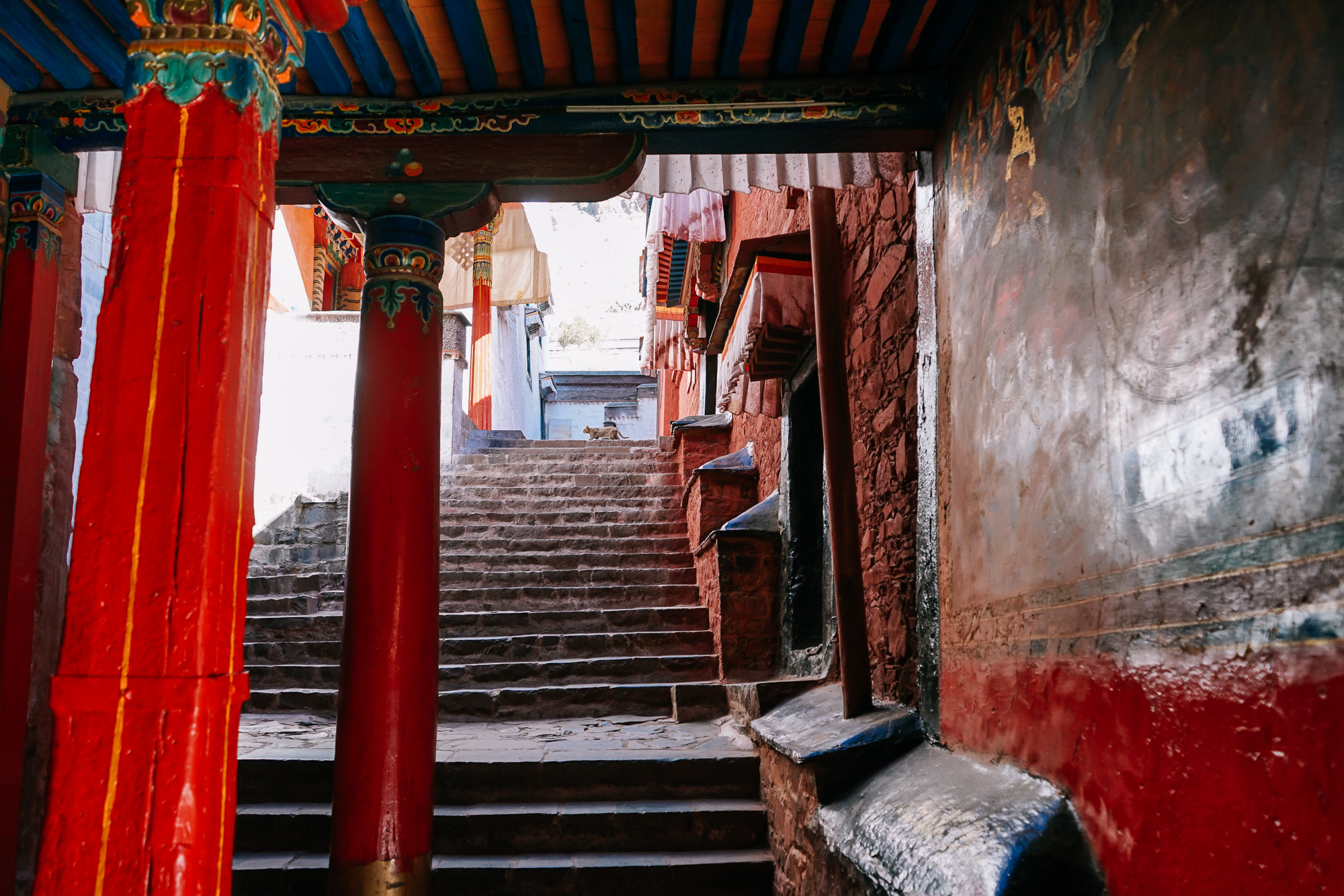 寺院周围有许多流浪的狗狗,他们很多眼睛都有被感染的样子,不知道是不是高原阳光太刺眼的缘故……