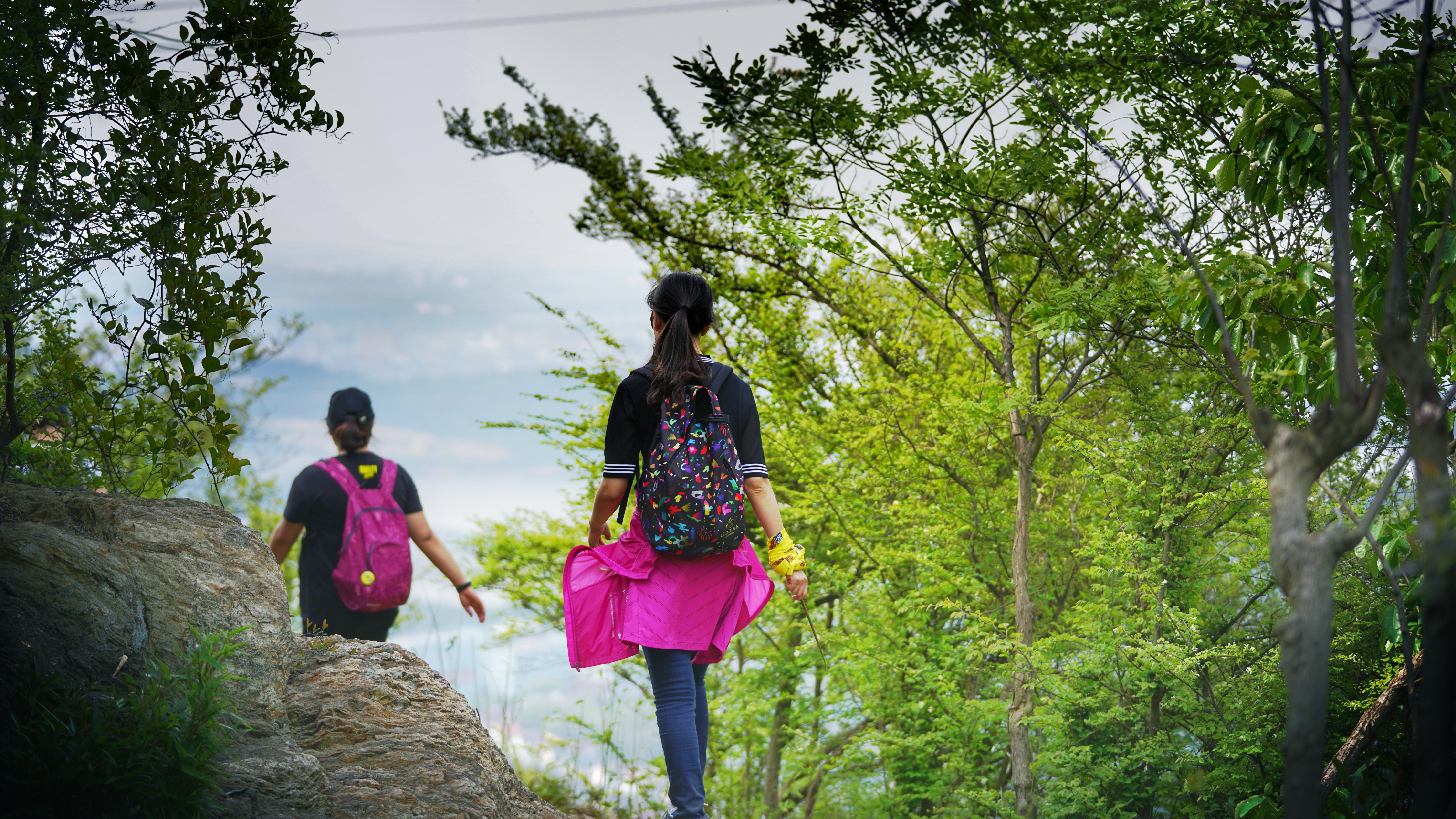 3.出来旅行一方面是欣赏风景另一方面是留下美好的照片,爬山本来就是意见消耗体力的事情,如果队伍里有一个认真为你拍照的人是不是很幸福?哈哈,我们队伍中就有一个。每爬上一个山坡不是急着休息而是拿出单反对下面的人说:摆好pose ,这个表情很好,再来一个.........