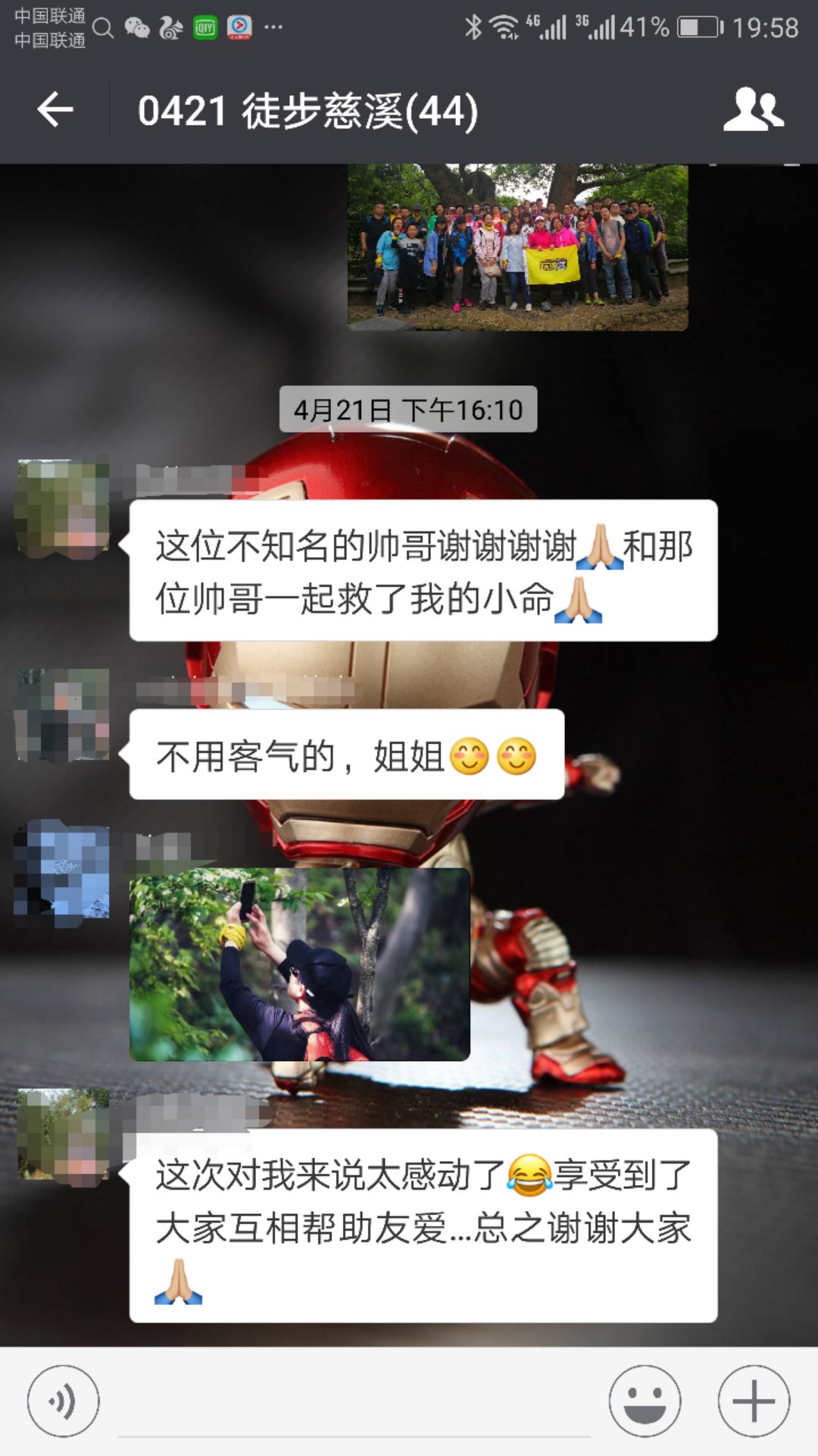 1.也许是徒步的辛苦或者是到到目的地的喜悦放松,一不注意一位小姐姐被脚下的朽木滑到了,两位男士立马上前询问状况施以援手,事后小姐姐不停的告诉我:特别由衷的感谢他们。