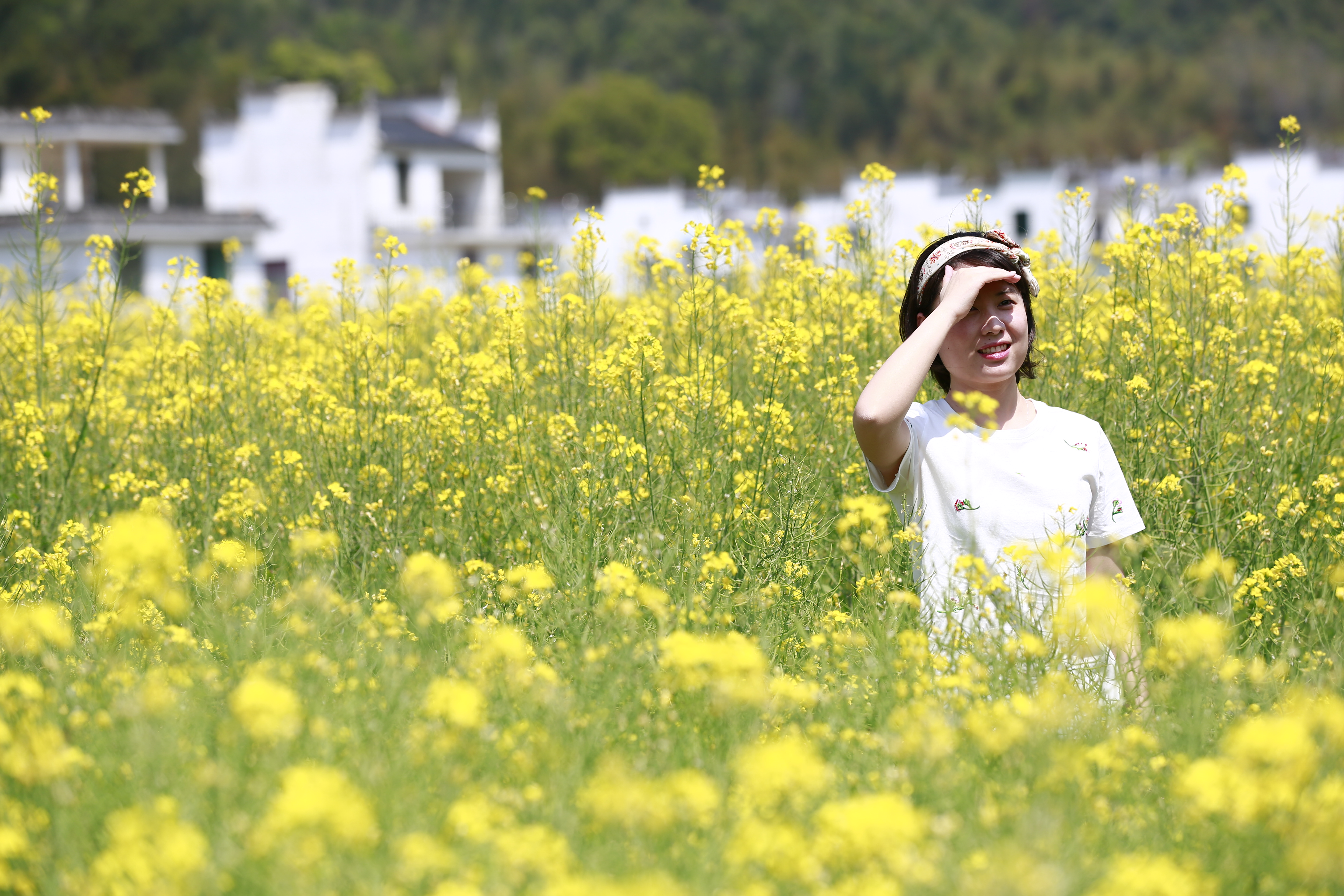 那里漫山遍野的油菜花呈梯田状,从山顶铺散到山谷下。站在山顶望去,脚下大片的山谷内,油菜花层层叠叠,一望无际,中间围拢着几个小小的村落,黑瓦白墙的徽派民居夹杂在一片金黄之间,在婺源再没有比这更壮观而令人惊喜的了。