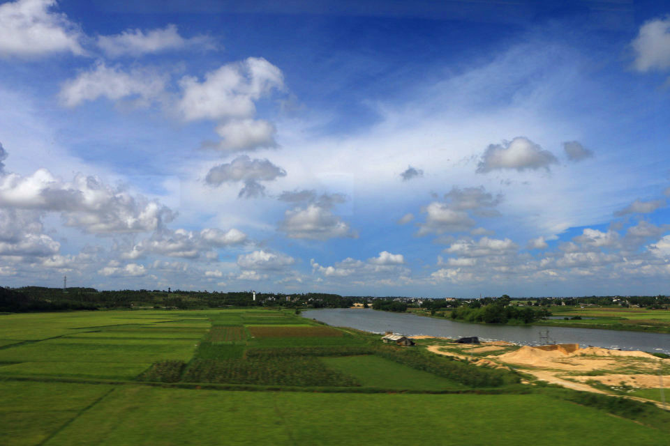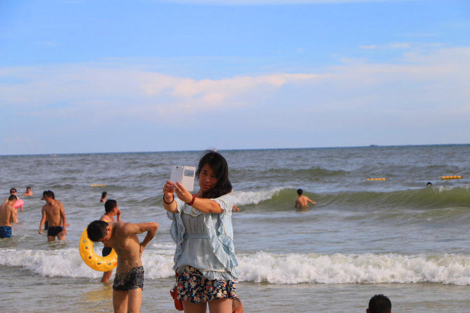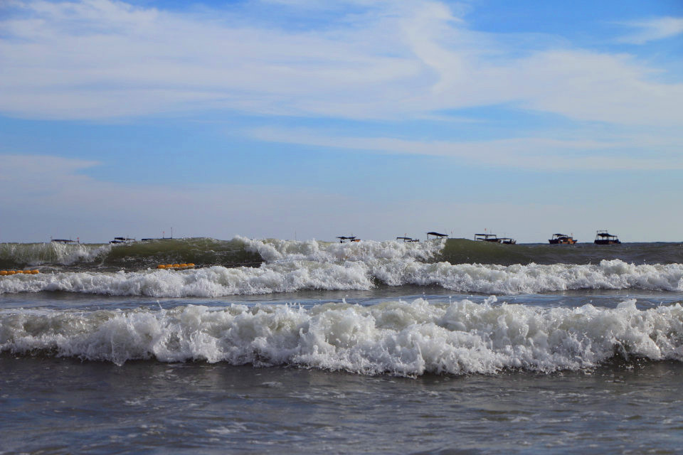 在北海这儿,海水像一个忙不停的机器,不停地来回跑来跑去,向前进又向后退,又像一个调皮的娃娃。所幸天气并没有如题,很给面子的放晴了。高铁上就能感受到蓝天白云的青睐。