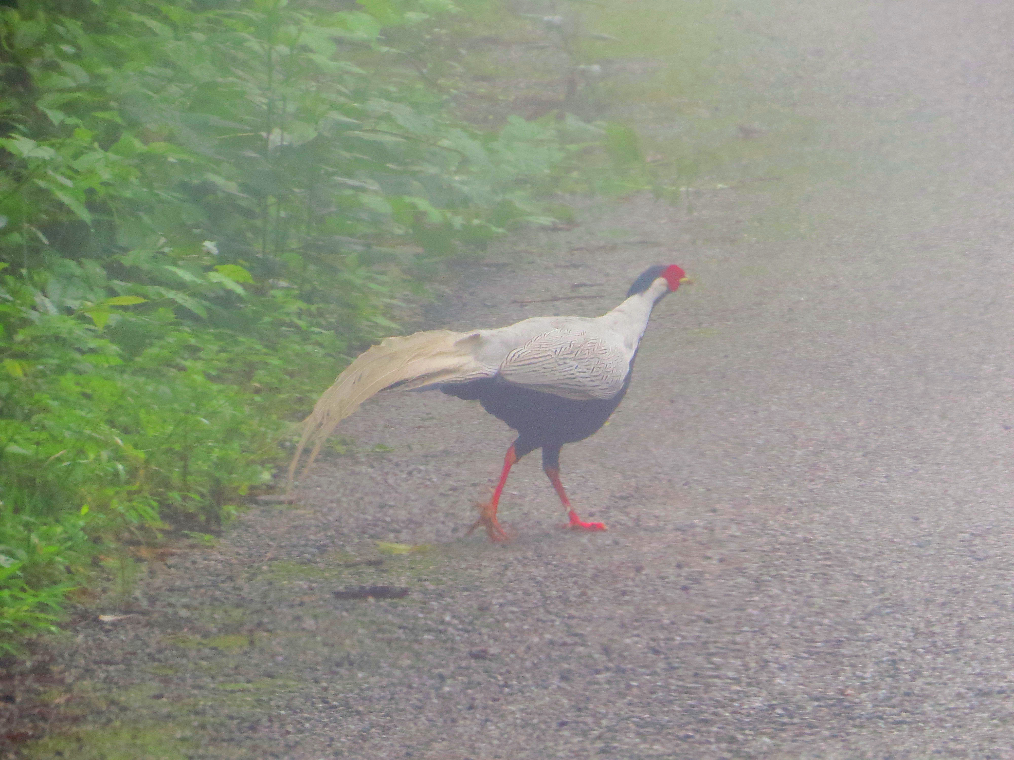 吃饱饭,准备上山,猫儿山这一天盘山路,最刺激的不是急弯,也不是时而跟来的云雾,是路上随时会偶遇的各种雉类。刚上山两个弯,就在路口等着我们的灰胸竹鸡,你可能没见过它但是一定听到过它的叫声。