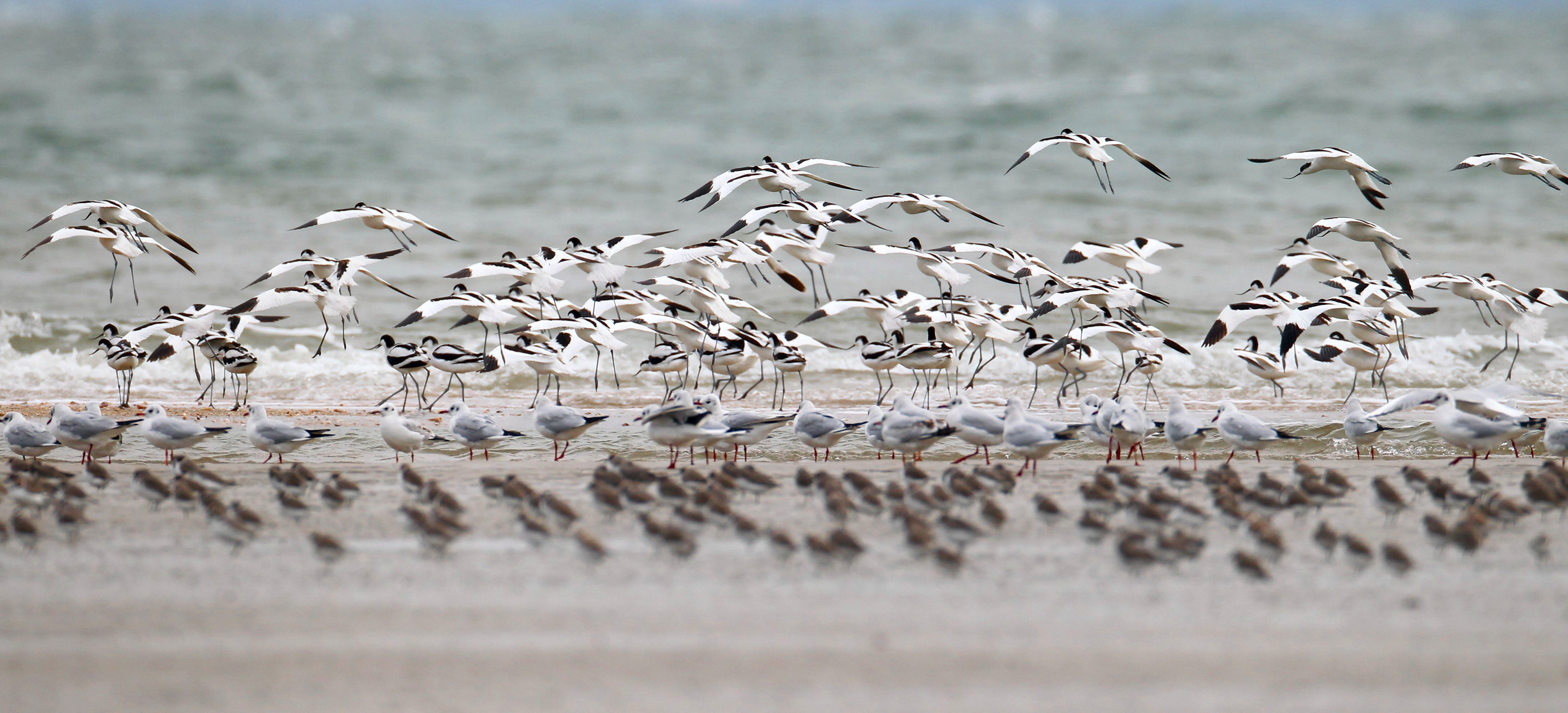 潮起潮落的规律,有些玩家比我们还经验老道,知道啥时候可以到哪去等海水留下的食物。感谢出镜:红嘴鸥,黑嘴鸥,反嘴鹬,大滨鹬等一众水鸟大佬。