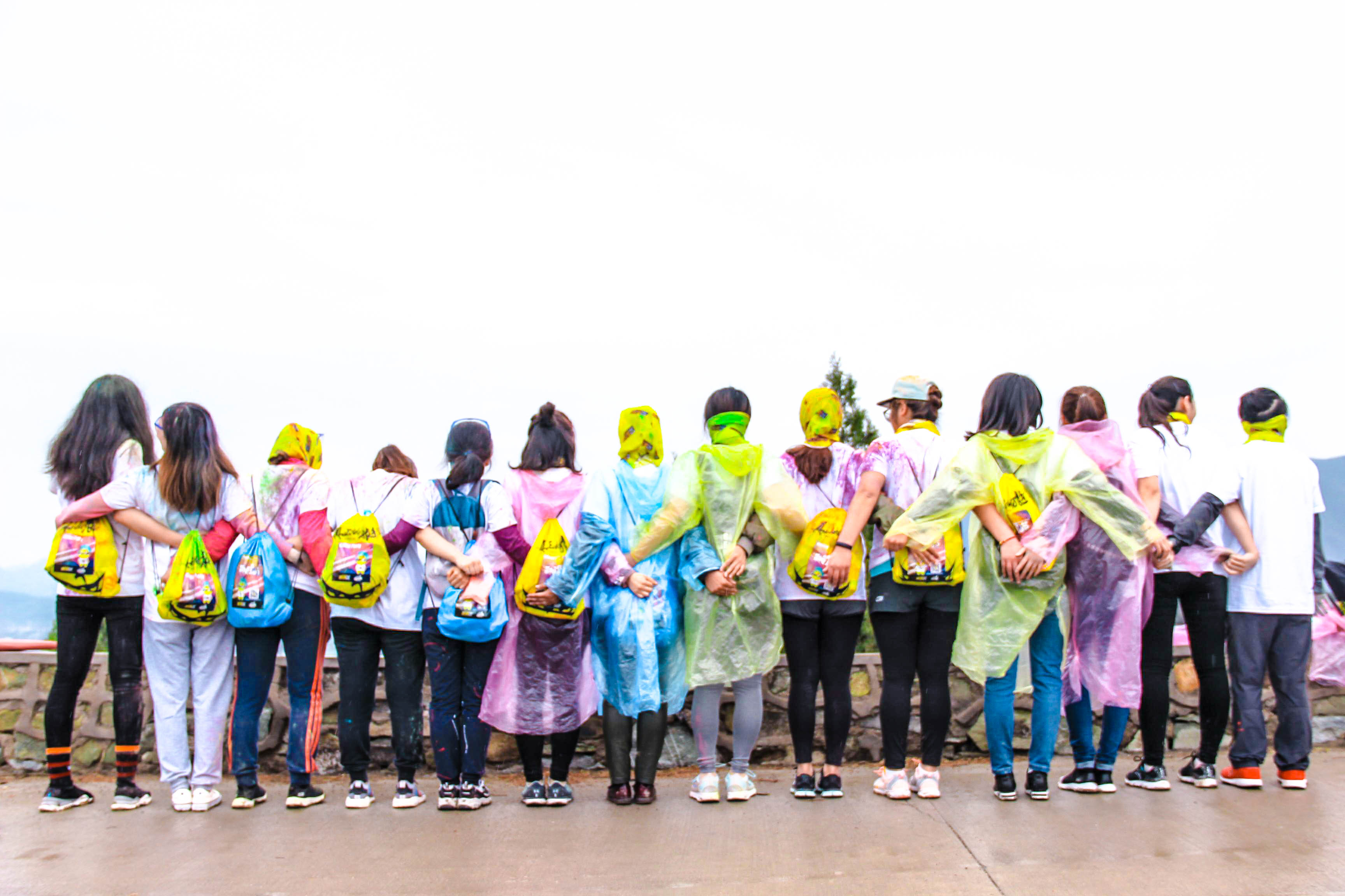 那天下了点小雨,你们穿着五颜六色的雨衣,像是一道亮丽的风景线