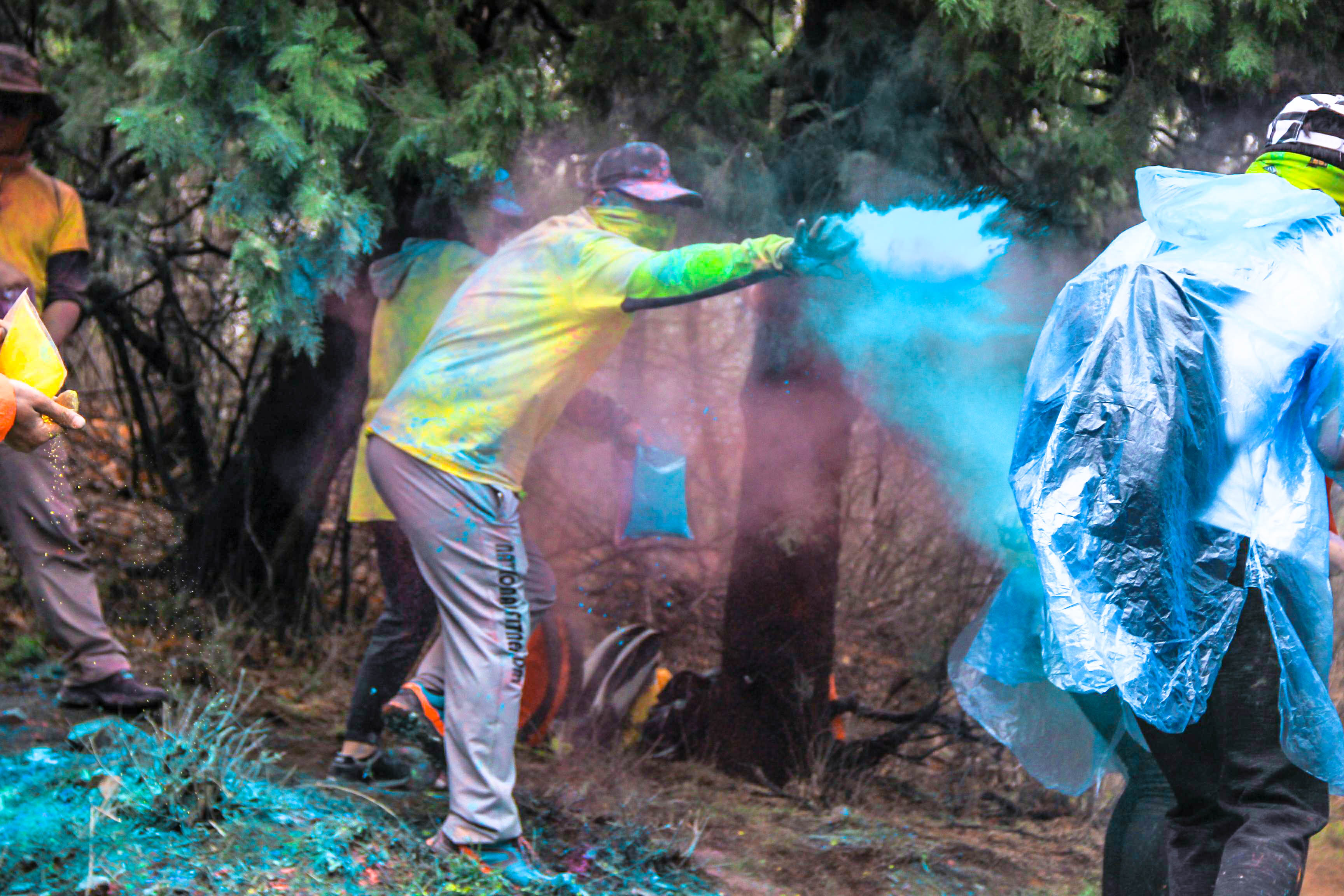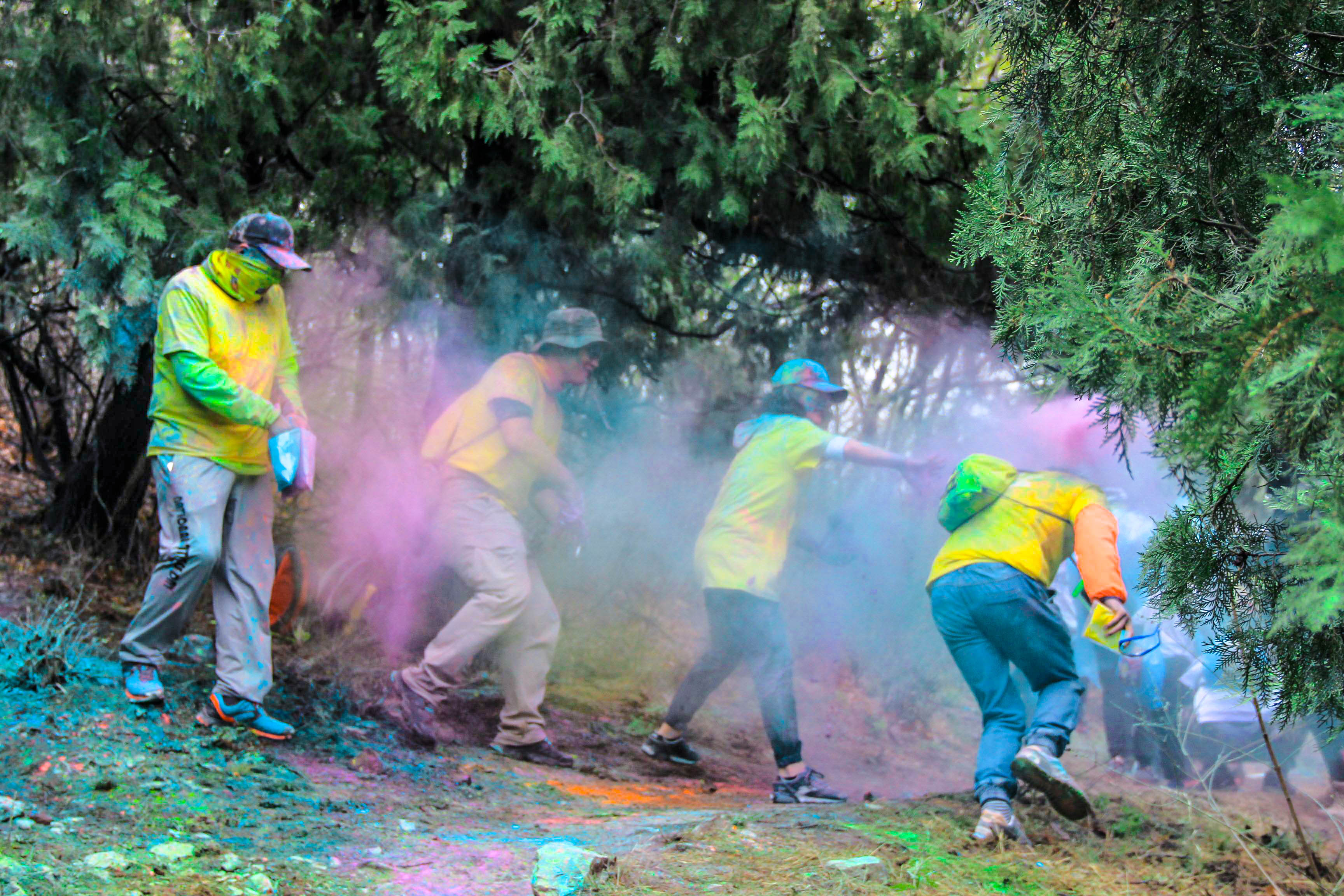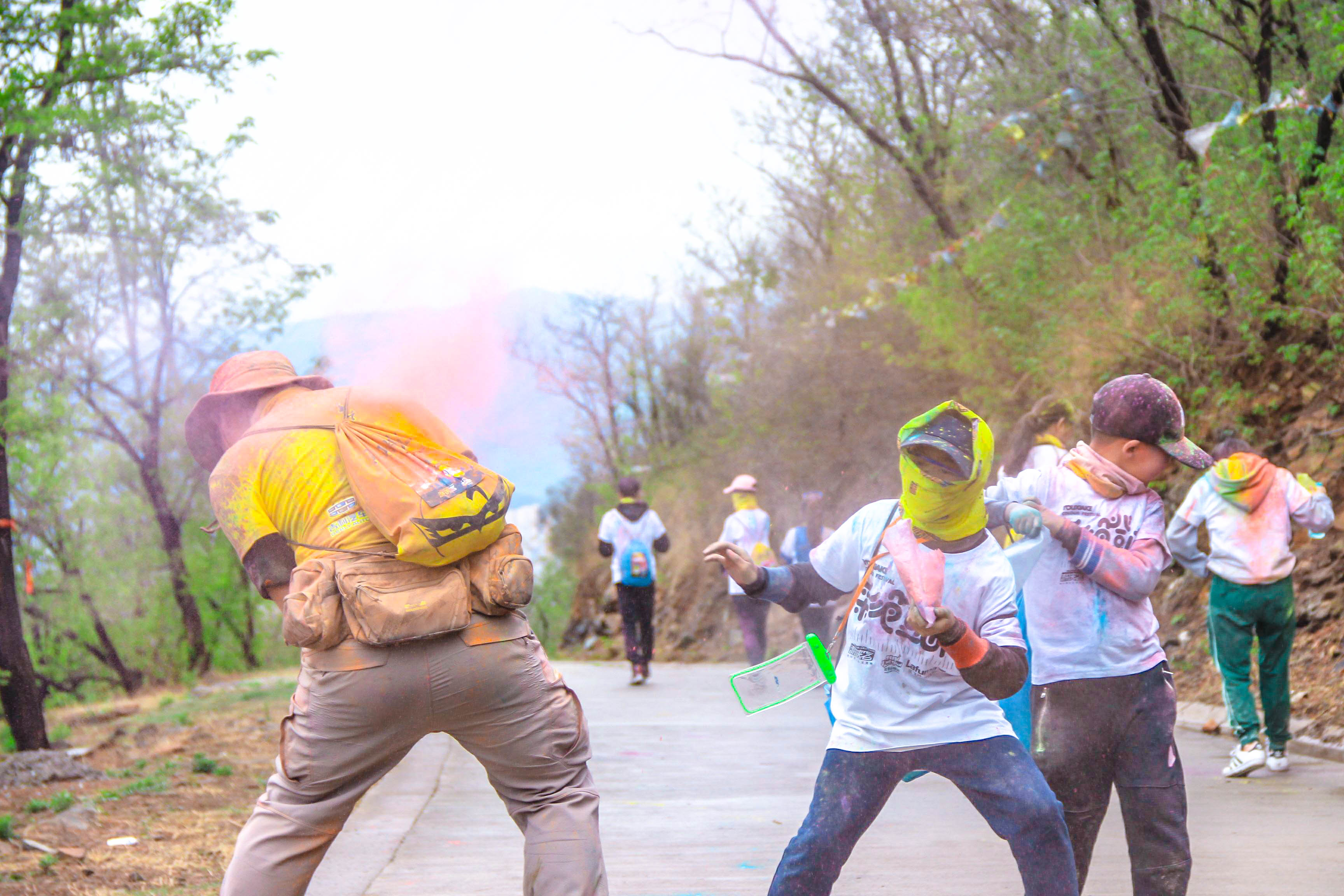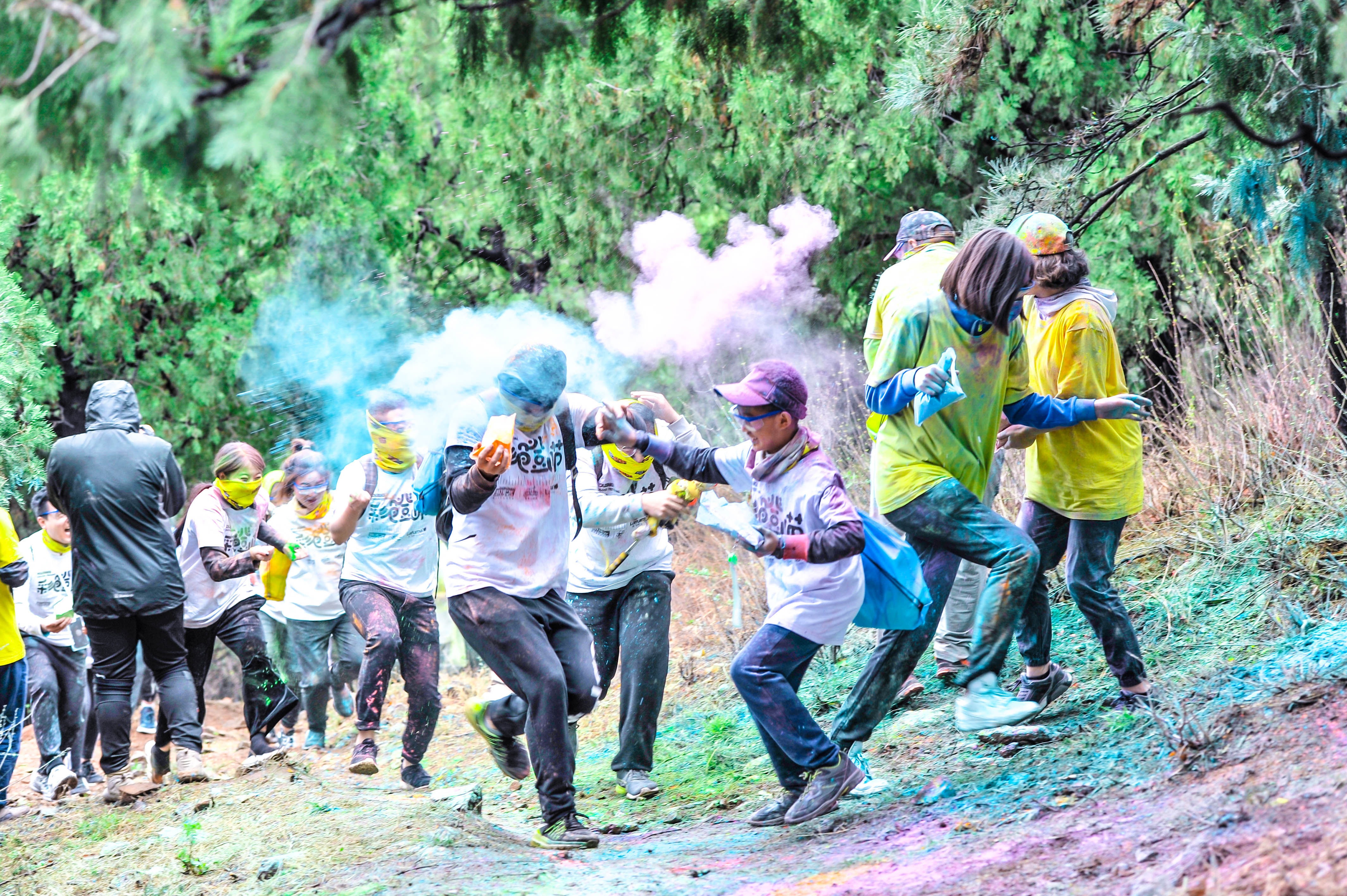 丛林遭遇战,估计是送给大家的另一个惊喜,工作人员隐藏在丛林小道中,进行隐蔽伏击,此路是我开,此树是我栽,要从此路过,让我撒彩粉吧,你们谁都逃不掉的