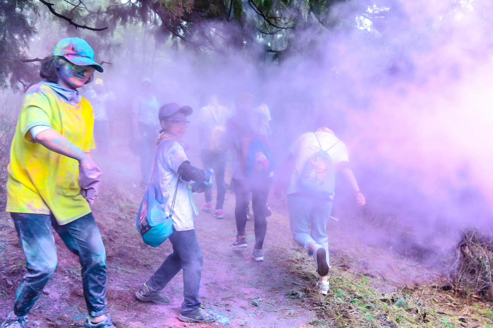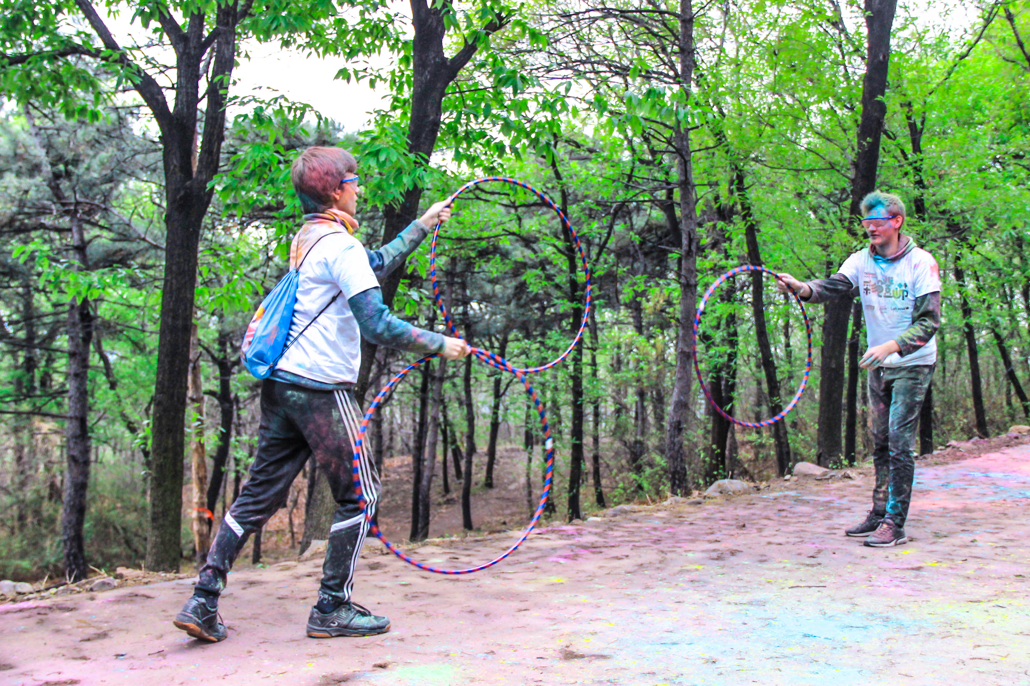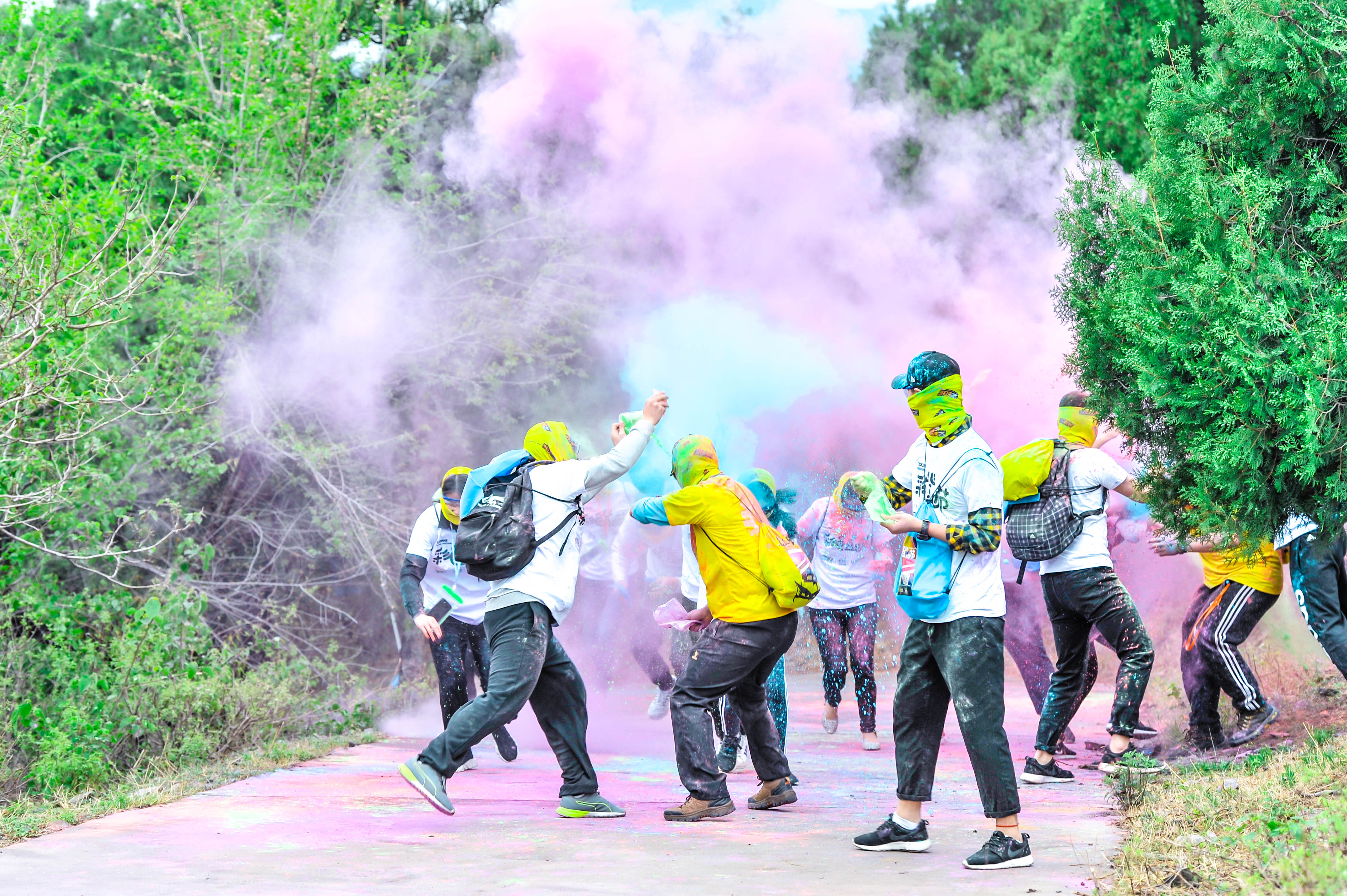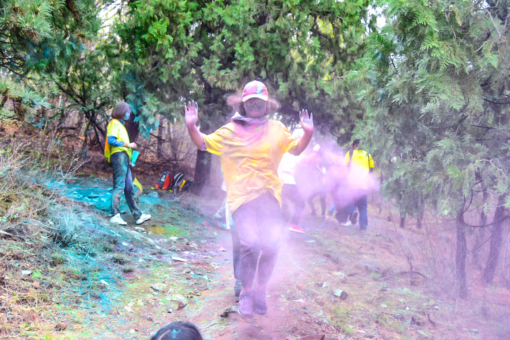 丛林遭遇战,估计是送给大家的另一个惊喜,工作人员隐藏在丛林小道中,进行隐蔽伏击,此路是我开,此树是我栽,要从此路过,让我撒彩粉吧,你们谁都逃不掉的