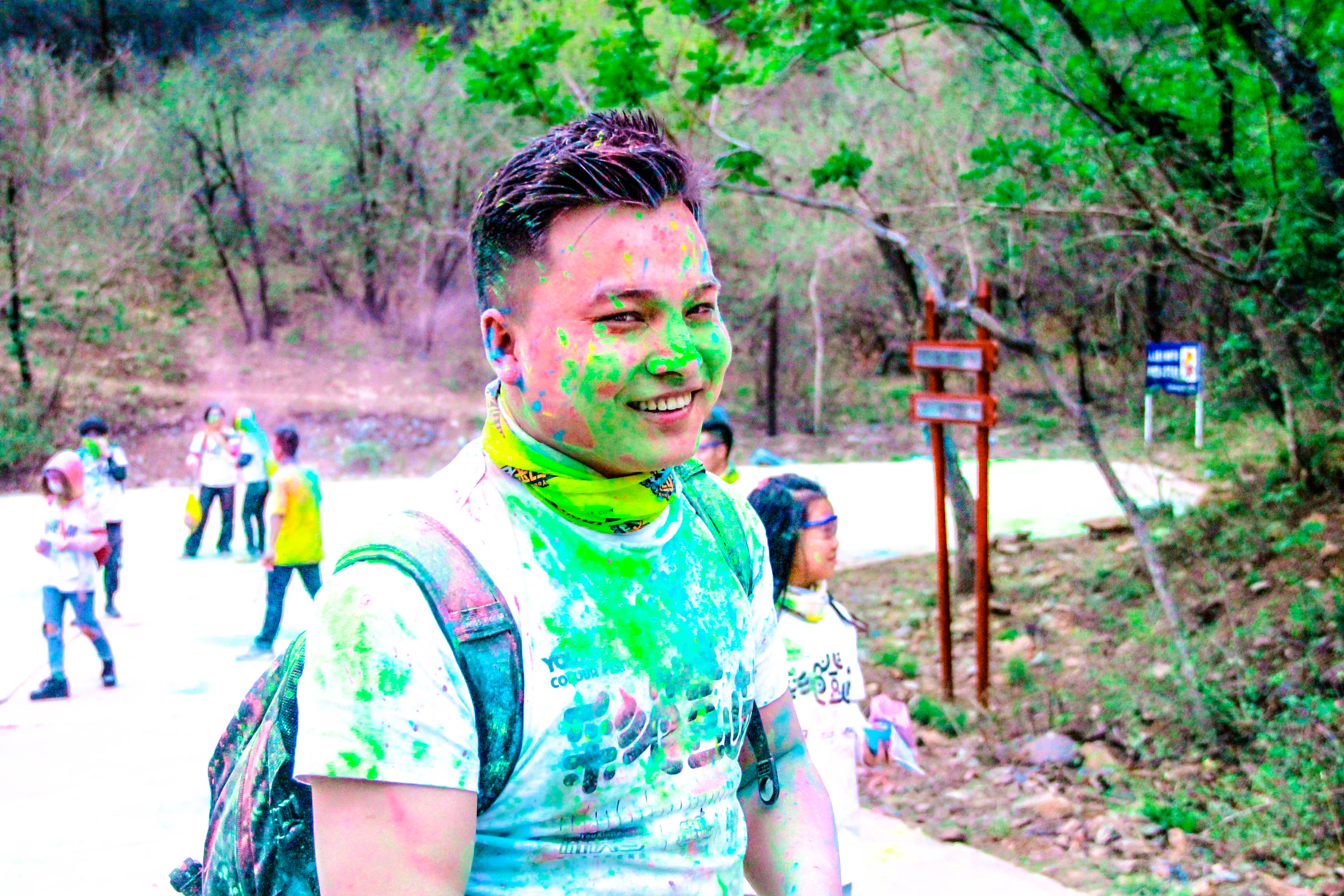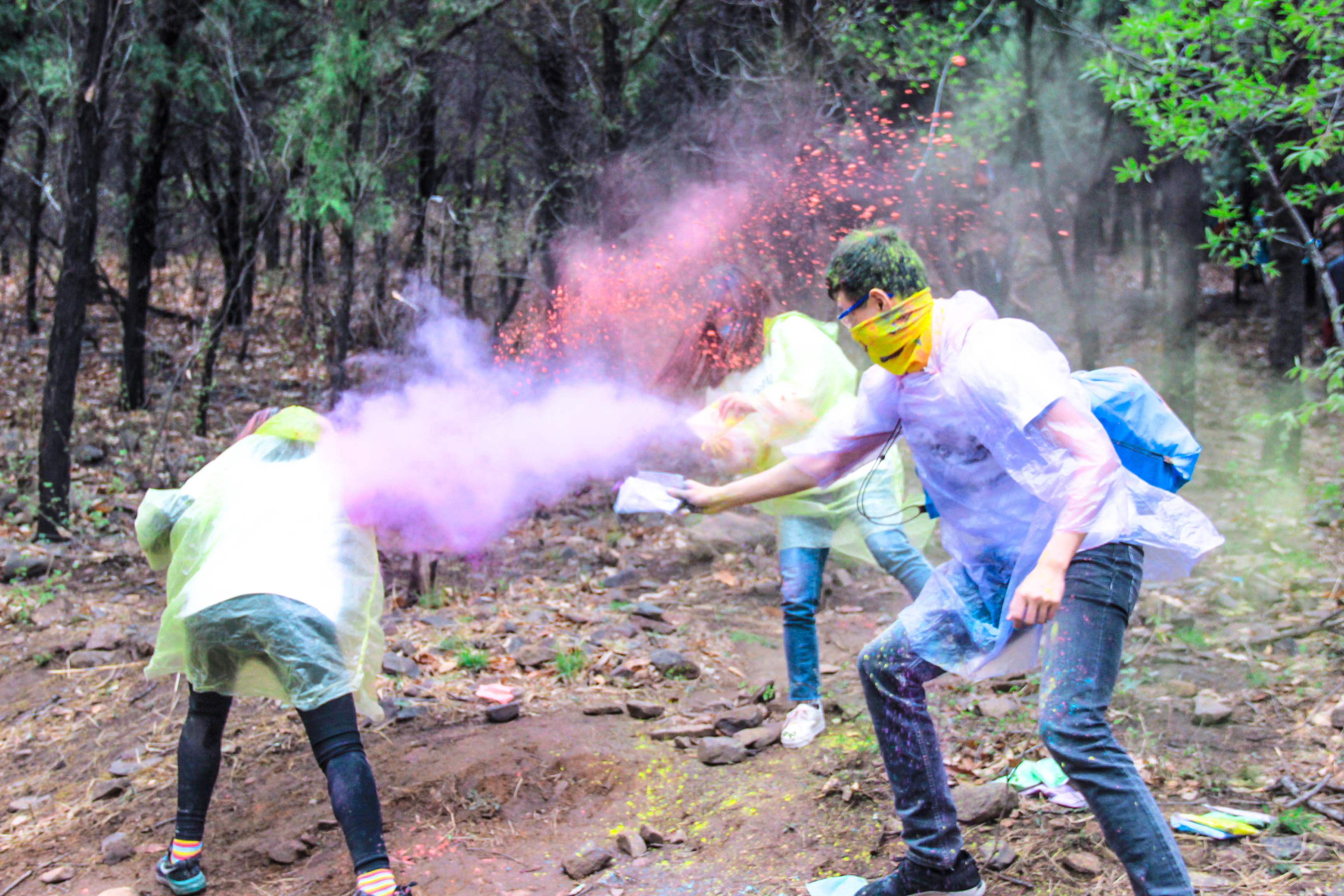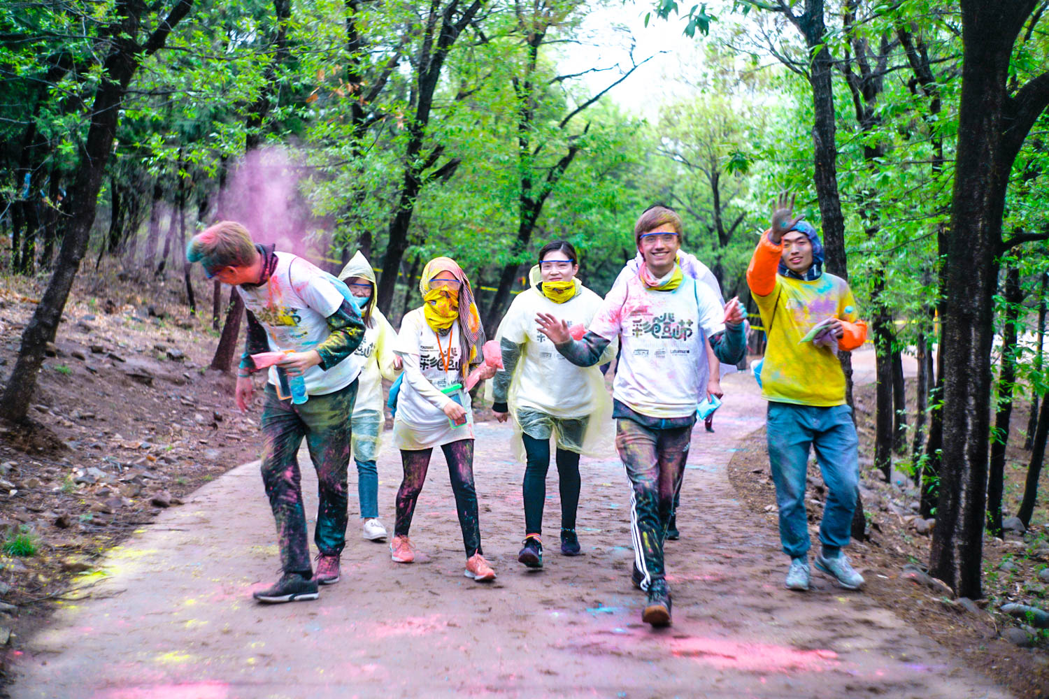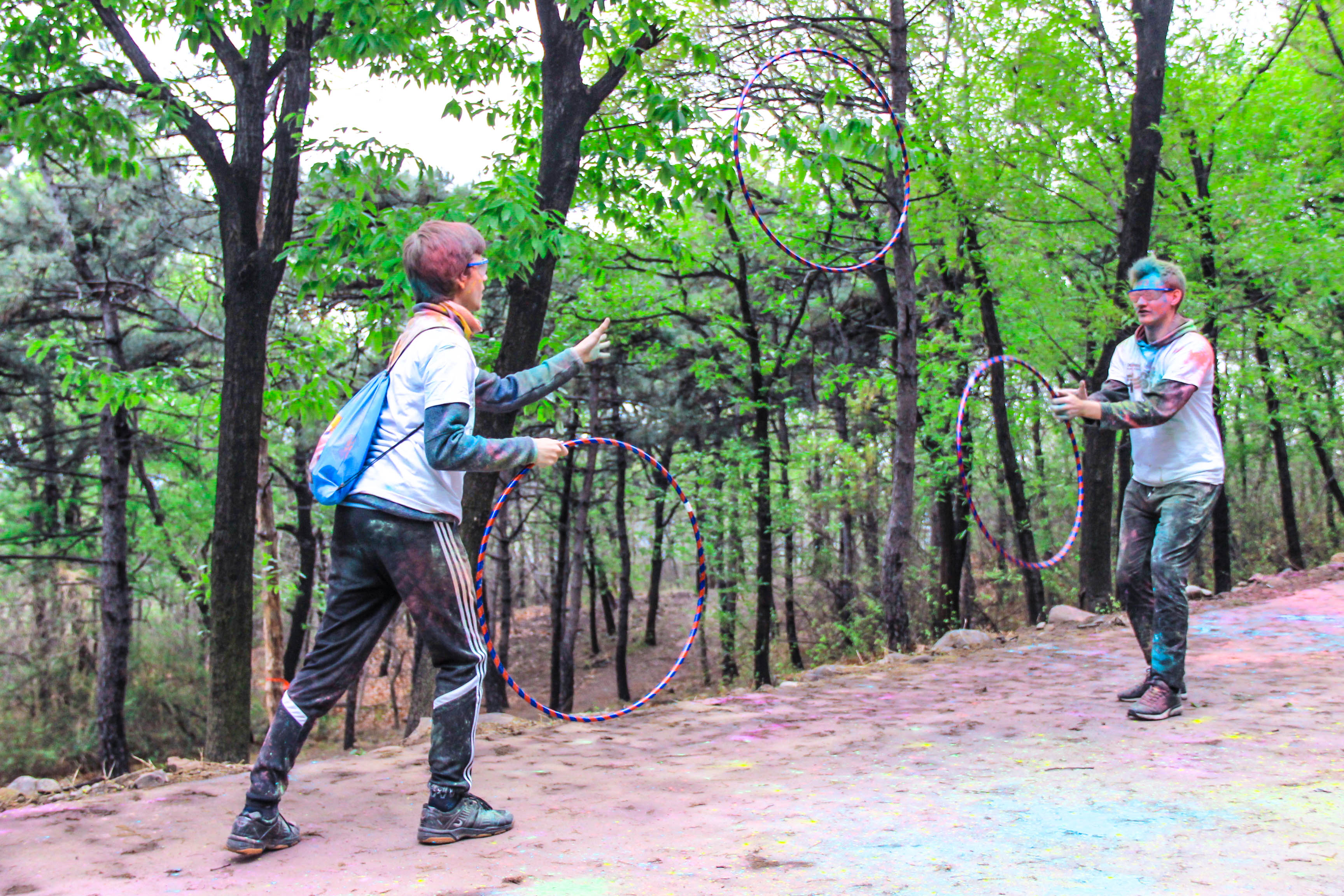 丛林遭遇战,估计是送给大家的另一个惊喜,工作人员隐藏在丛林小道中,进行隐蔽伏击,此路是我开,此树是我栽,要从此路过,让我撒彩粉吧,你们谁都逃不掉的