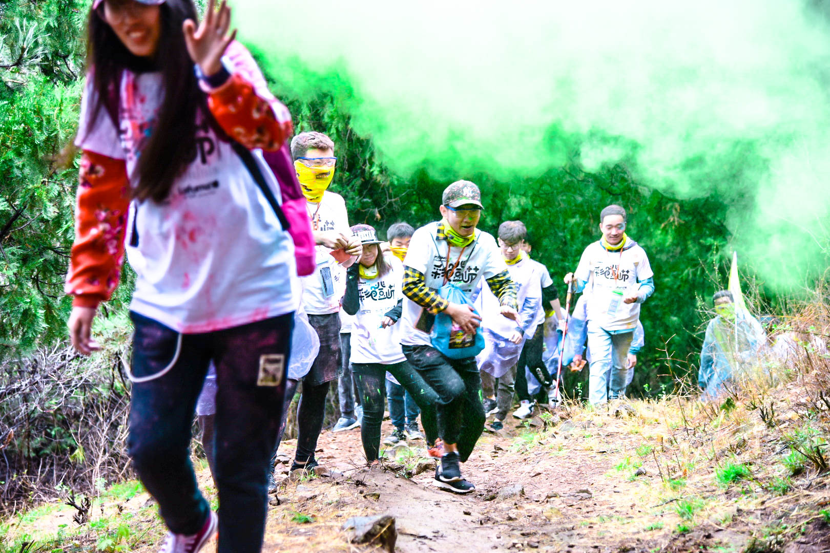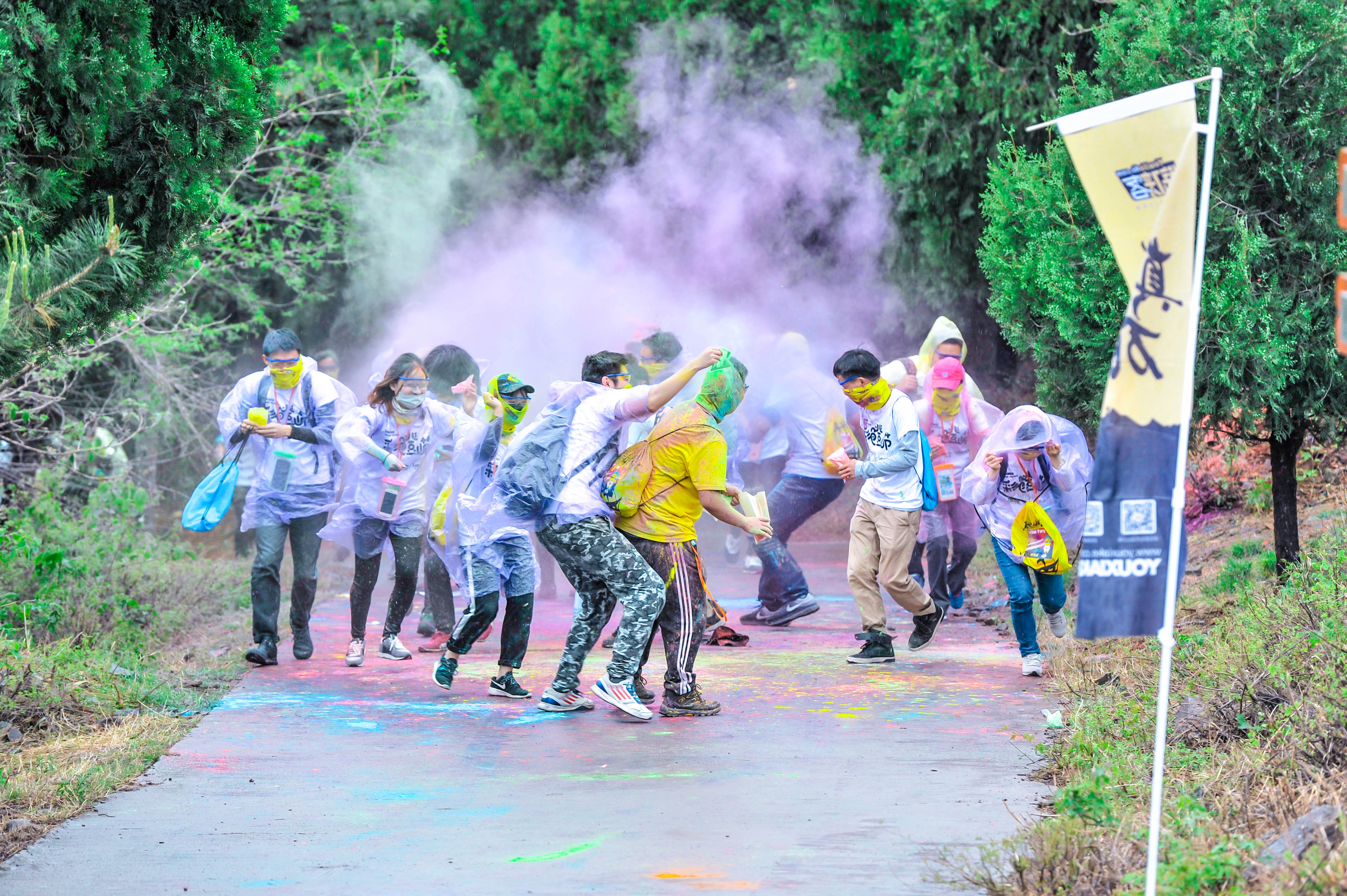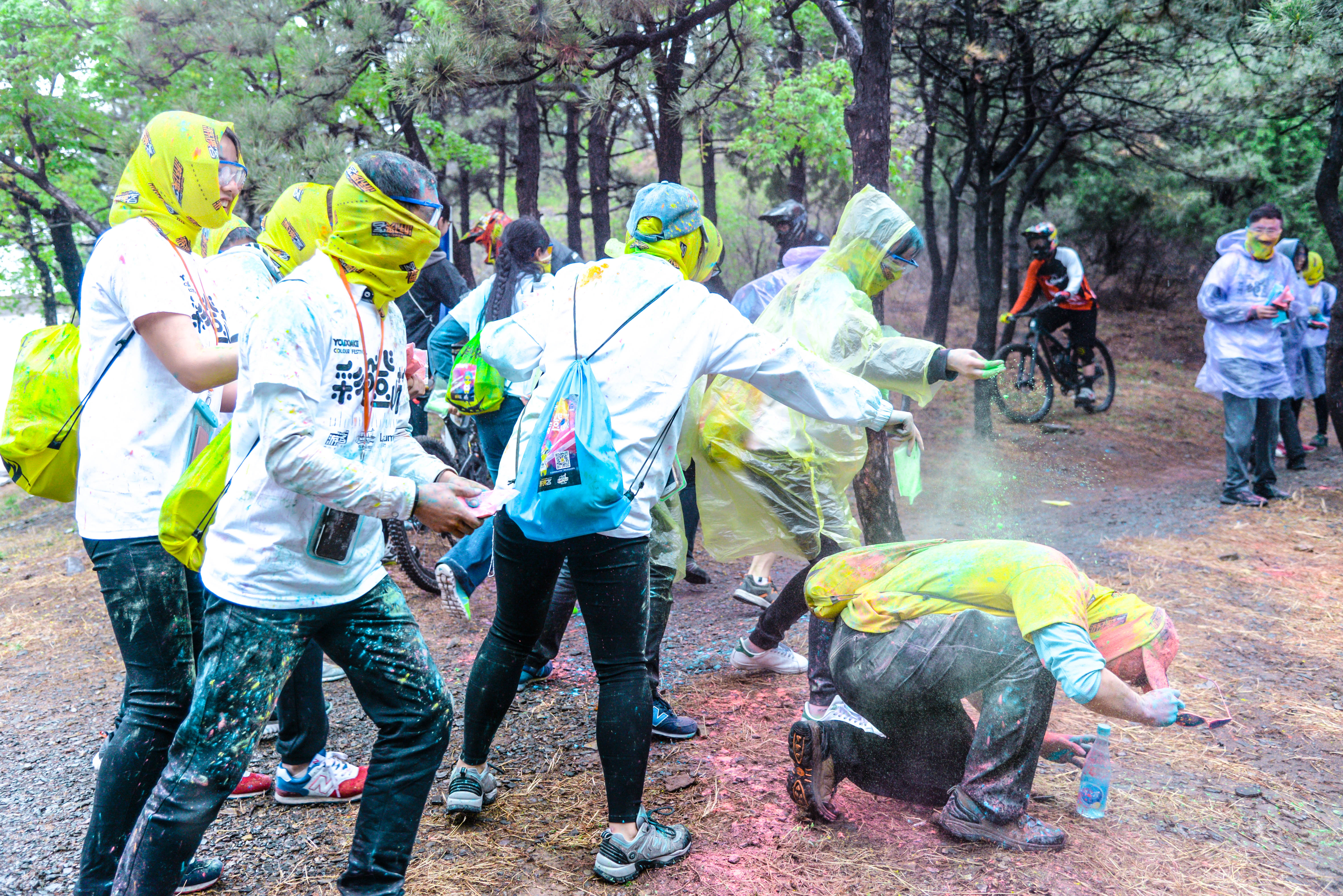 登山阻拦遭遇可以说是本次活动大家遇到的第一个有趣的环节,在到达大平台主舞台区之前,可以说是对大家的一个小小的挑战,工作人员在路中间武装完毕,拿好“炸药”,等待着大家的到来,完全一副挑事的Style,“你过来啊!”