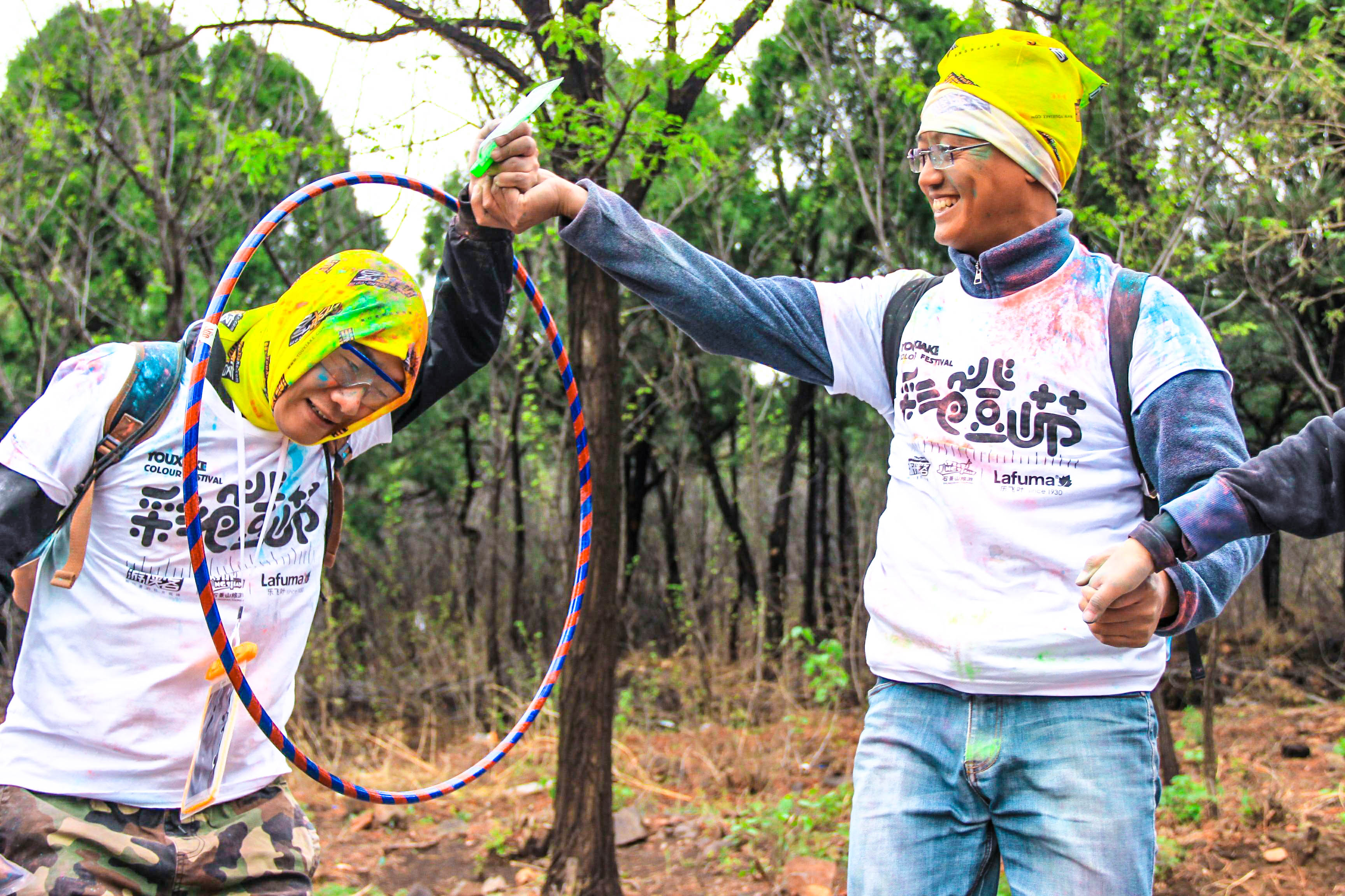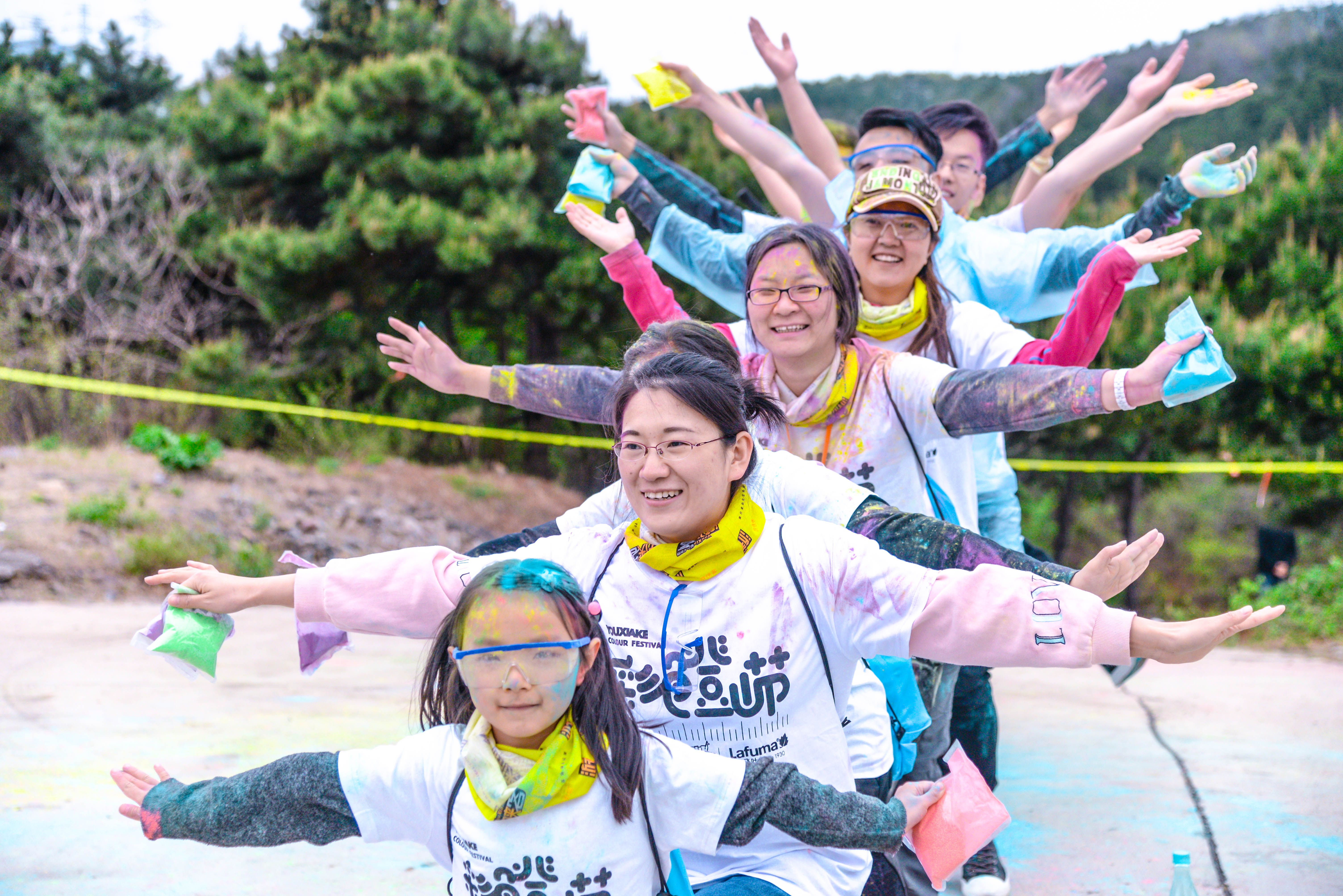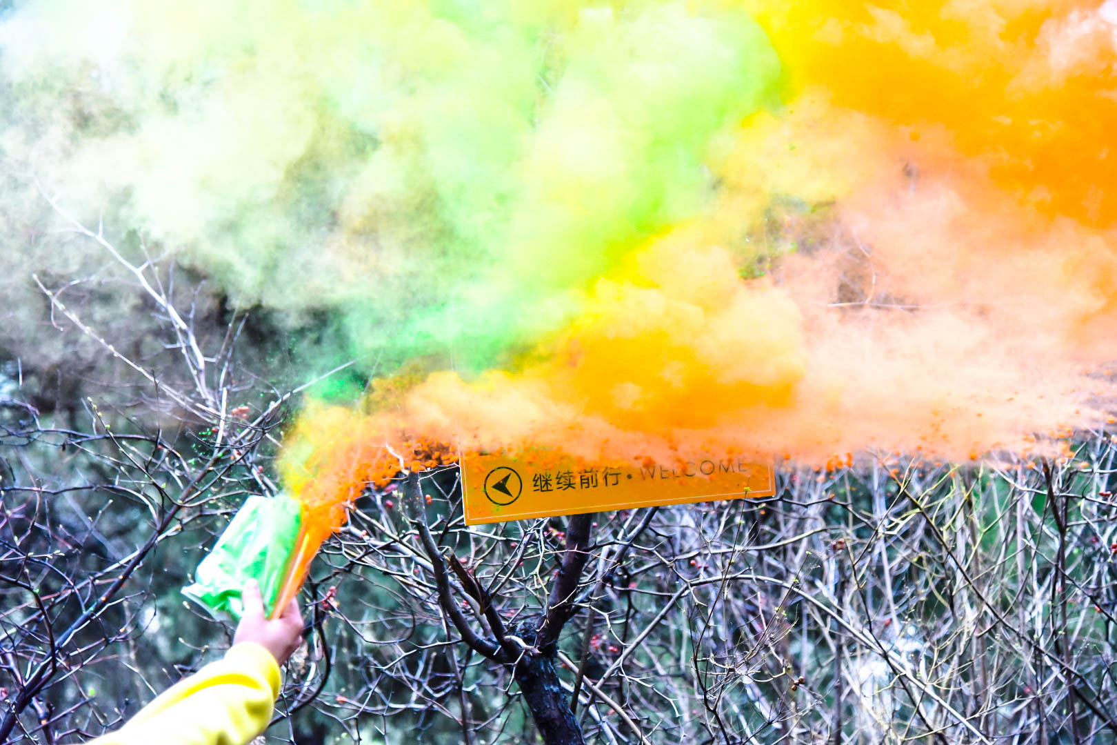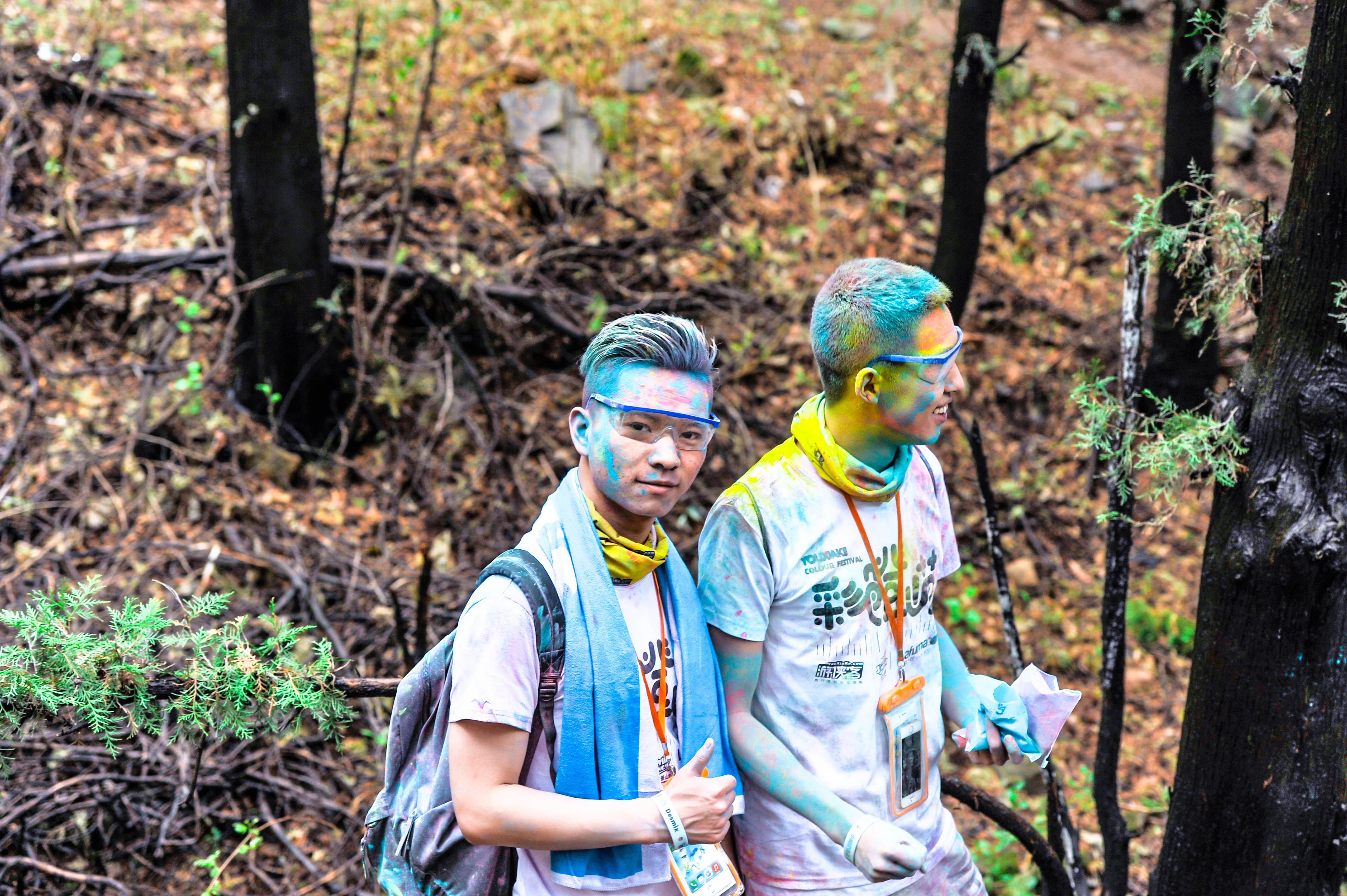 登山阻拦遭遇可以说是本次活动大家遇到的第一个有趣的环节,在到达大平台主舞台区之前,可以说是对大家的一个小小的挑战,工作人员在路中间武装完毕,拿好“炸药”,等待着大家的到来,完全一副挑事的Style,“你过来啊!”