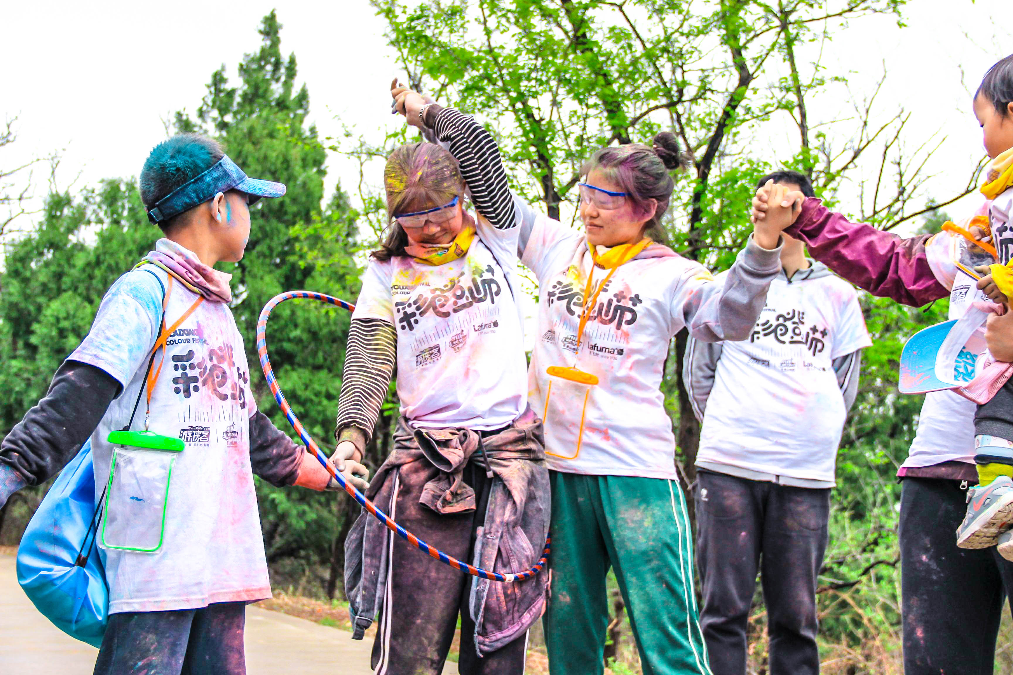 穿越怪圈对大家来说也是一个小小的挑战,大家手牵着手,用身体的其它部位将呼啦圈从一个人从另一个身上穿过
