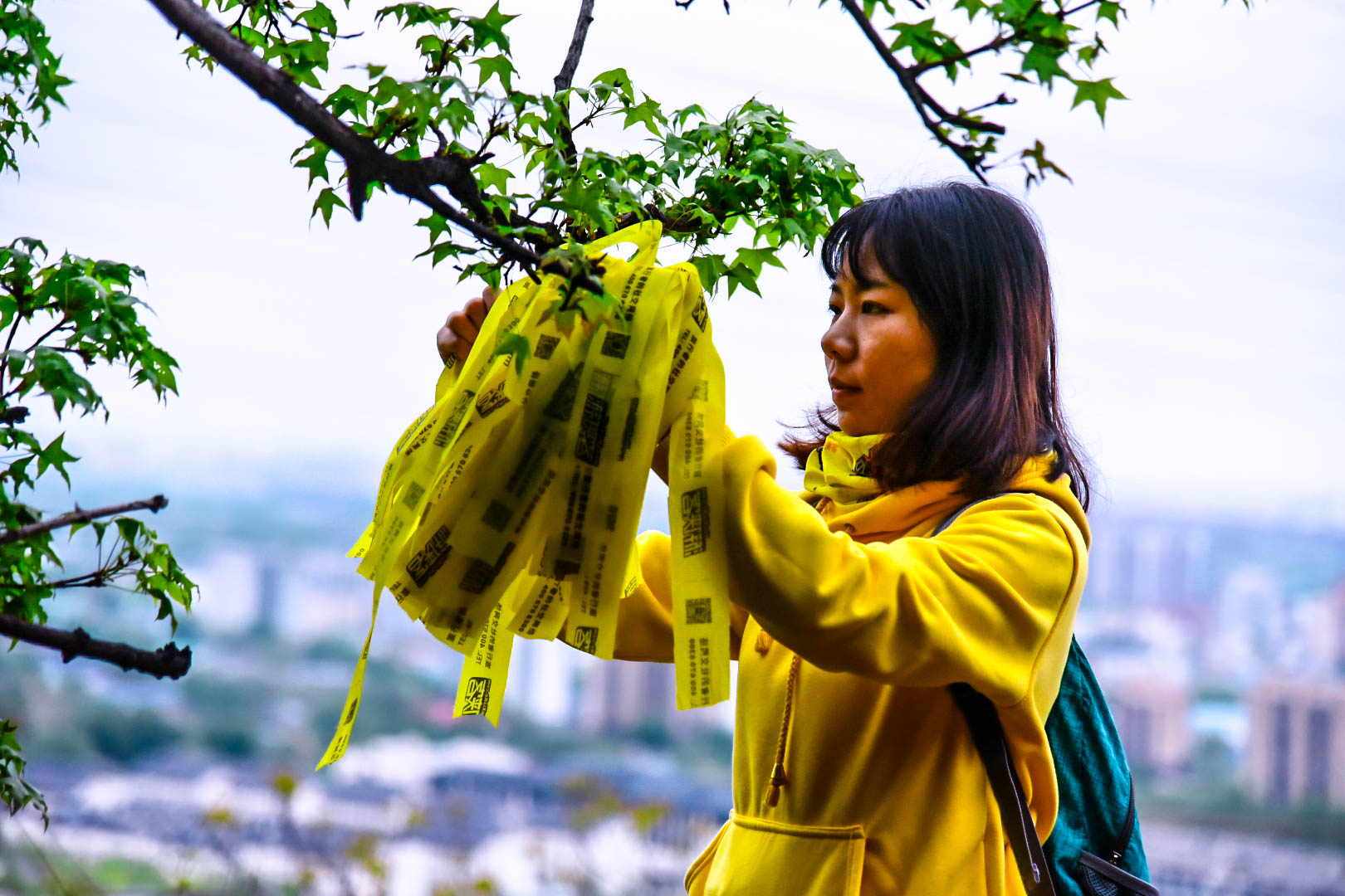 登山祈福是本次活动的第三个环节。登山没有那么“简单”,我们还是带着虔诚来的,许个愿,将美好的祝福寄语到祈福带上,心系朋友、家人