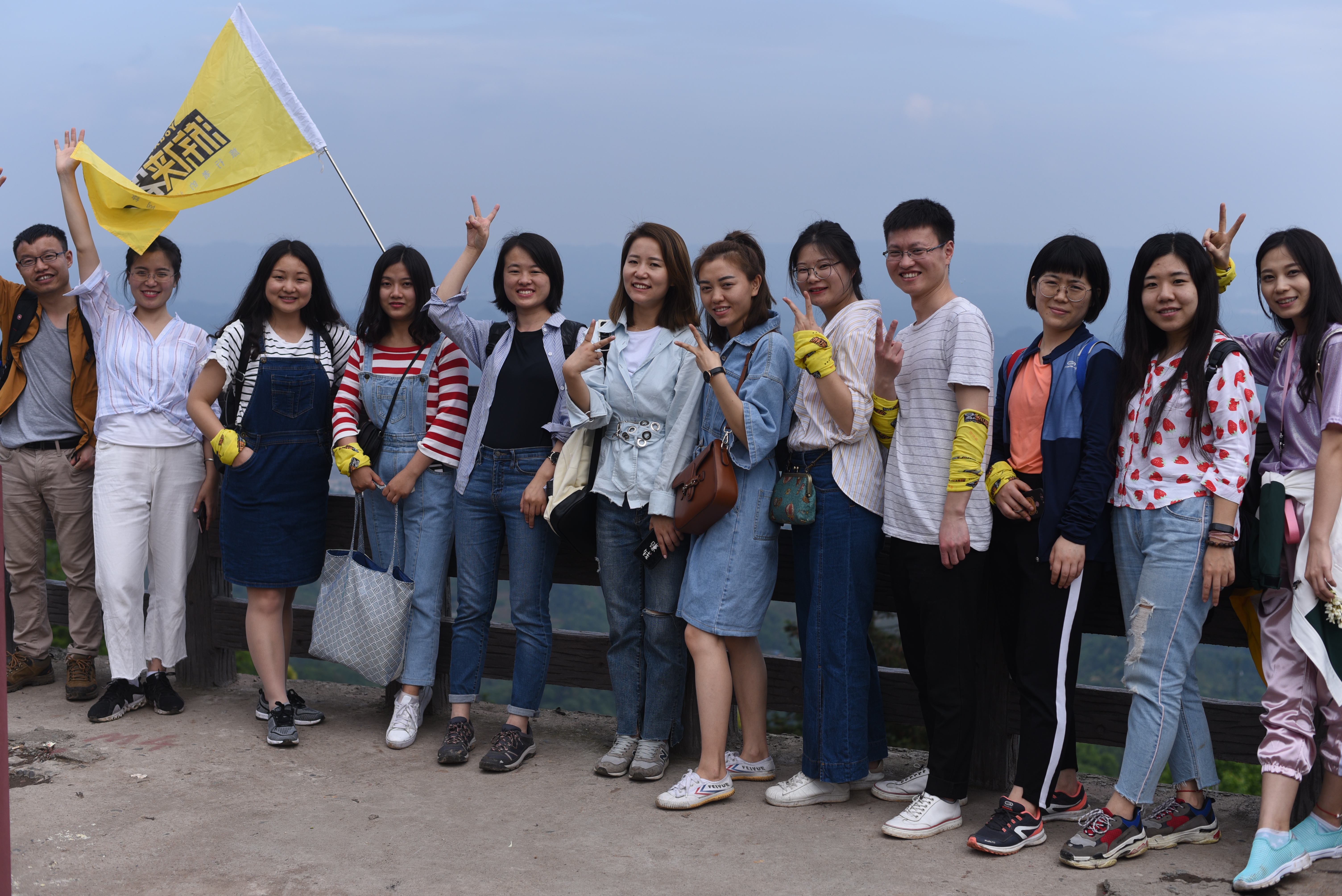 快到山脚的时候,领队带着大家去了此行的最后一站,一个可以将山下景色一览无余的人工平台。大家站在楼上,任凭傍晚的清风撩起女生的秀发,吹干男生的汗水。虽然已经劳累了一天,但是这绝佳的景色依然让游侠们惊叹,纷纷掏出相机、手机记录下眼前的一切,最后在领队的召集下,拍下了一张珍贵的集体照。