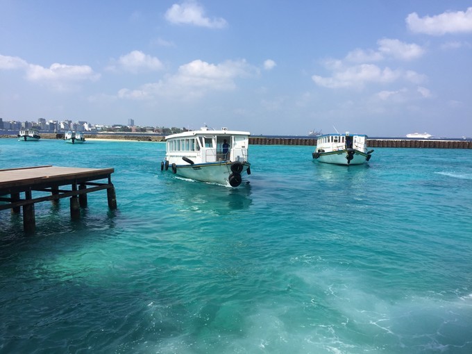 我们的行程为8天6晚,到马累第一晚和最后一晚都住宿在呼噜马累岛,作为自由行的一个好处就是能安排一天去马累逛逛,虽然这个首都拥挤又破败,但作为了解当地的社会民俗风情,还是不错的选择.以下两张为机场码头,上岛的快艇就是在这里接游客的。