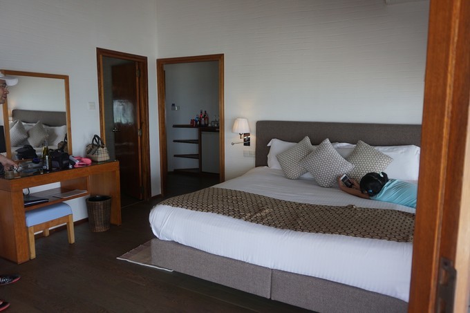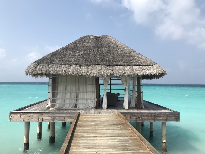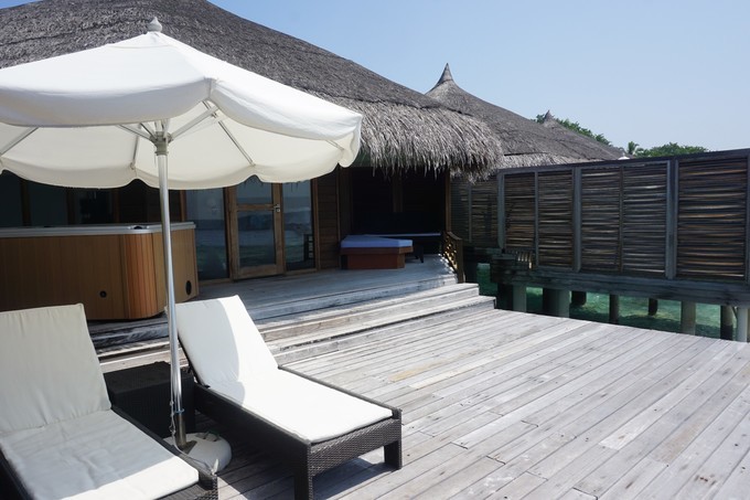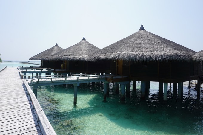 水上别墅当然就是建立在泻湖之上了,里面有双面盆和花洒淋浴的浴室。别墅外的木夹板上还有阶梯可以伸向泻湖,你可以直接步入水晶般清澈的海水中。按摩池水上别墅则比普通的水上别墅更高级些,最大的特色就是拥有超大床和宽敞的浴室,还配备了按摩浴缸、日光浴椅和太阳伞等,可以全天候的欣赏到美丽的印度洋风光。