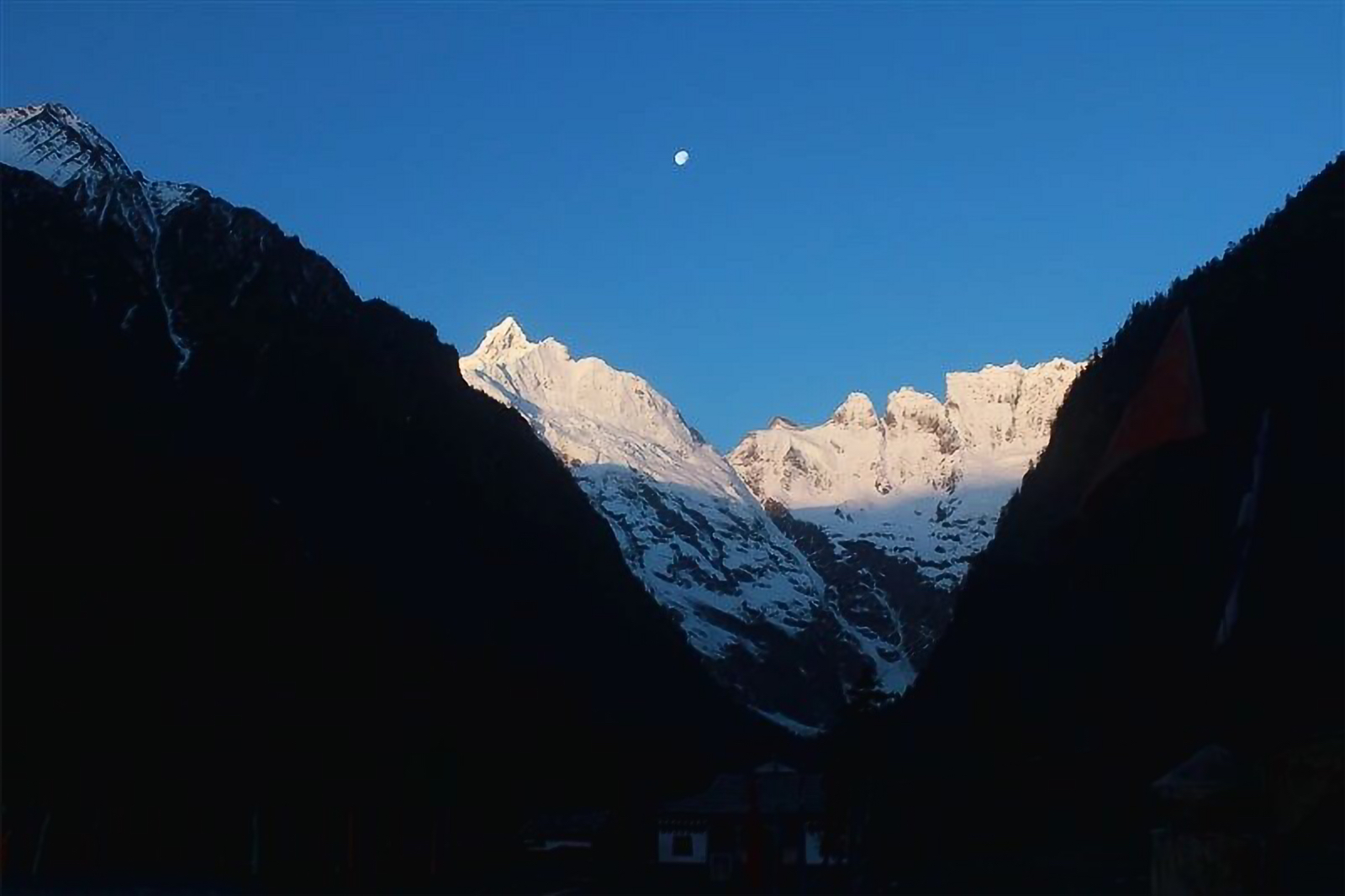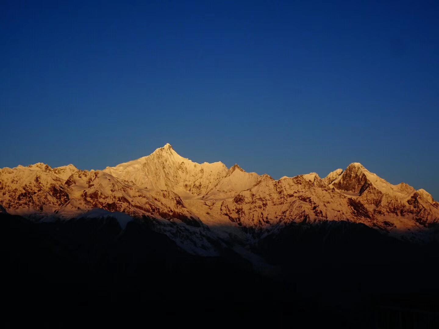 等了一下午都是若隐若现的,所以天一黑吃完饭就赶紧睡觉觉了,等着明日一早观看日照金山。