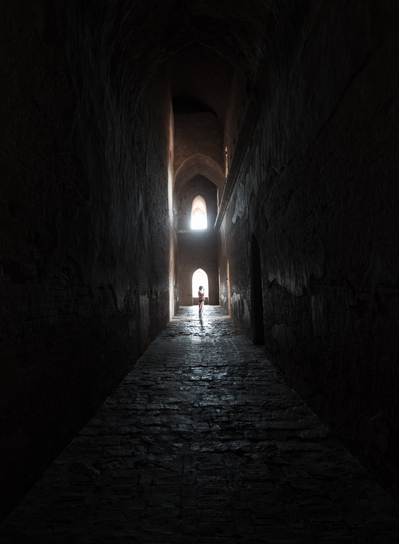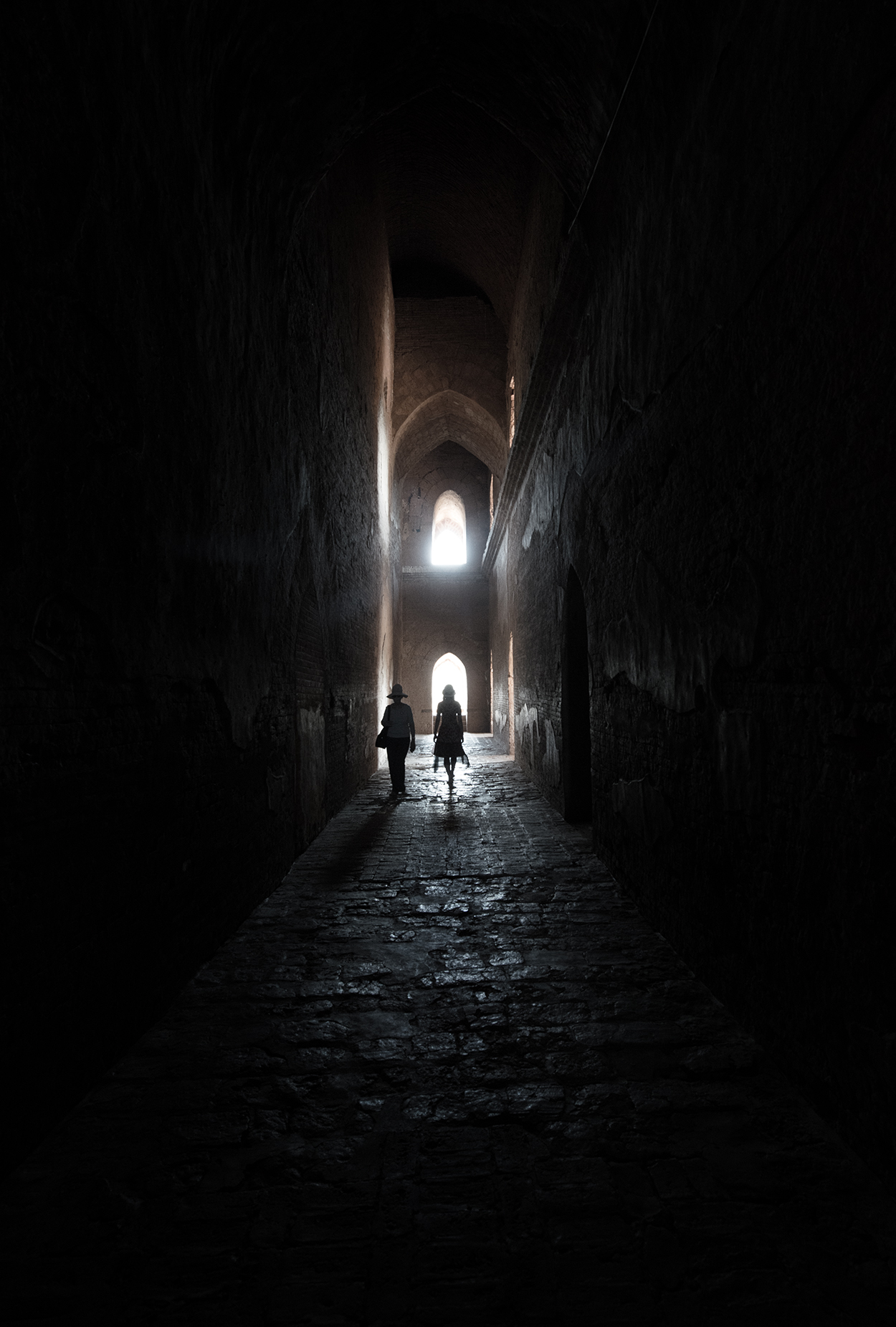 这是达玛扬基佛塔内的一条走廊,采用超广角,结合前方门洞折射出的光线,可以拍出具有强烈透视感的作品,因此,我将其命名为“时光长廊”。拍摄时,有几种创作形式: