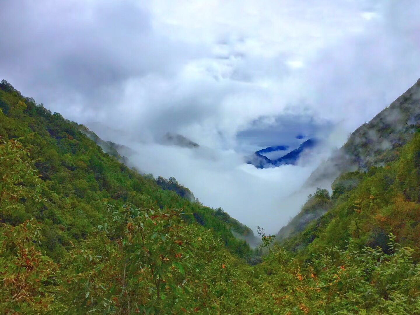 昨晚下了一晚上的雨,大家晚上都不敢睡太着,怕雨水灌到帐篷里来了,早上向导给我们准备了面条和鸡蛋,吃完了我们就继续出发,协助们留在营地给我们收拾帐篷以及处理营地垃圾,虽然下了一晚上雨,但是对我们来说能看到云海的几率也有所增加,当我们到达高出的时候真的看到神农架的云海,大家伙都很兴奋。
