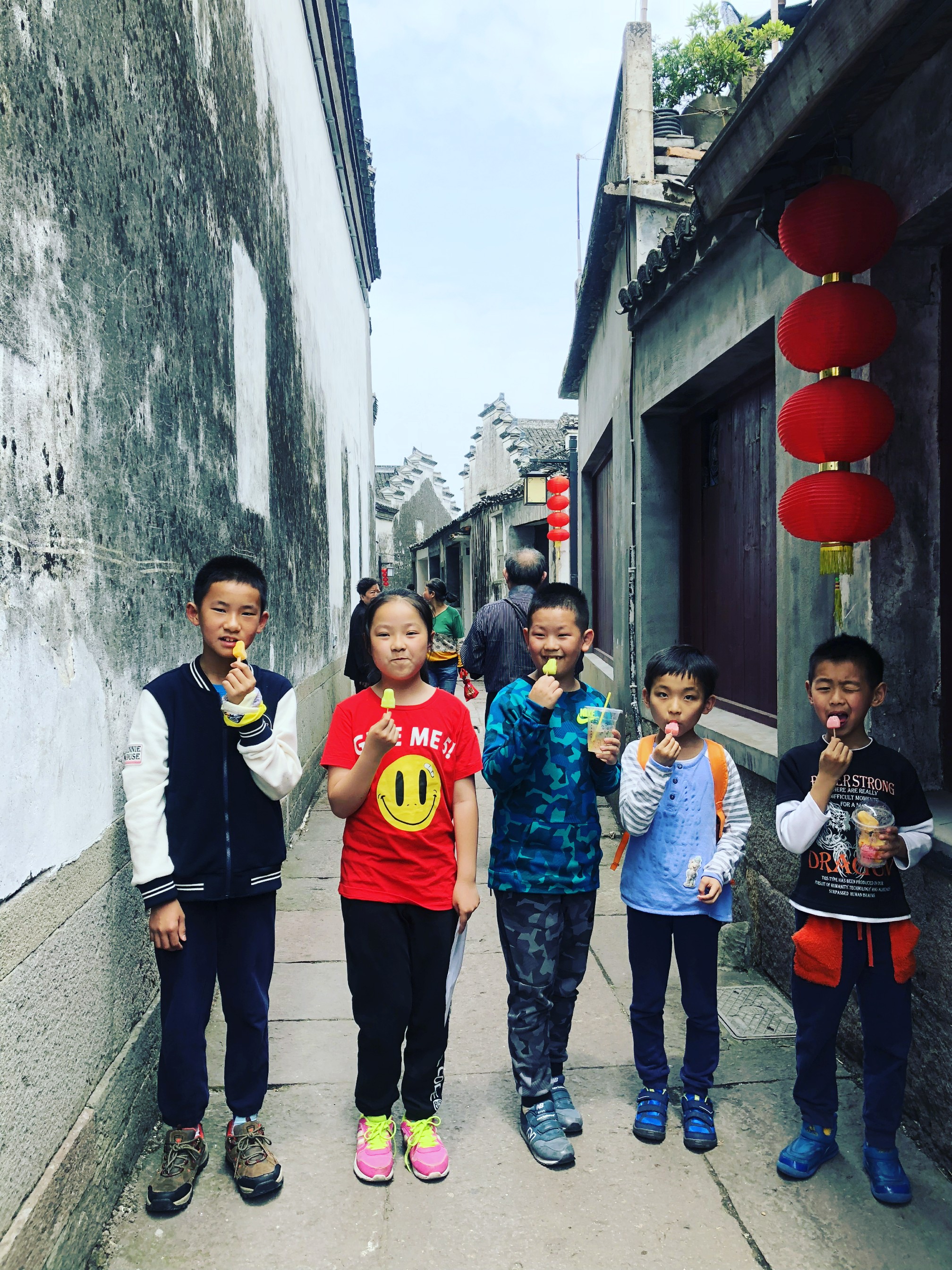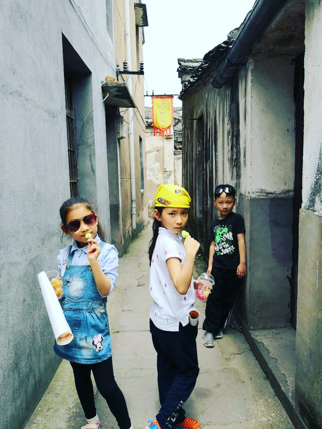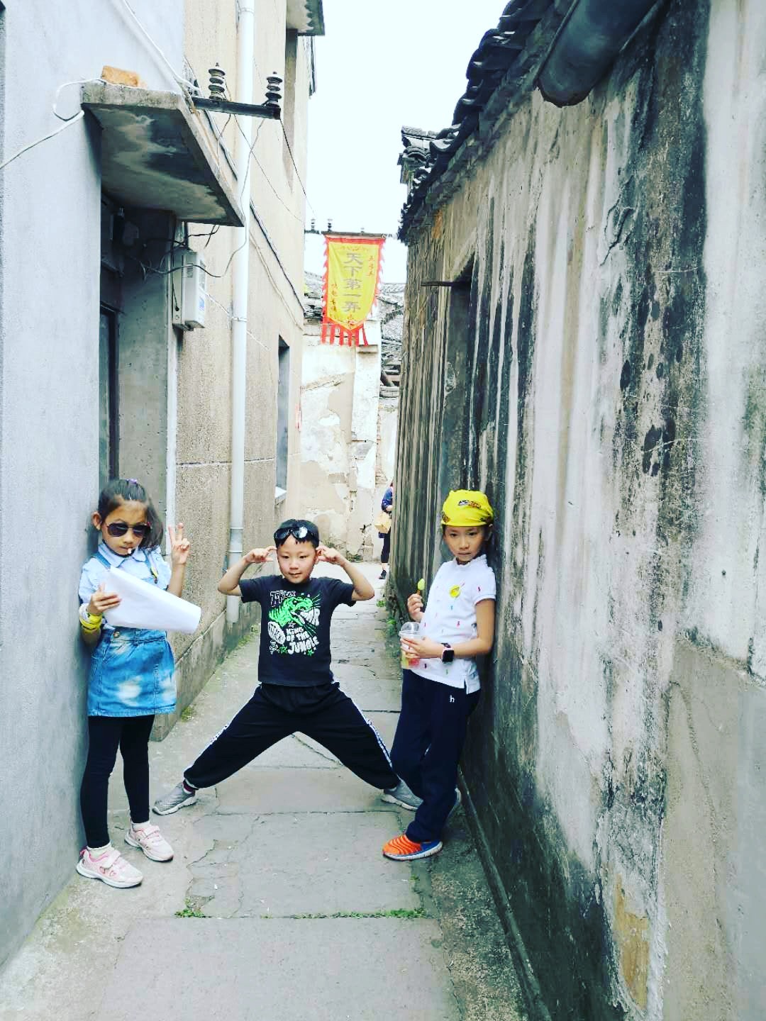 五月的清晨,空气清新,温度适宜。我们在一片欢歌笑语中,出发前往鸣鹤古镇。自我介绍阶段的小朋友,个个积极踊跃,才艺出众,胆色过人。似乎都达到了诗词歌赋样样精通的境界。我们一起唱歌,一起研究百变魔术头巾的用法,一起合唱国歌。。。。。遥远枯燥的路途,瞬间变得妙趣恒生。