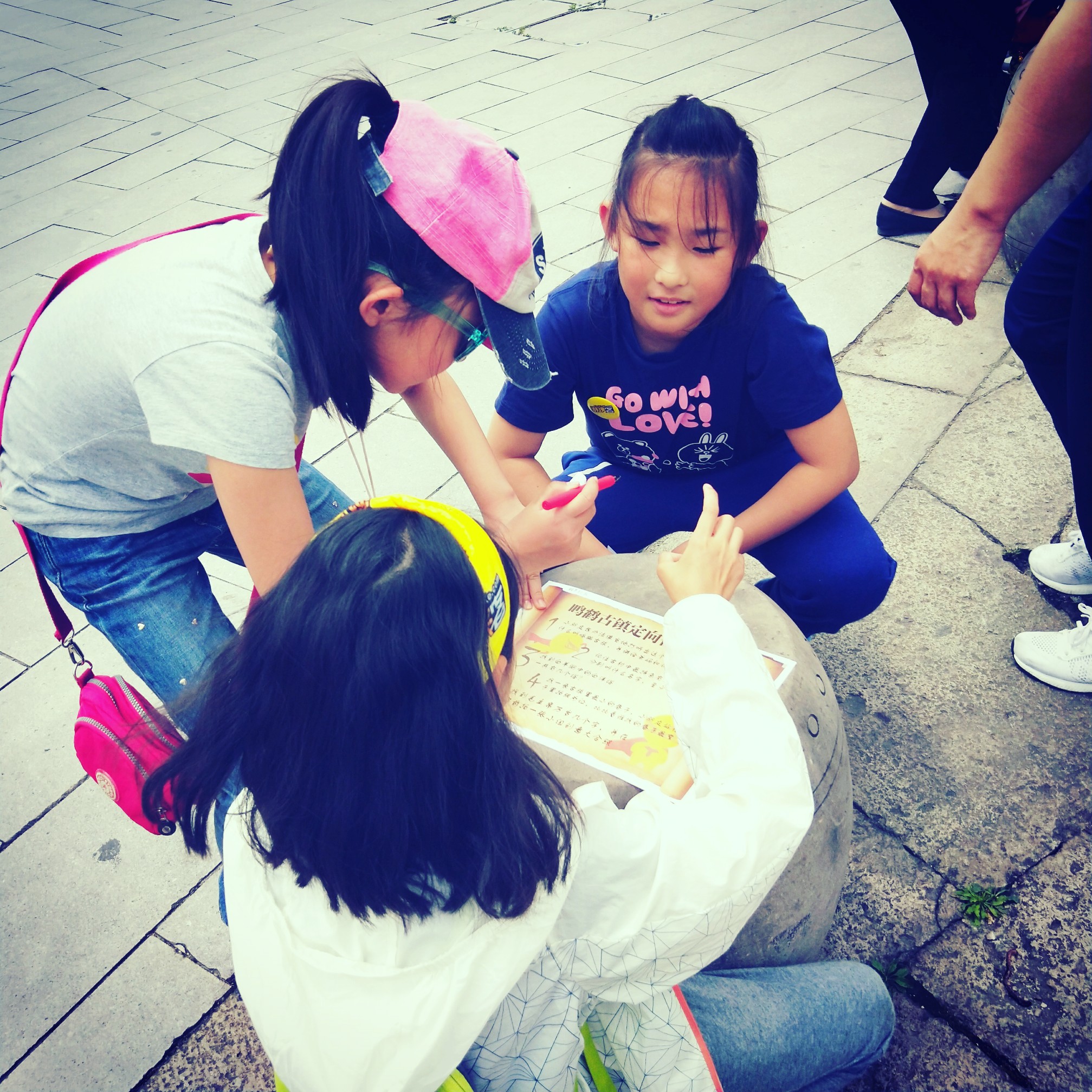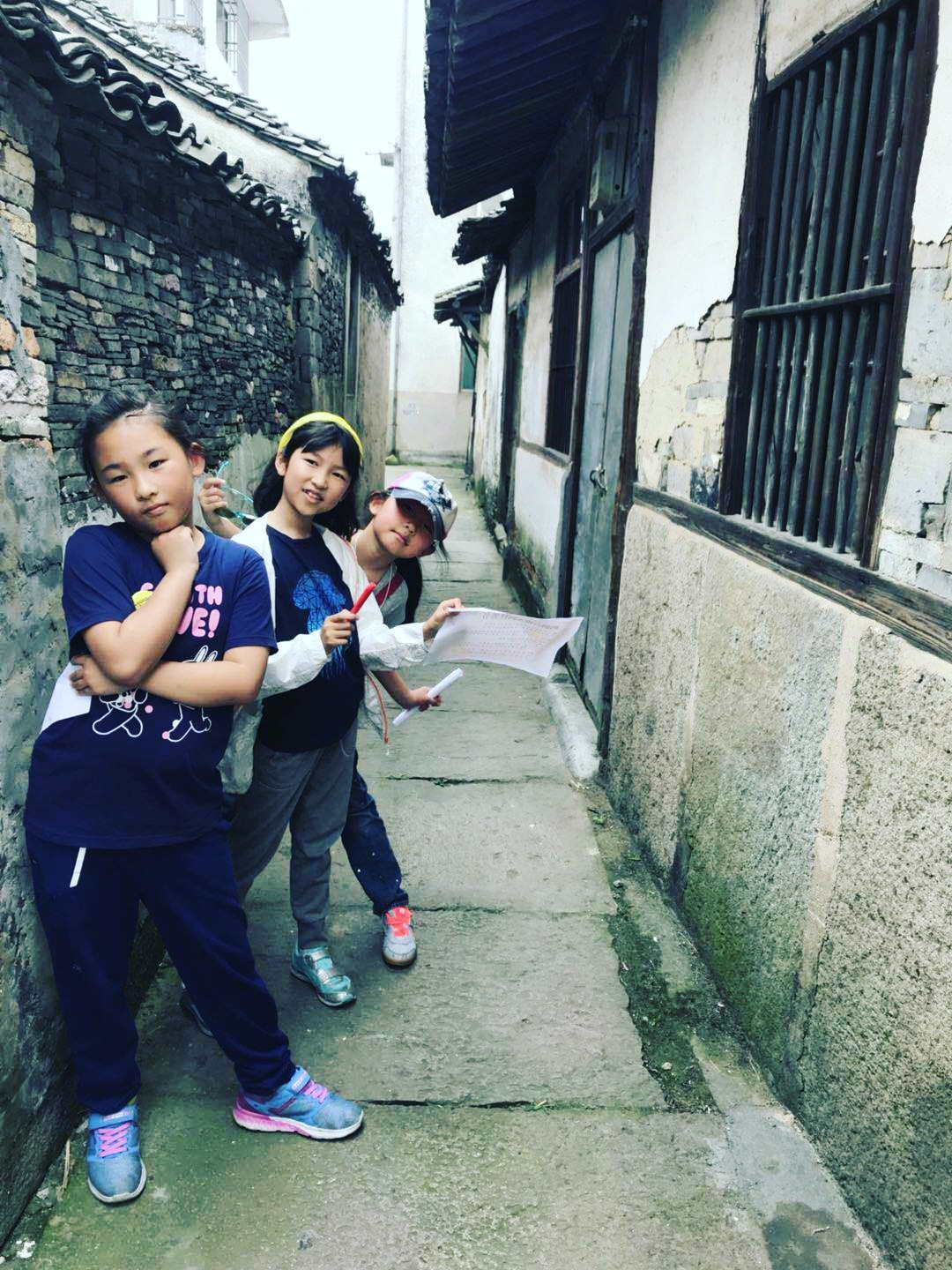 鸣鹤古镇的到达拉开了定向赛的序幕。任务书下发,孩子们开始分组,取队名。精英队,美少女组合队都是名副其实的棒。还有一队,我只能称其为葫芦队,因为我尚不知道,他们最后是定为葫芦子?葫芦娃?还是葫芦王?但是不管哪个,都是别具风格,耳目一新。