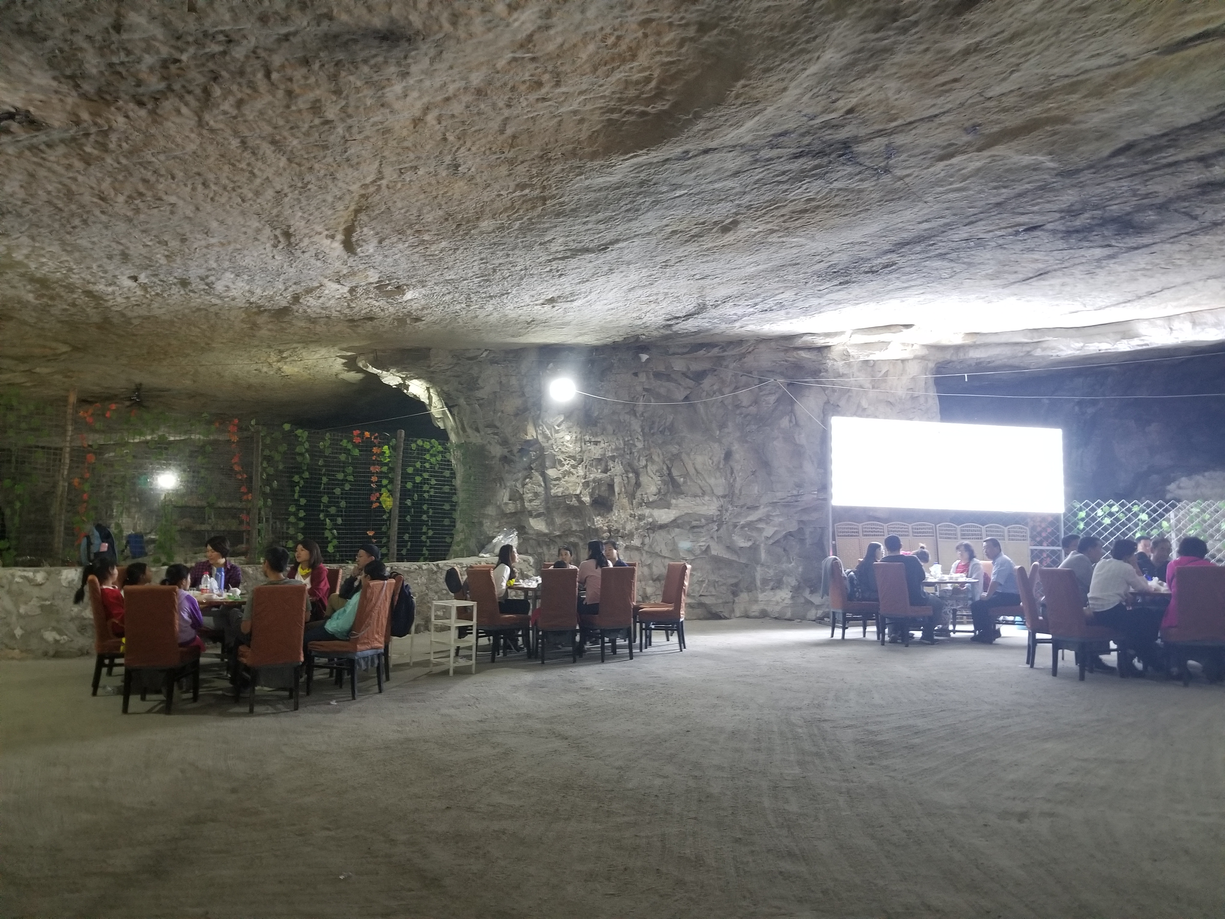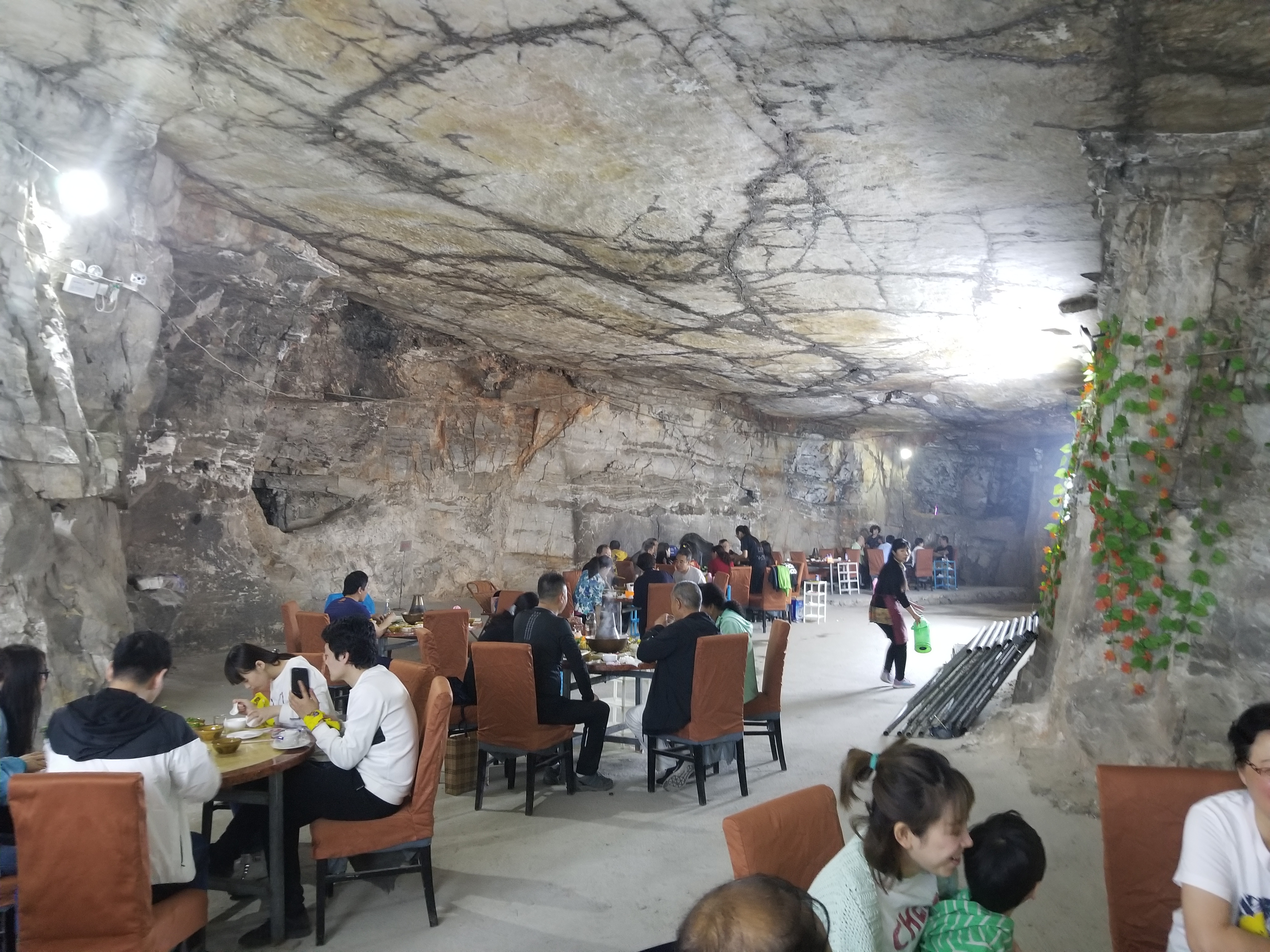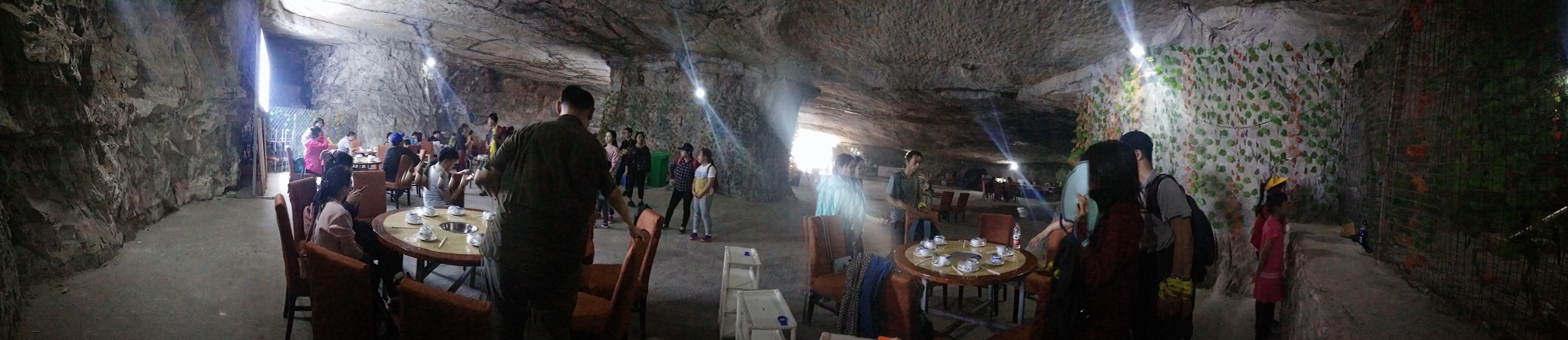 一个多小时后,我们集合启程前往午餐地点——仙蘑洞。这是一个用山洞改造而成的火锅店,洞内种植着各种菌类,客人吃的食用菌都是现场采集直接上桌的,可以说是非常新鲜了。坐在清凉的山洞里吃着火锅,这真的是一种别样的体验。