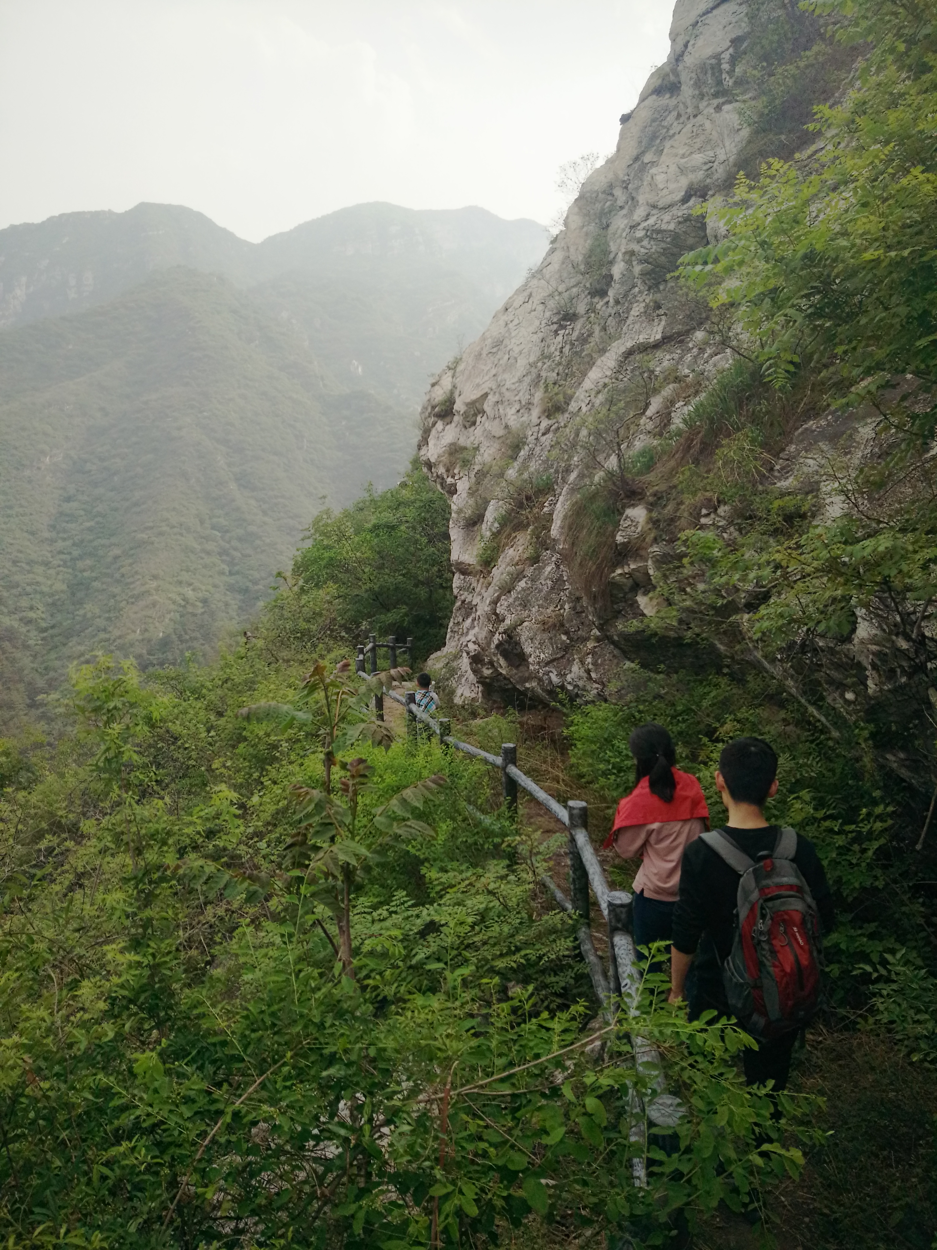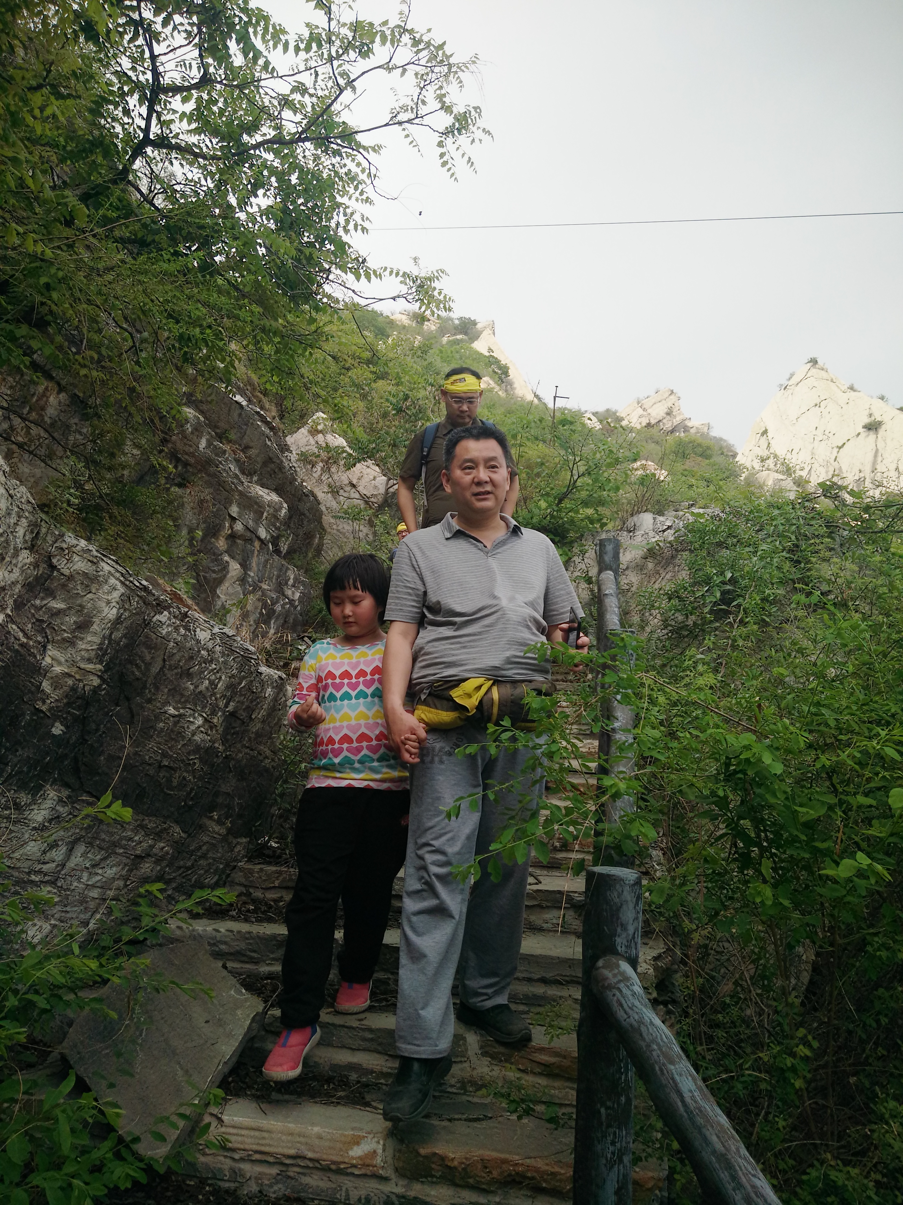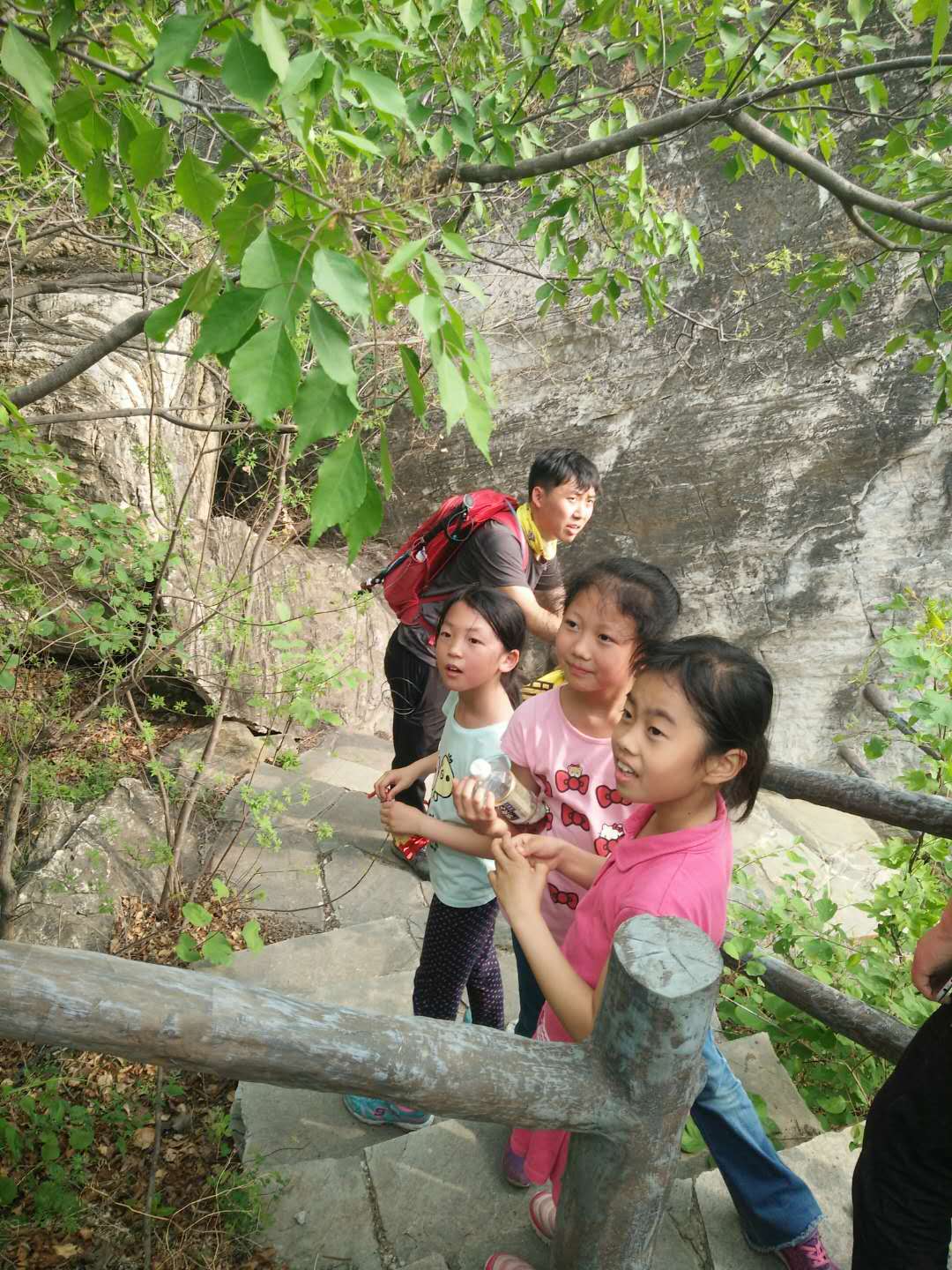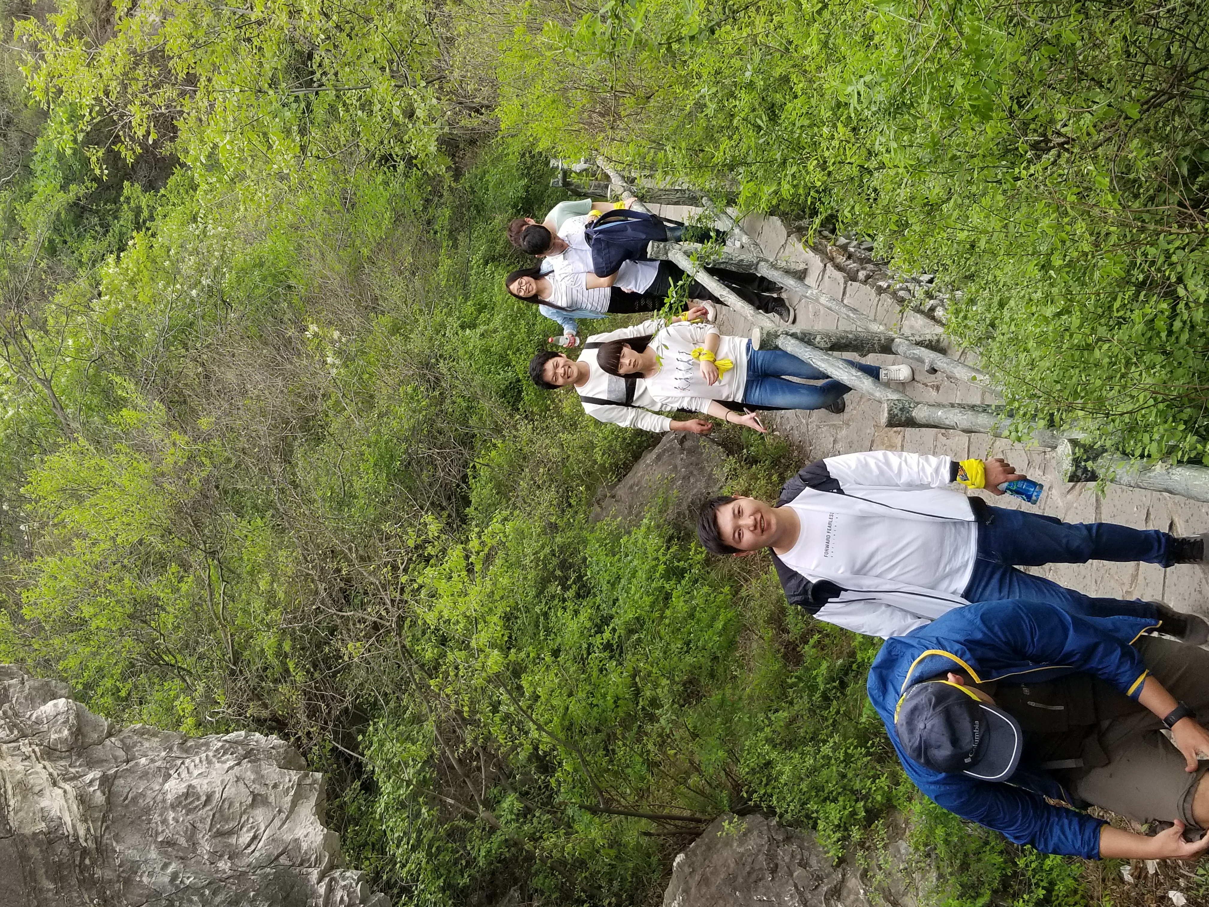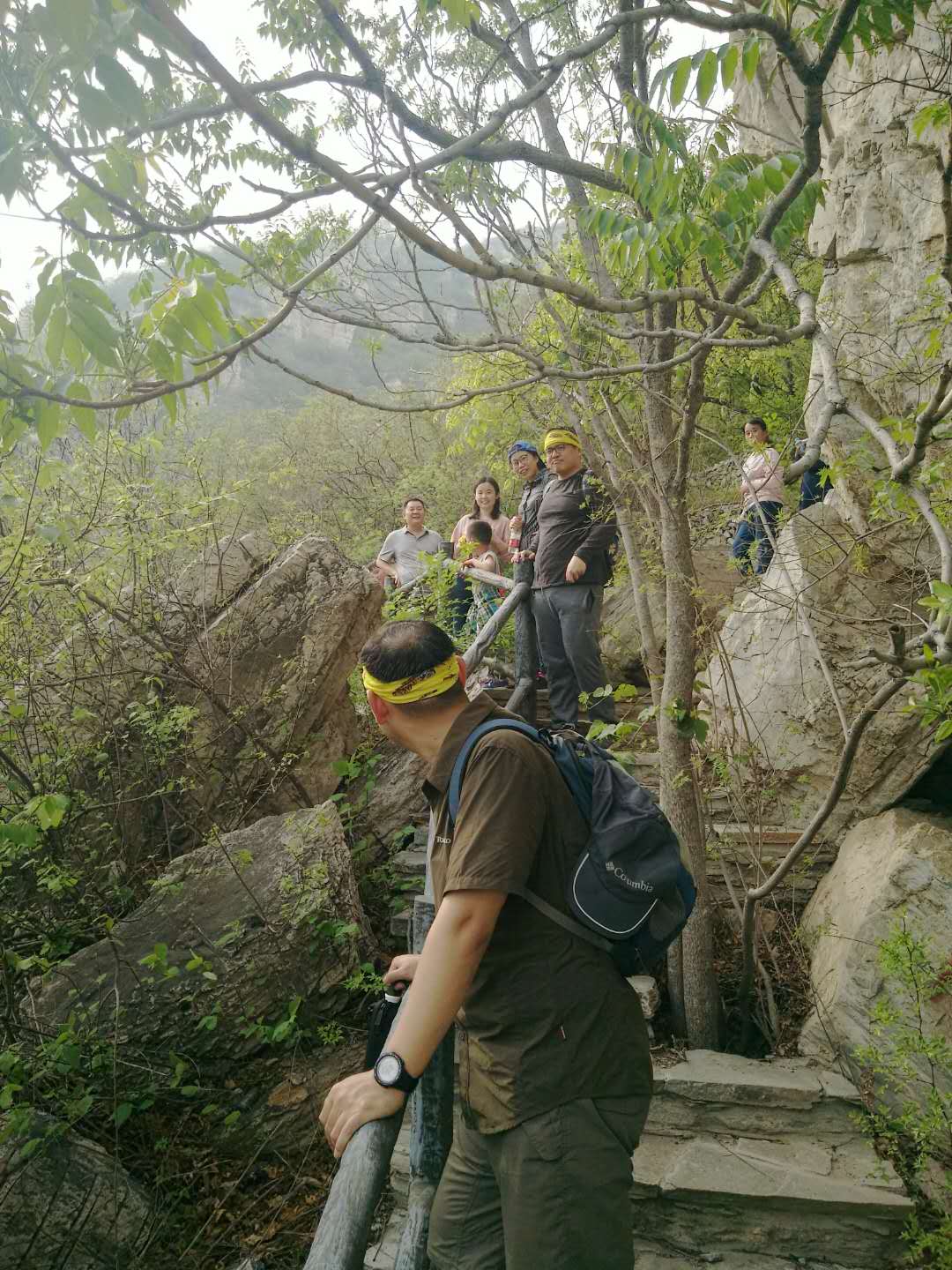 午饭后,我们驱车前往怪石山。怪石山,因怪石林立而得名,风景秀丽。从怪石山出发可以穿越至上方山一带,是一条非常著名的徒步线路。我们今天的计划原本是登上怪石山顶进行游玩后再原路下山,但是大家登顶后都感觉意犹未尽。于是 ,在征得大家同意后,我带领大家翻过怪石山下撤至山后道路上,再沿着公路绕过怪石山回到起点。一路上大家欢歌笑语,气氛相当融洽。途中我曾一度担心大家的体力,不过显然是我多虑了,大家真的非常棒。