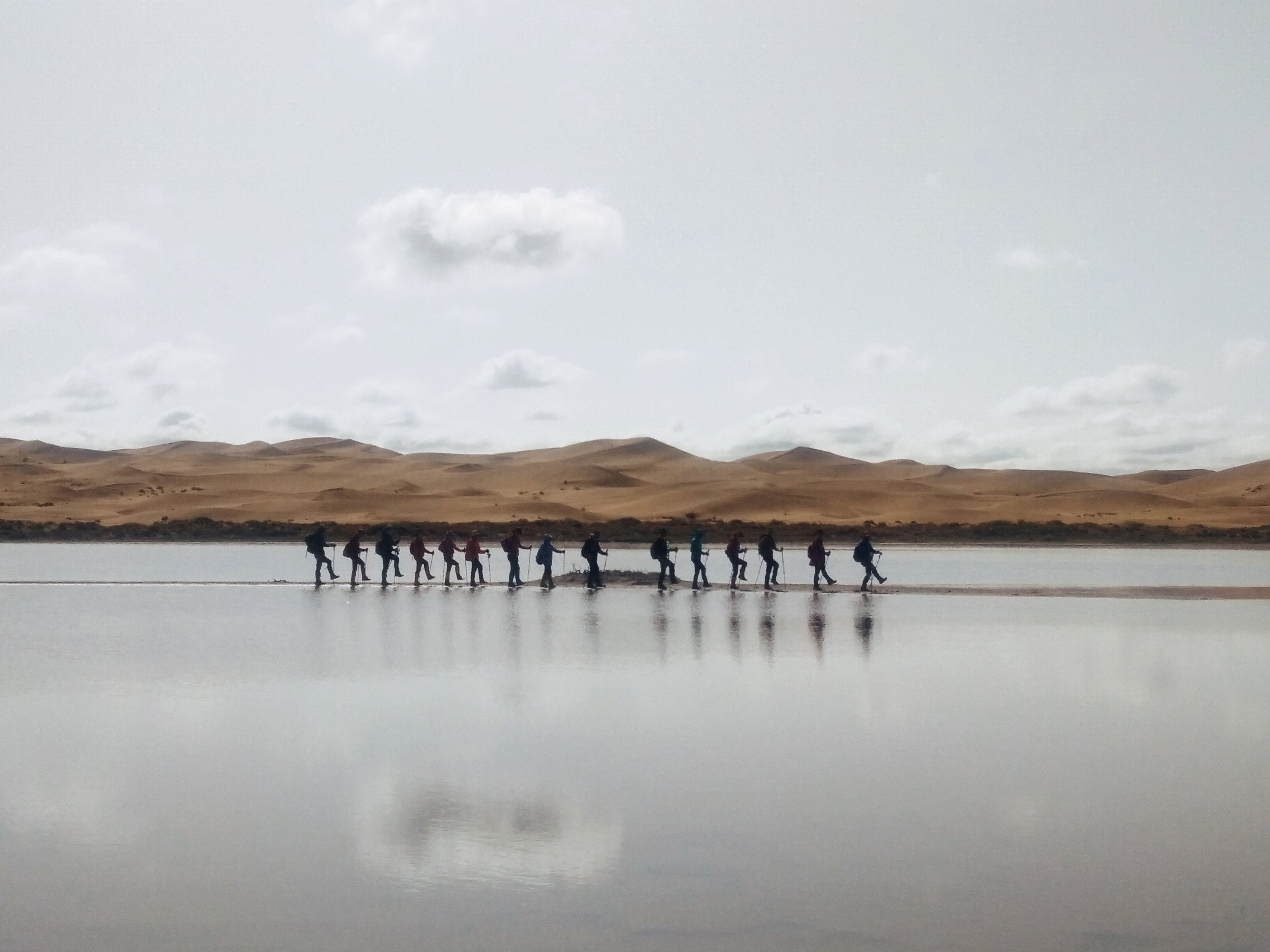 再次来到沙漠,是和26位可爱勇敢的游侠们。我们的小伙伴大多来自南方,沙漠对我们来说无疑是一种挑战。南方的清凉湿润与沙漠的干燥灼热形成了鲜明的对比。我们要从身体和心理上去克服这种气候差异所带来的不适和冲击,同时还要在沙漠徒步50公里。大部分人有着一定的户外经验,还有一部分人第一次参加户外活动就大胆地选择了沙漠徒步。这让我由衷的佩服,也让我暗下决心一定要带领大家出色的完成此次沙漠徒步,帅炸各大朋友圈!此次迎接我们的是中国第四大沙漠——腾格里沙漠。“腾格里”光是听到它的名字就已经萌生了很多幻想,在蒙语里它被赋予“长生天”的含义。我们想走近这片长生天,感受它的温度和脉搏,见证它的不羁和自由。