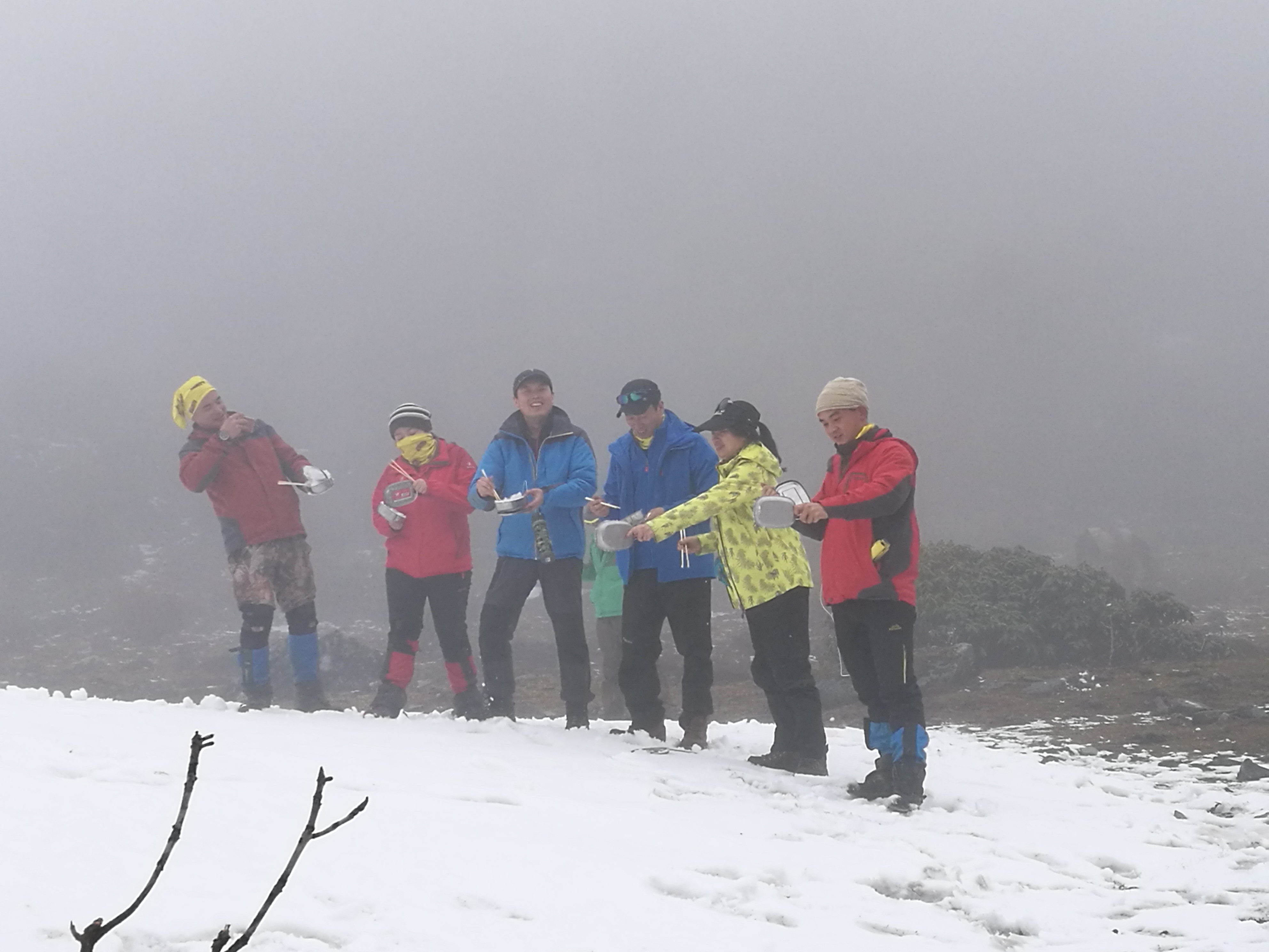 下山后“哈吧战队合影”(有点面目全非,但还过得去,呵呵!)