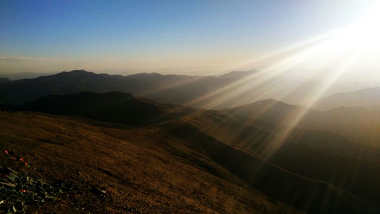 此时日出已经完成,于是左手朝阳,右手明月,中间是我的漫漫朝台路。