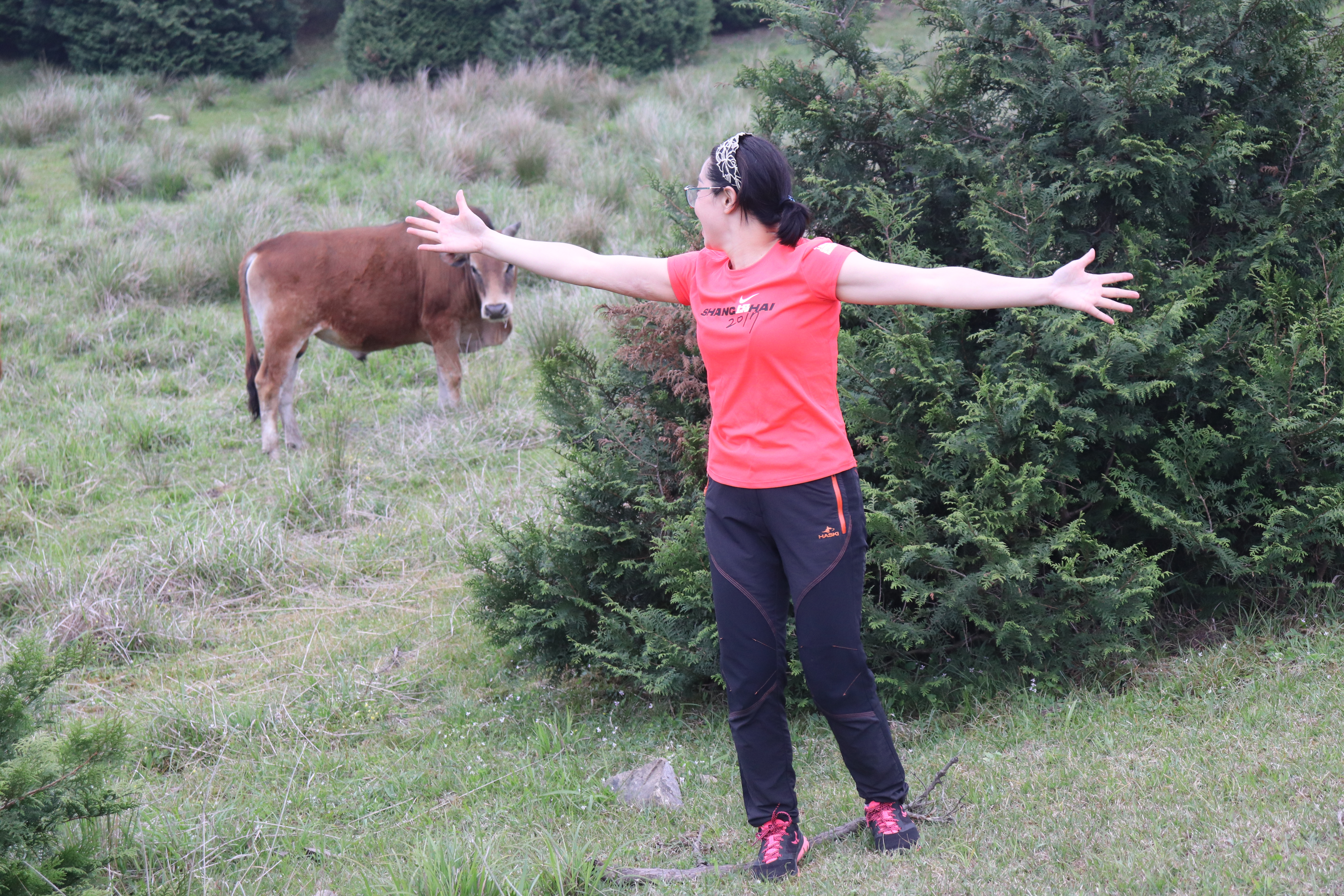 真不知道这天然牧场是9440家的,还是她解放了天性。非常兴奋“那头黑色的牛好漂亮,我好喜欢,快给我拍照”哈哈哈哈