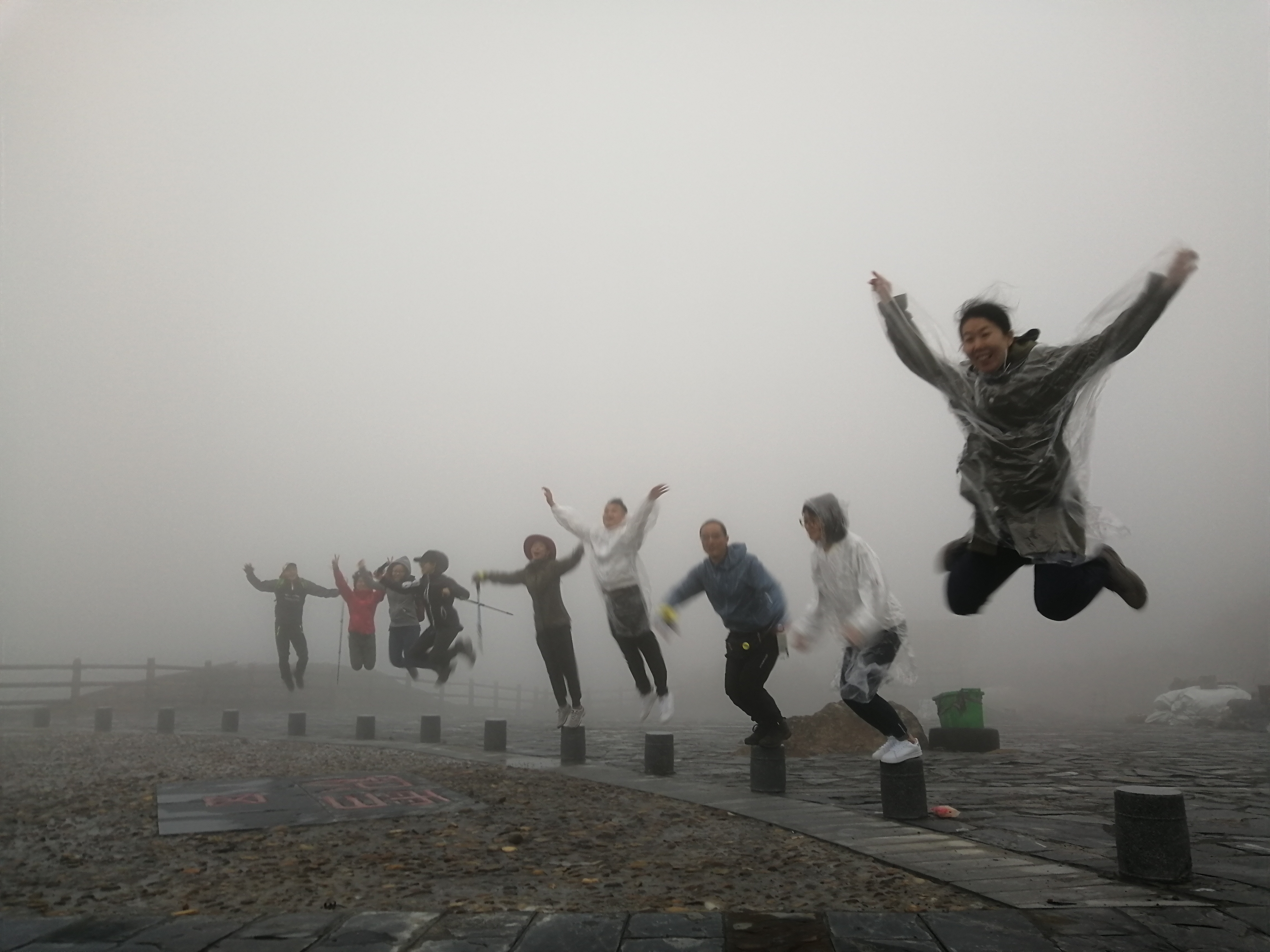 小伙伴讲的对,虽然没有日出,但我们要怀着看日出的精神,所以开始大家还是早早的爬起来在寒风和雾里晃悠