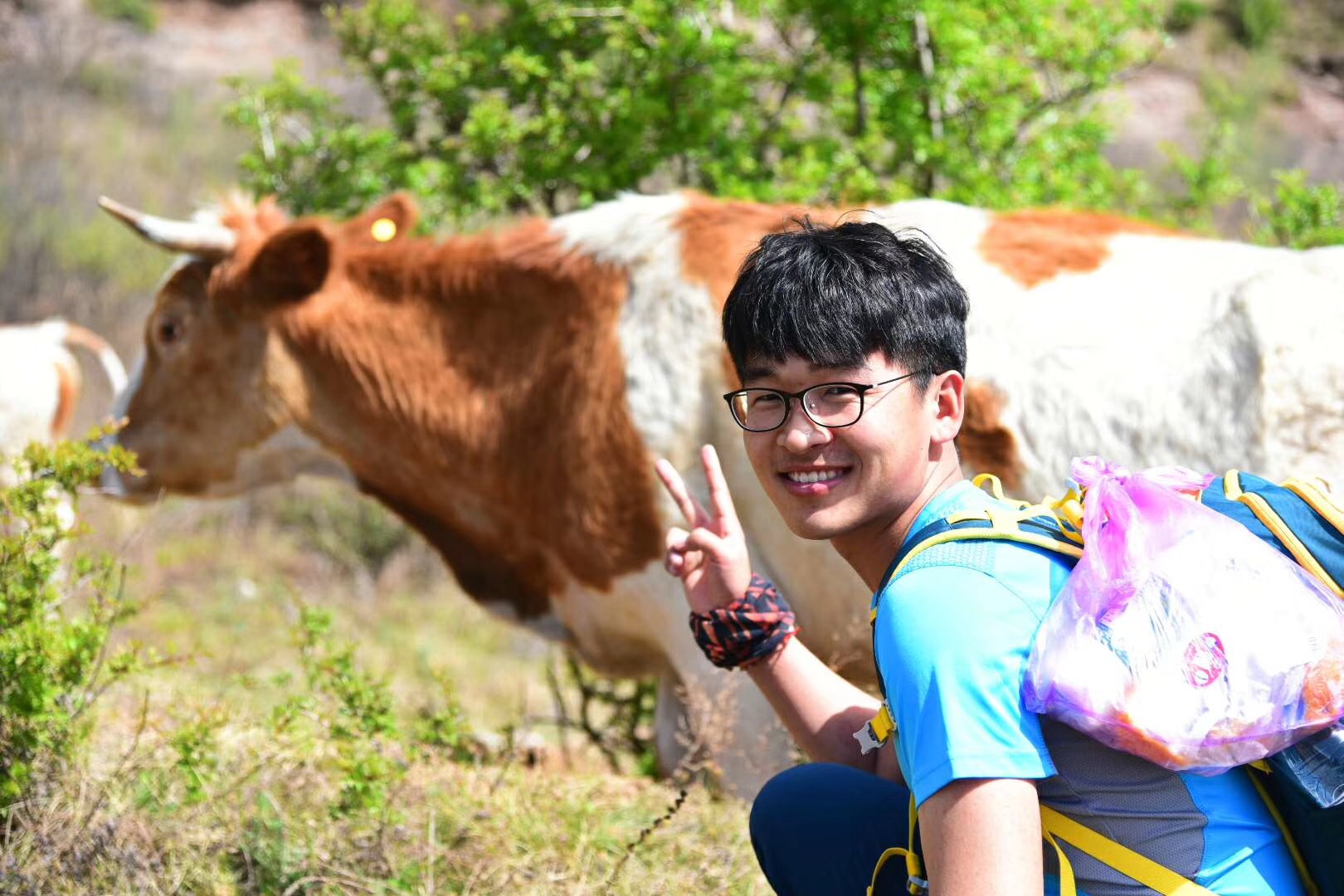 阳光帅气的boy 让牛的变得更加安静了!仿佛也在倾听着彼此的故事。