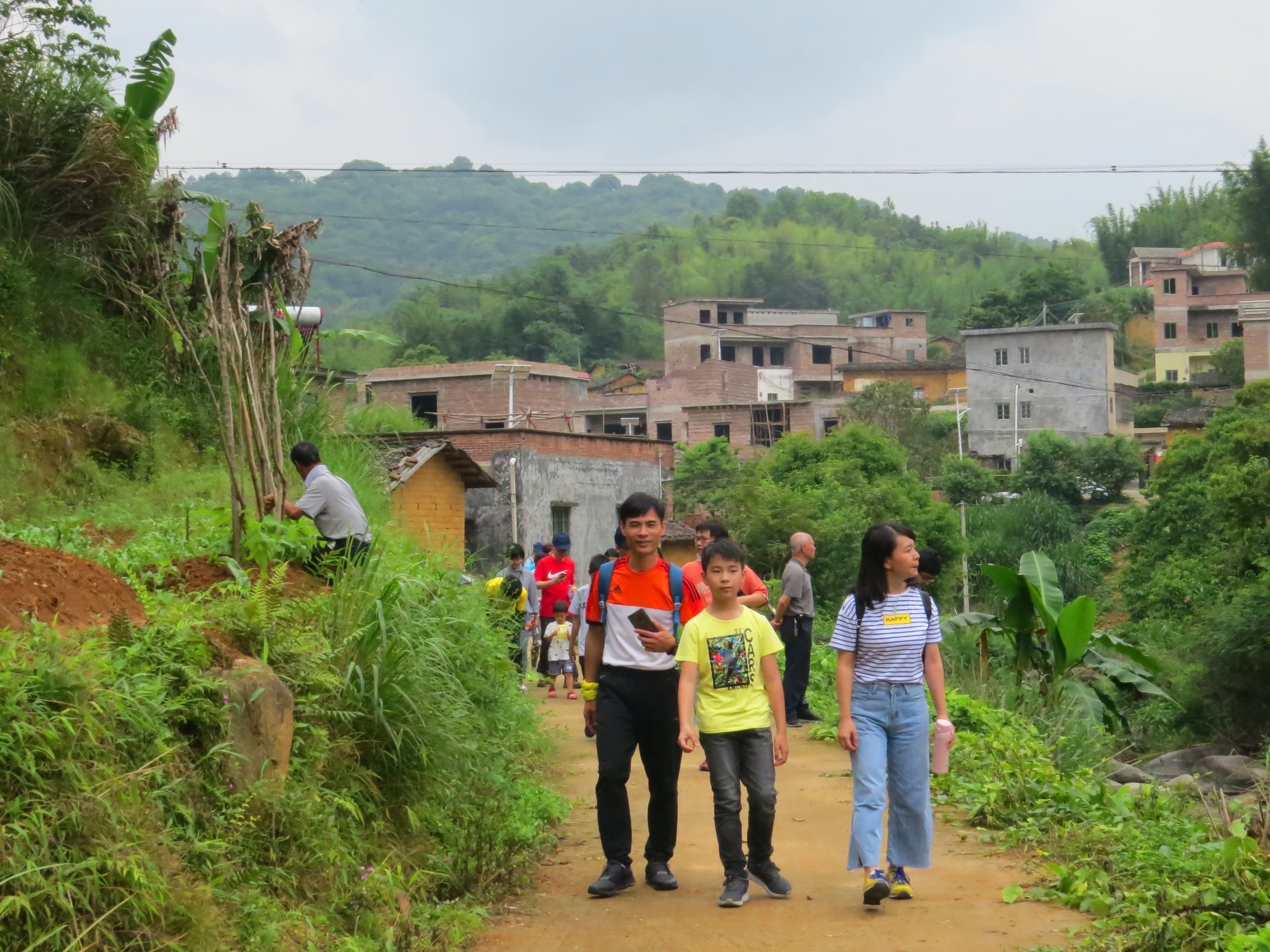 村庄周围是层层梯田,东面的山沟是次生林,西面的山沟是砂糖橘林。那绿的是稻苗,黄的是砂糖橘的果实,红的是野蔷薇的花苞,真像走进了连绵不断的画卷。