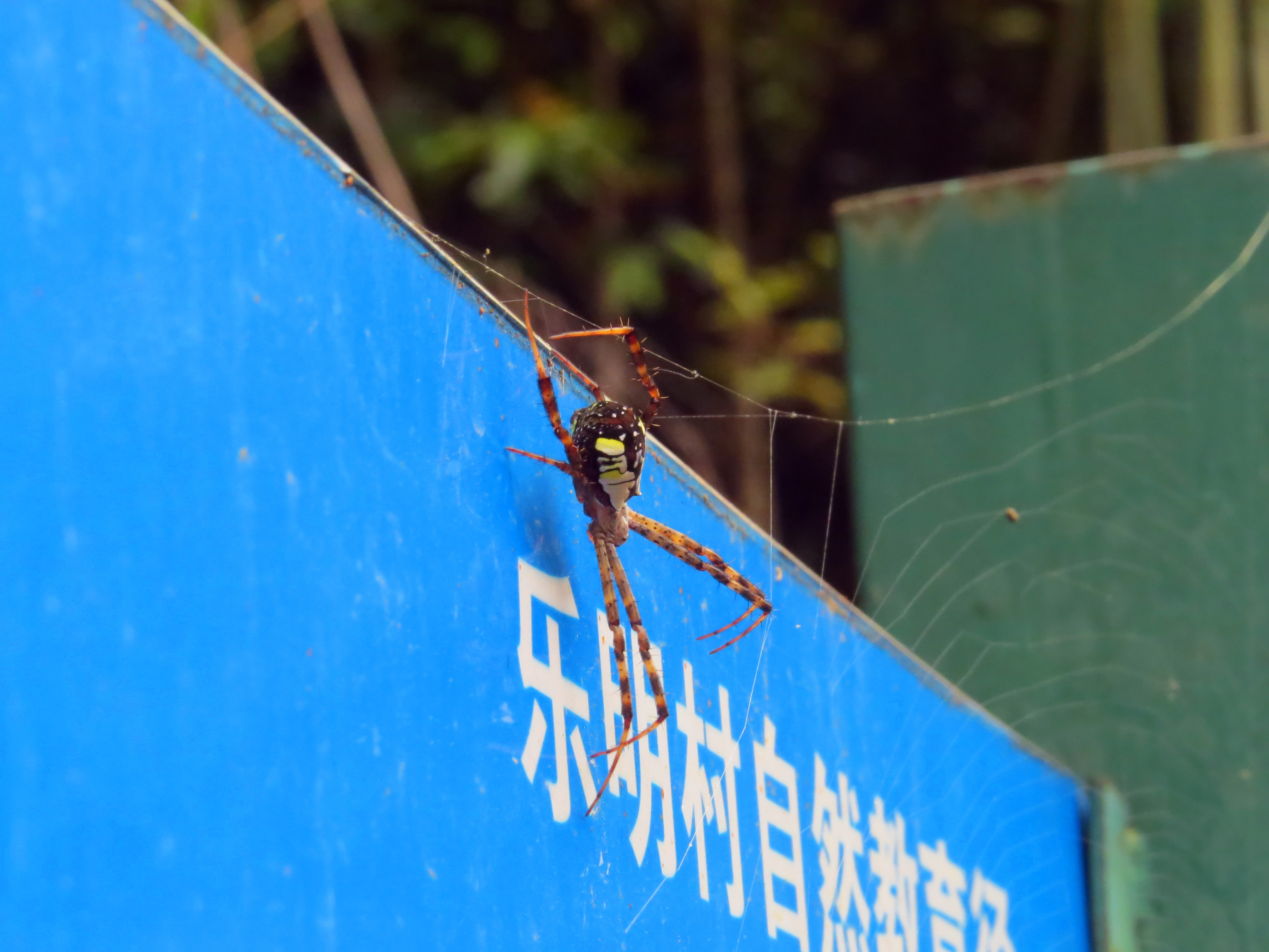 在指示牌上大快朵颐的络新妇。