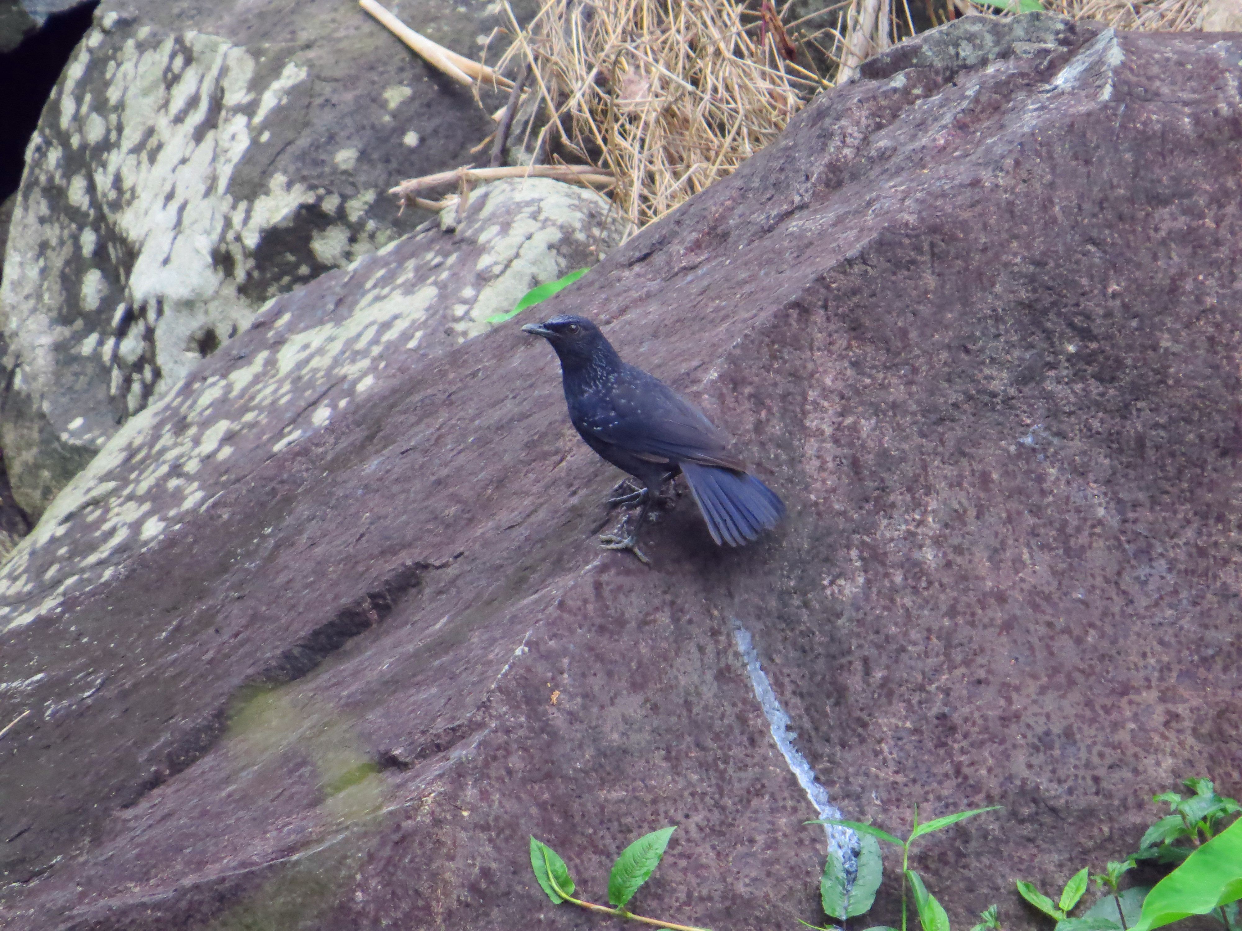 溪流上活跃的紫啸鸫,傲然站立在乱石上。
