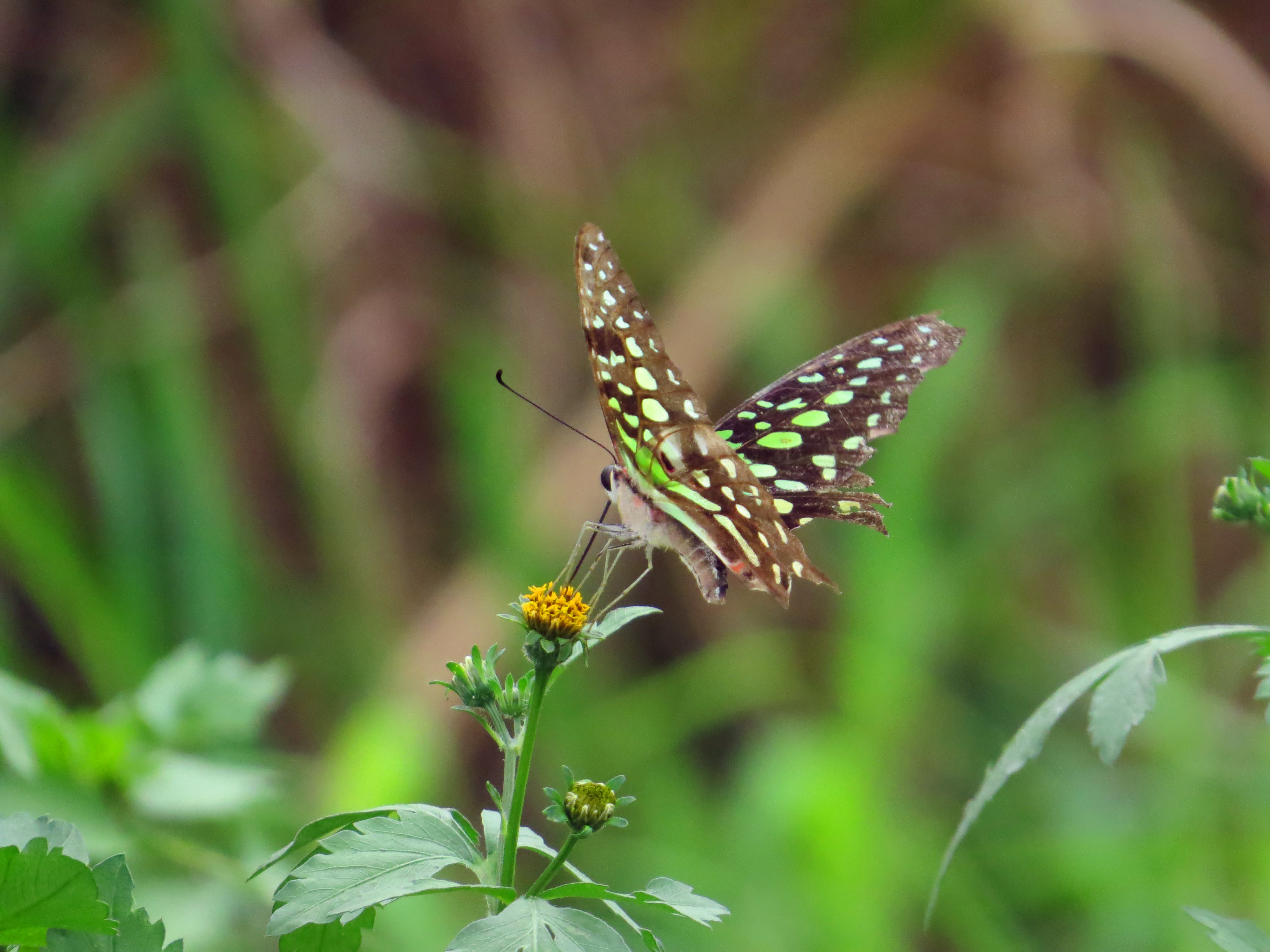 难得一见的统帅青凤蝶,停留在路边的金盏银盘上。
