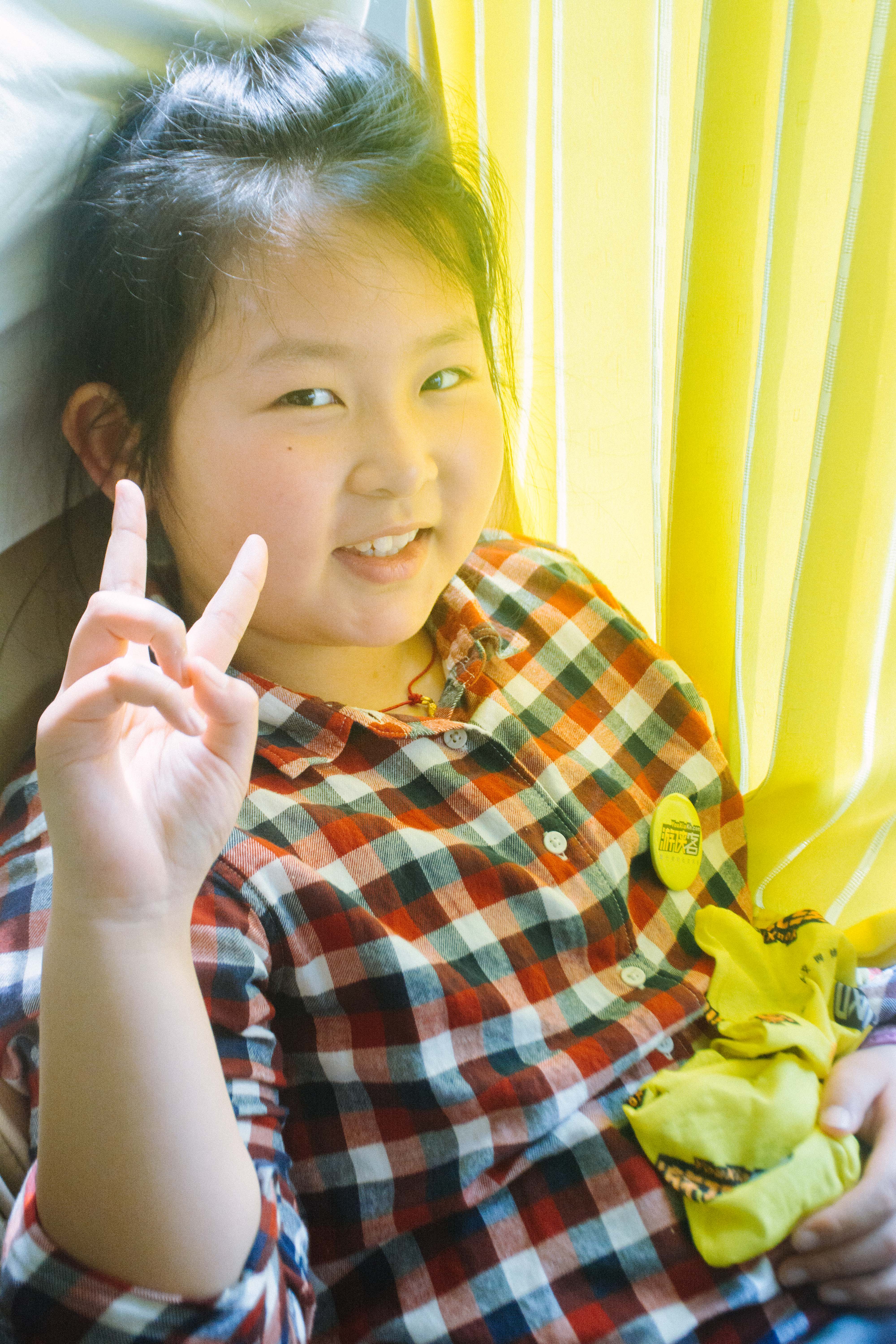 最后就是我们的小小模特 - 小小洋,特别开朗的一名小朋友,还主动给我们当了演示头巾使用方法的模特!