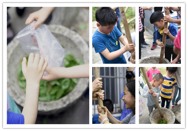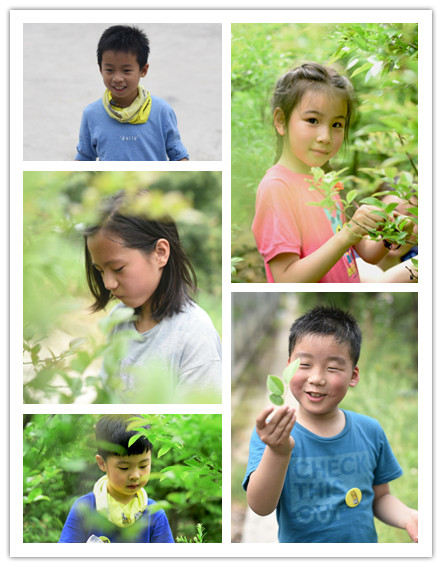 美味的午饭过后带着小朋友们在饭店老板的引导下去采摘乌树叶,小朋友们都非常认真的摘叶子。