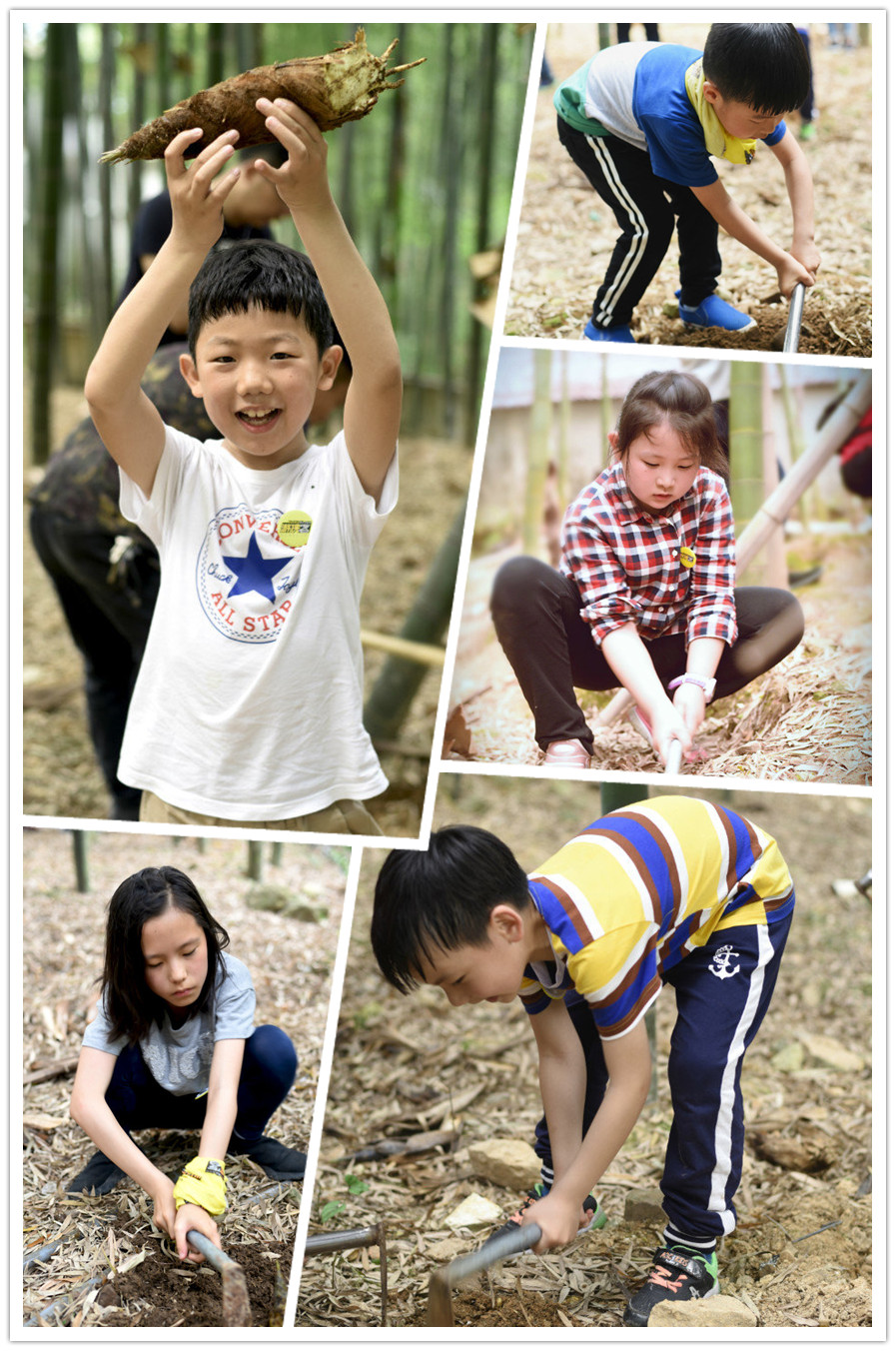 4~5月正直挖笋,给每个小朋友发了小锄头后带到竹林里开始找笋和挖笋~
