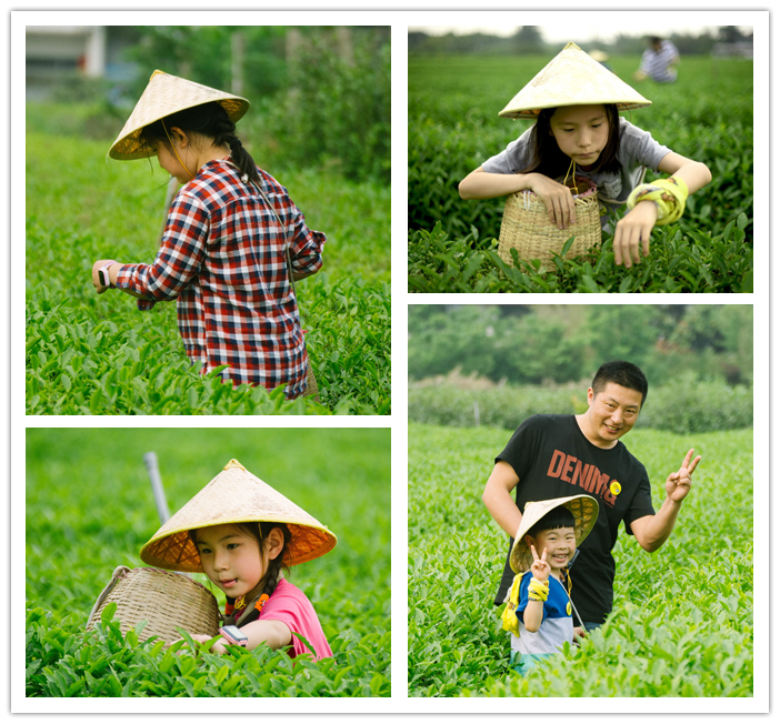 到了红岭茶厂,给每个小朋友发了一个小斗笠和小竹楼,形象活脱脱变成小小采茶工^^