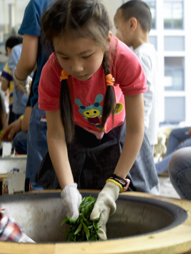 挖笋缓解过后,就坐车移动到红岭茶厂继续绿茶的采摘及炒茶体验。
