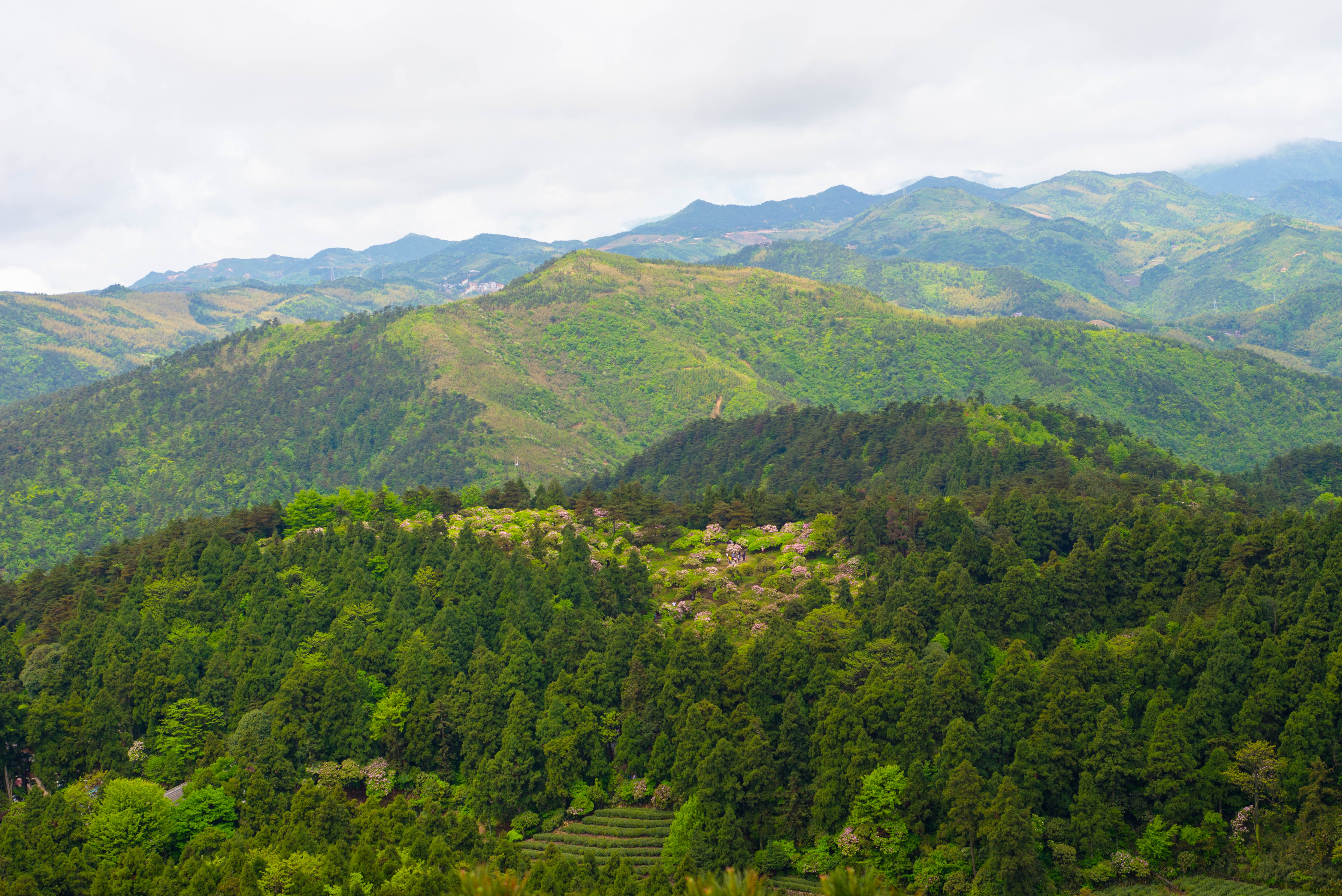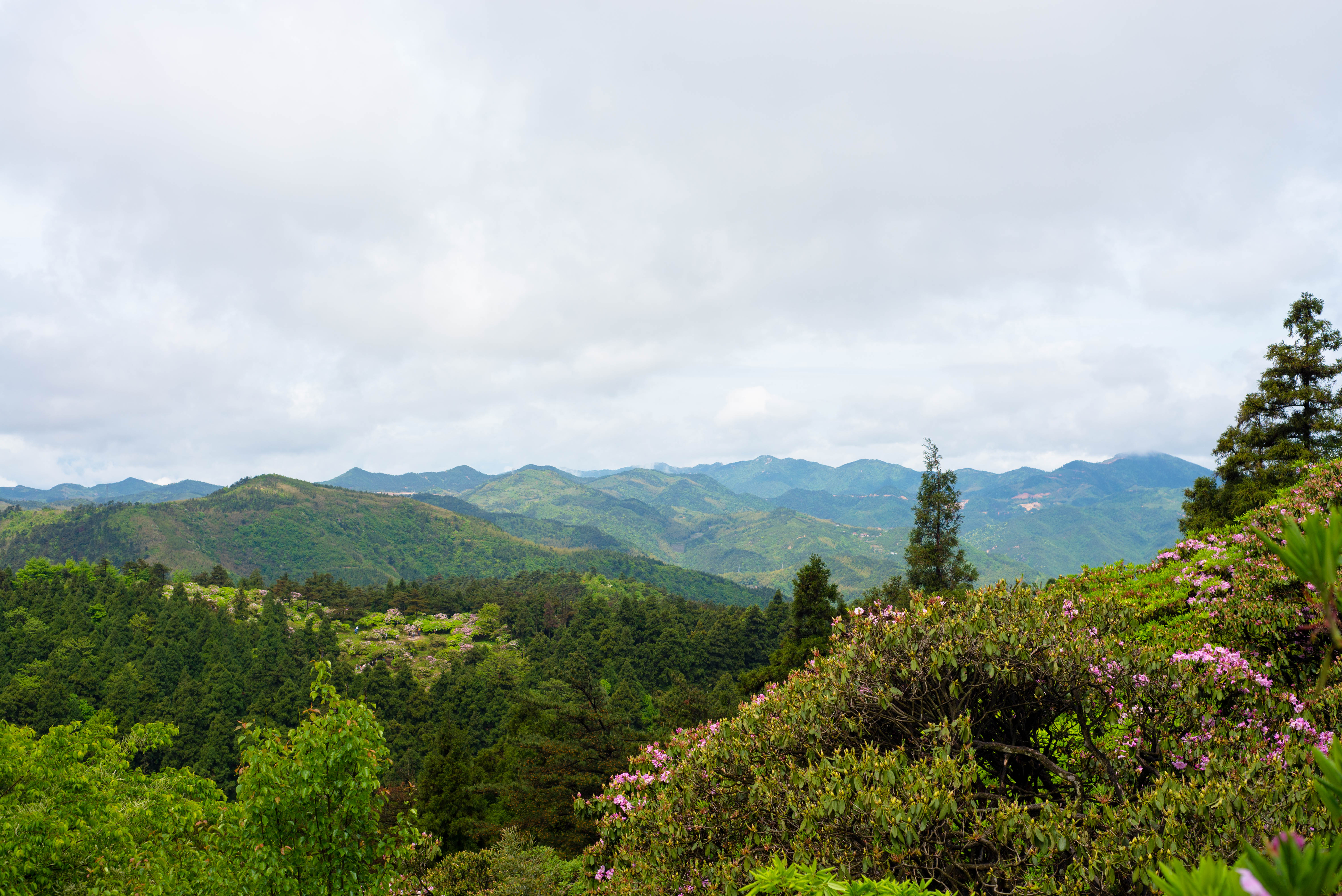 云锦杜鹃以“苍干如松柏,花姿若牡丹”而成为《中国高等植物图鉴》中记载的377种杜鹃花中的佼佼者,为中国特有的珍稀树种。它虽在云南、四川等地少有分布,但成片成林面积近300亩,且树龄在200年以上并形成古树群,则唯天台华顶山独有。