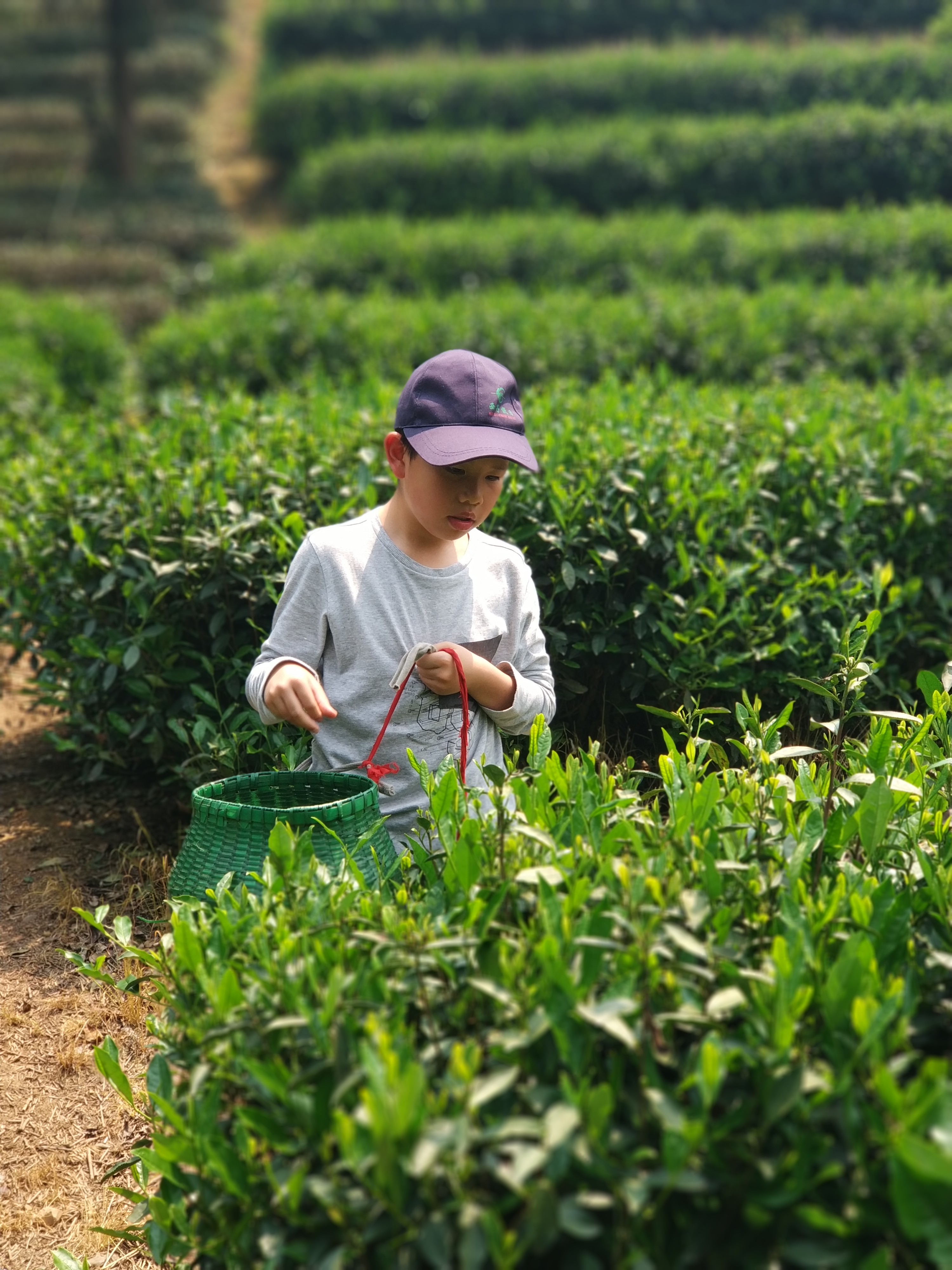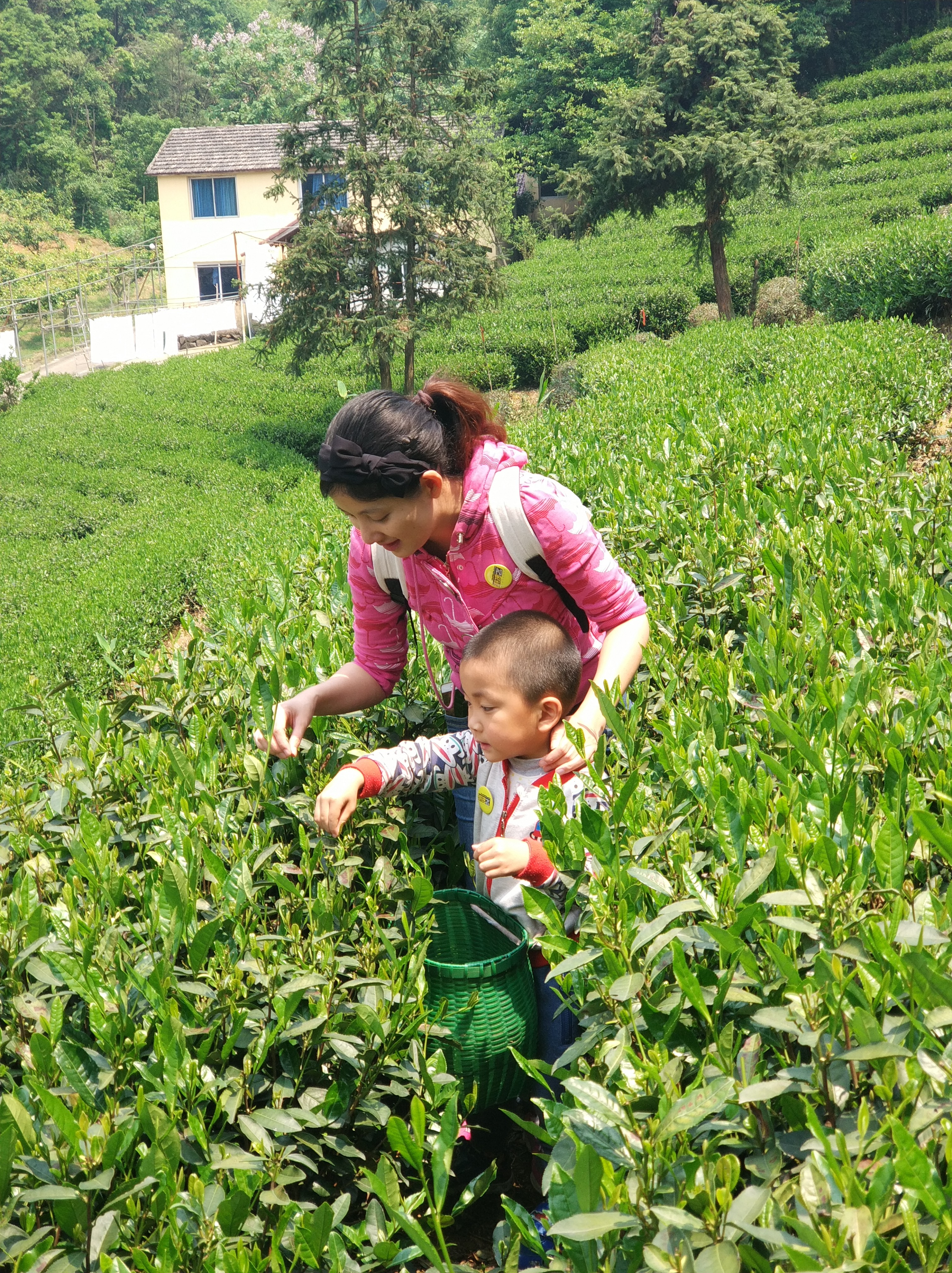 很多小朋友第一次采茶,一学就会,采的可认真了
